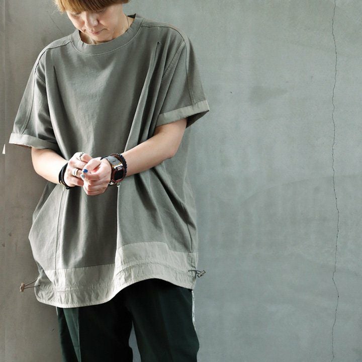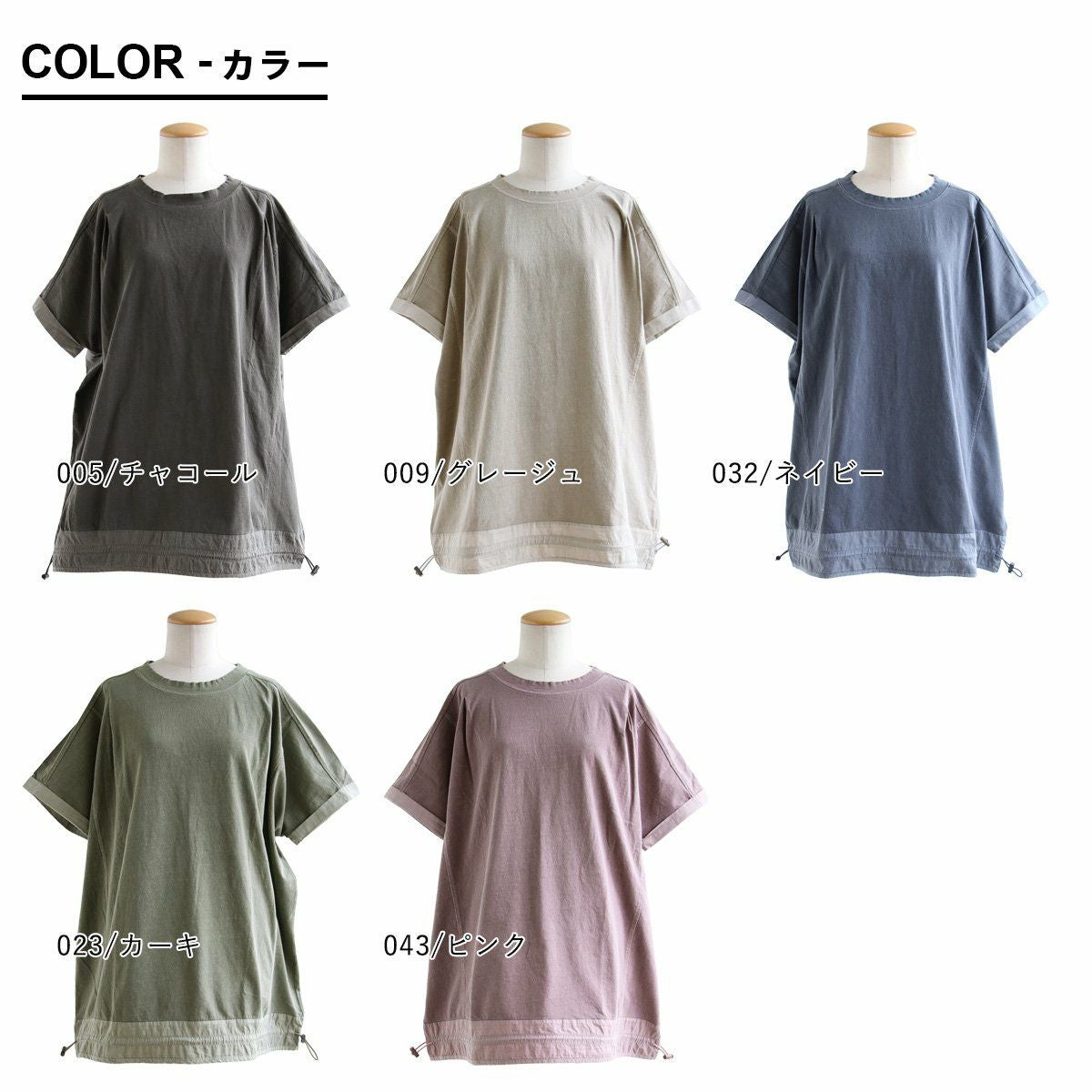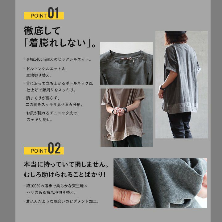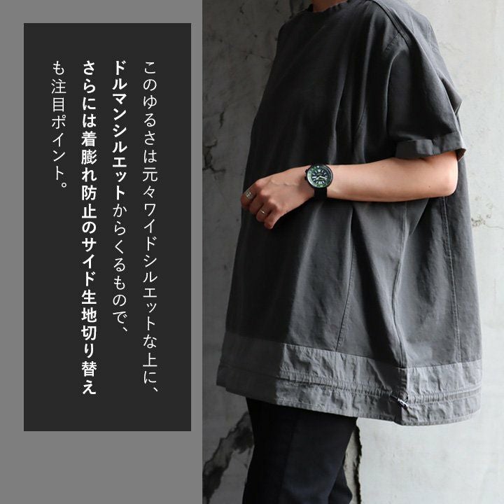 このゆるさだからこそ、「過ぎず」に楽しい。 【メール便50】 かっこいい チュニック 着やせ ワイド 五分袖 tシャツ 夏 レディース 異素材 切り替え 綿100 コットン 二の腕 お尻 体系 カバー リメイク風 ドルマン tシャツ カジュアル パティ OAR’S オールズ