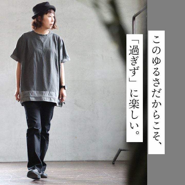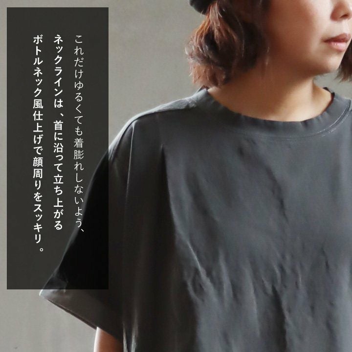 ゆるいのに、着痩せも遊びも、しっかり抜かりなし。 【メール便50】 着痩せ ワイド カットソー 五分袖 レディース 夏 Vネック 二の腕 お尻 体系 カバー 大人 カジュアル パティ