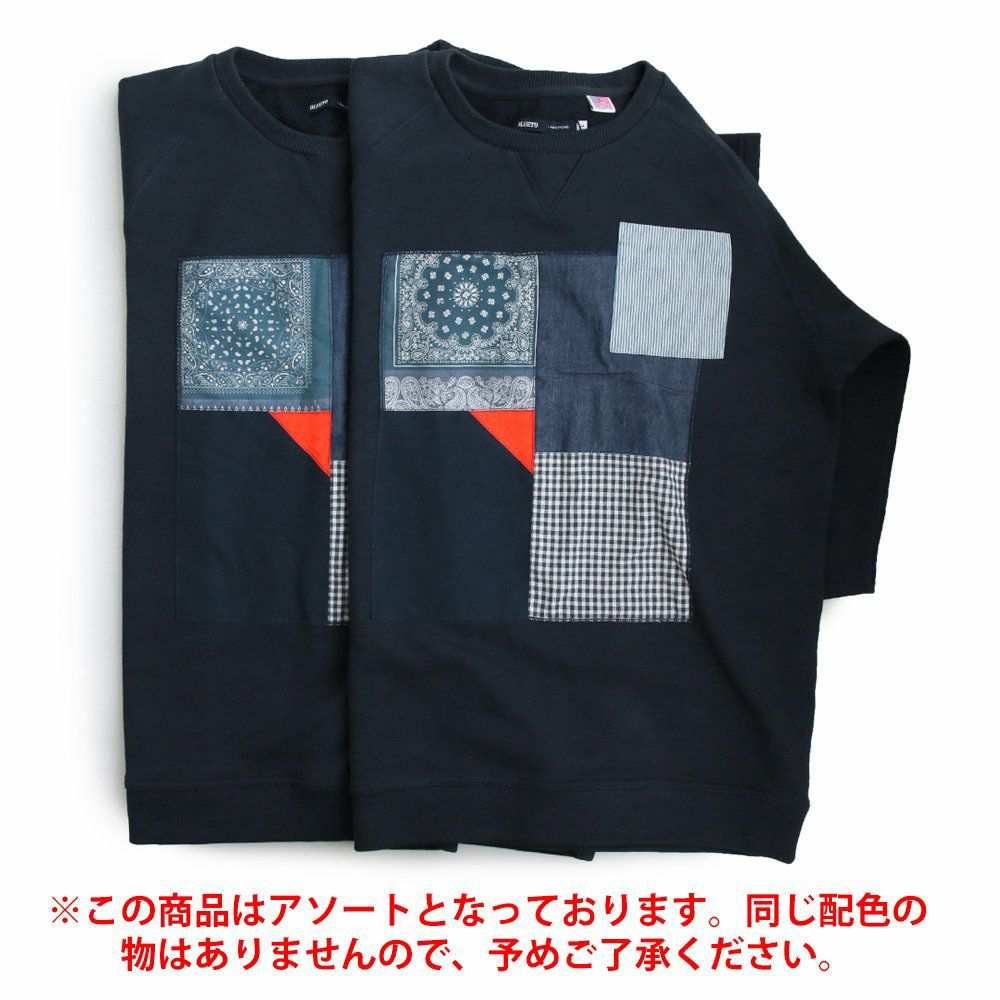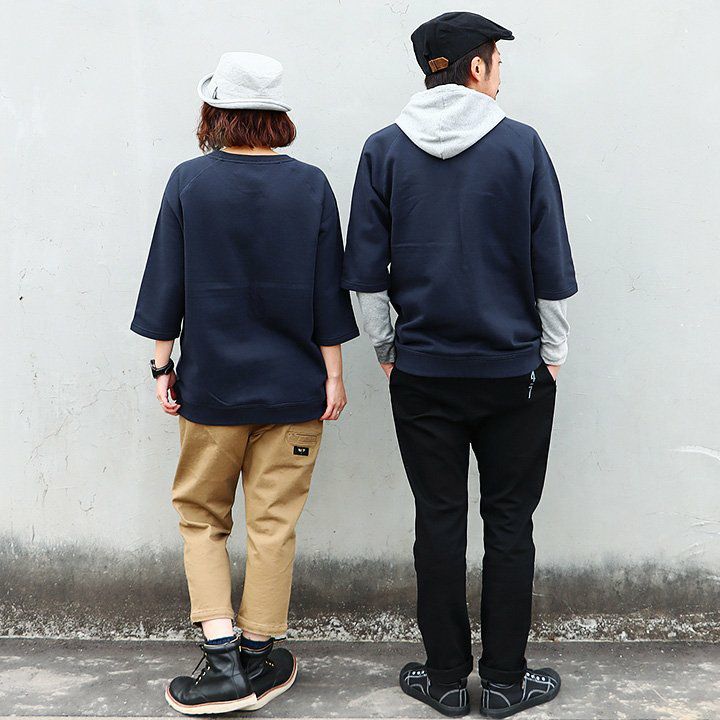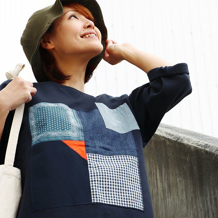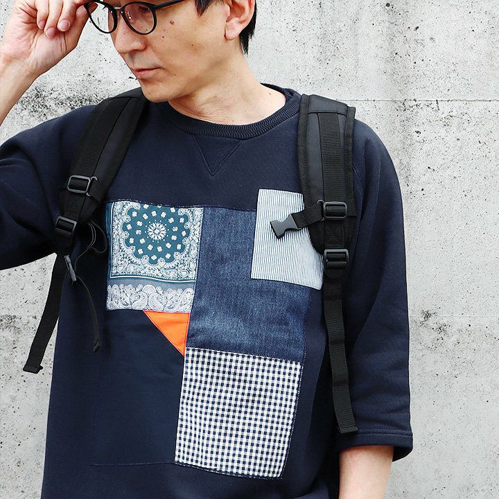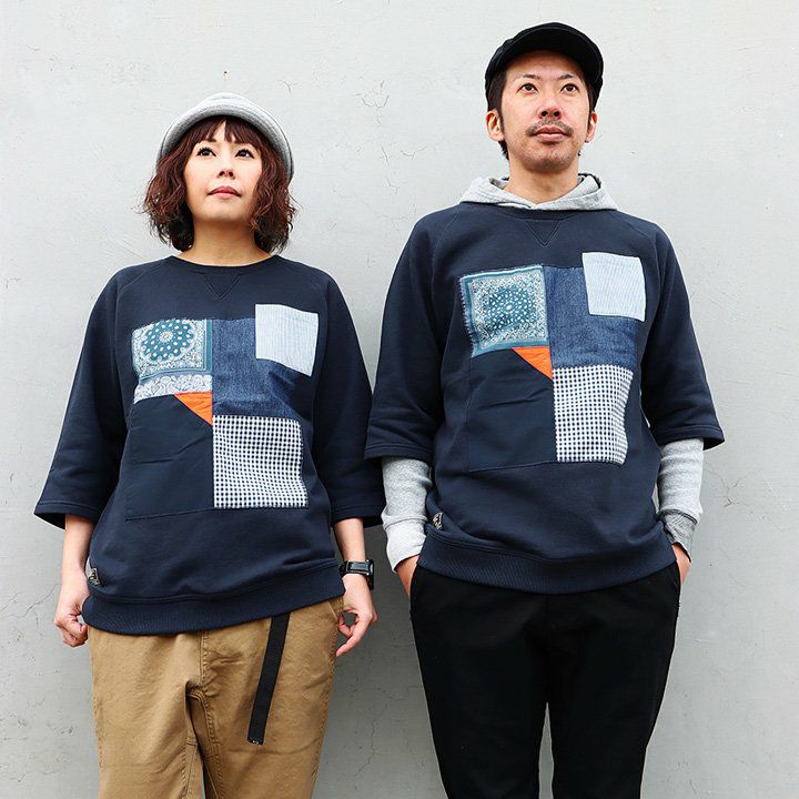 控えめなのに、他のどのトレーナーよりも断トツの存在感。 トレーナー 6分袖 七分袖 半端袖 プルオーバー スウェット スエット ラグラン 『異素材 パッチワーク』 メンズ レディース トップス 40代 50代 BLUETO [ブルート]