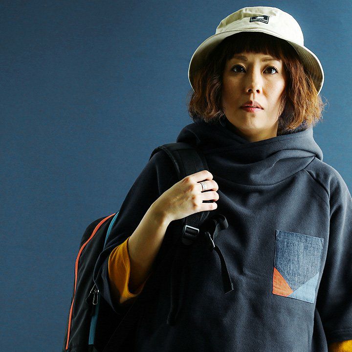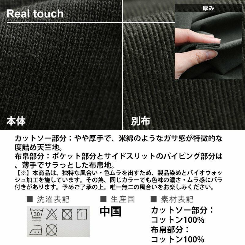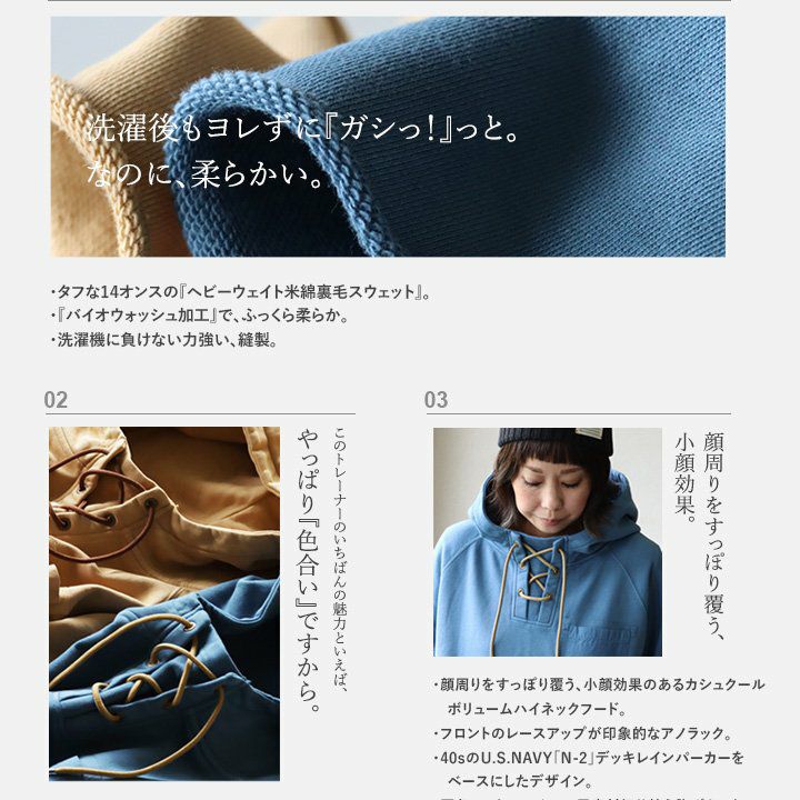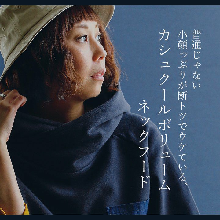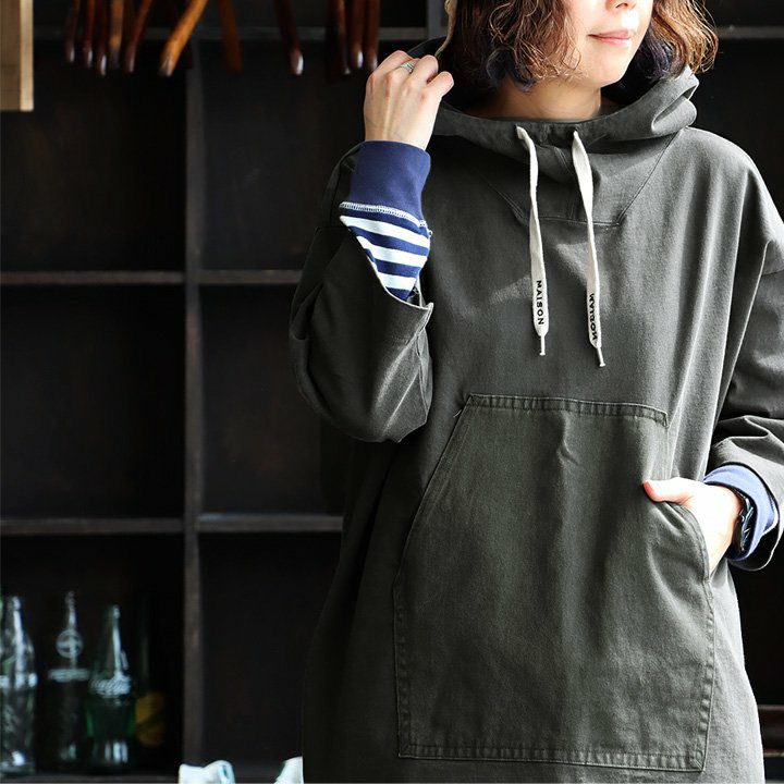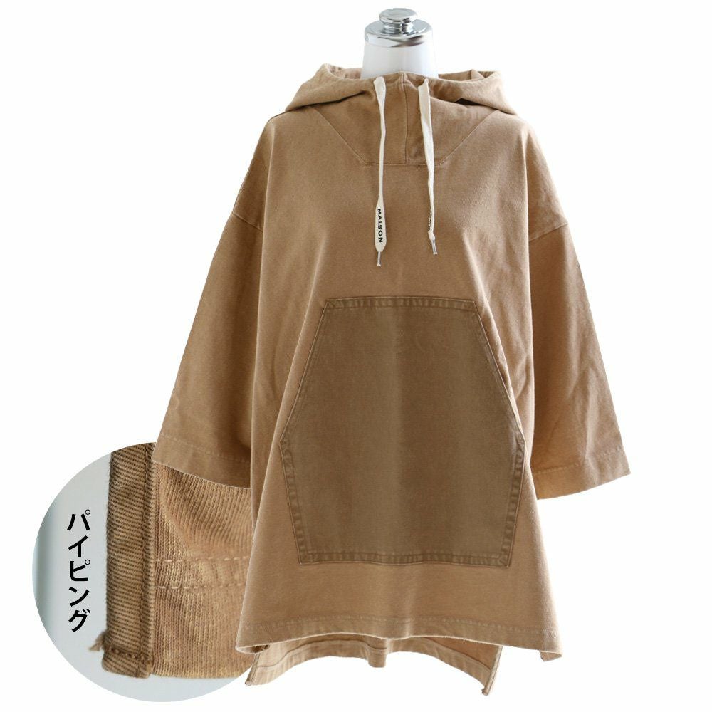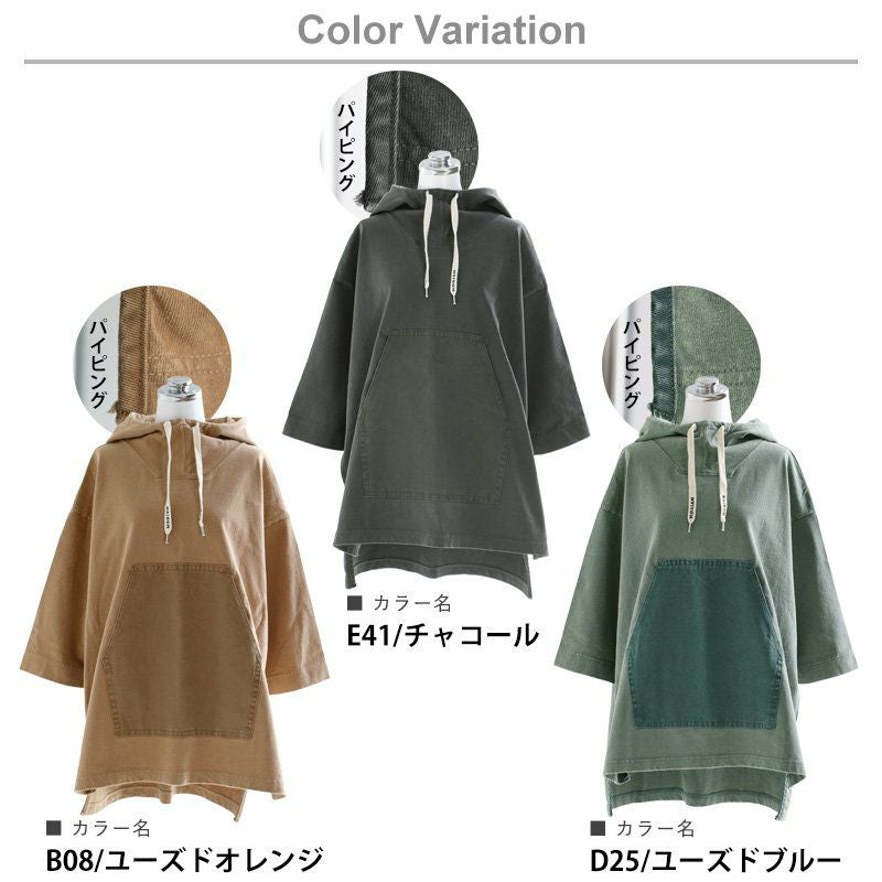この「大きなポケット」が、いいんです。 パーカー プルオーバー ゆるハイネック ワイド 七分袖 褪せ色 バイオウォッシュ 度詰め天竺 布帛ポケット切替 サイドスリット ロゴ刺繍フード紐 レディース 着痩せ トップス 40代 50代 春 OAR'S [オールズ]