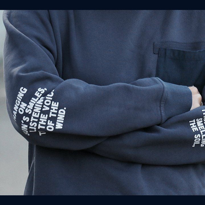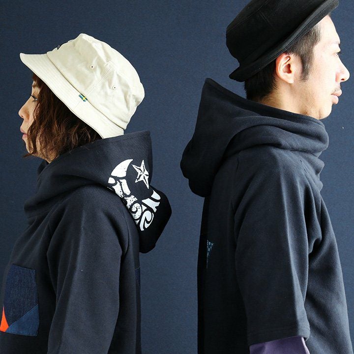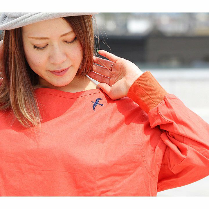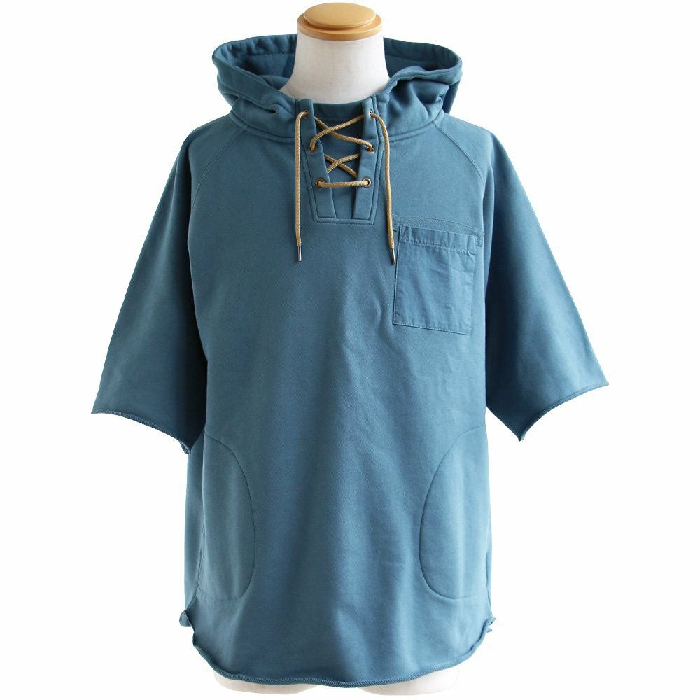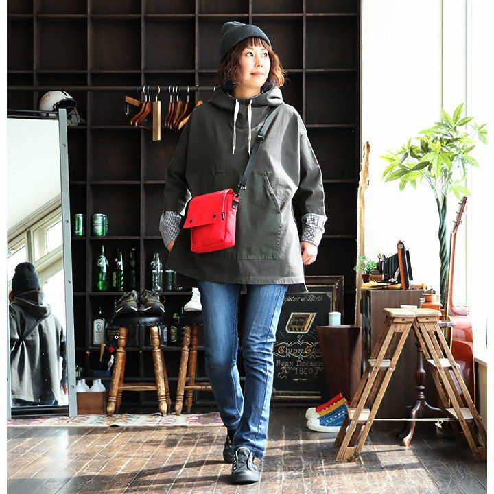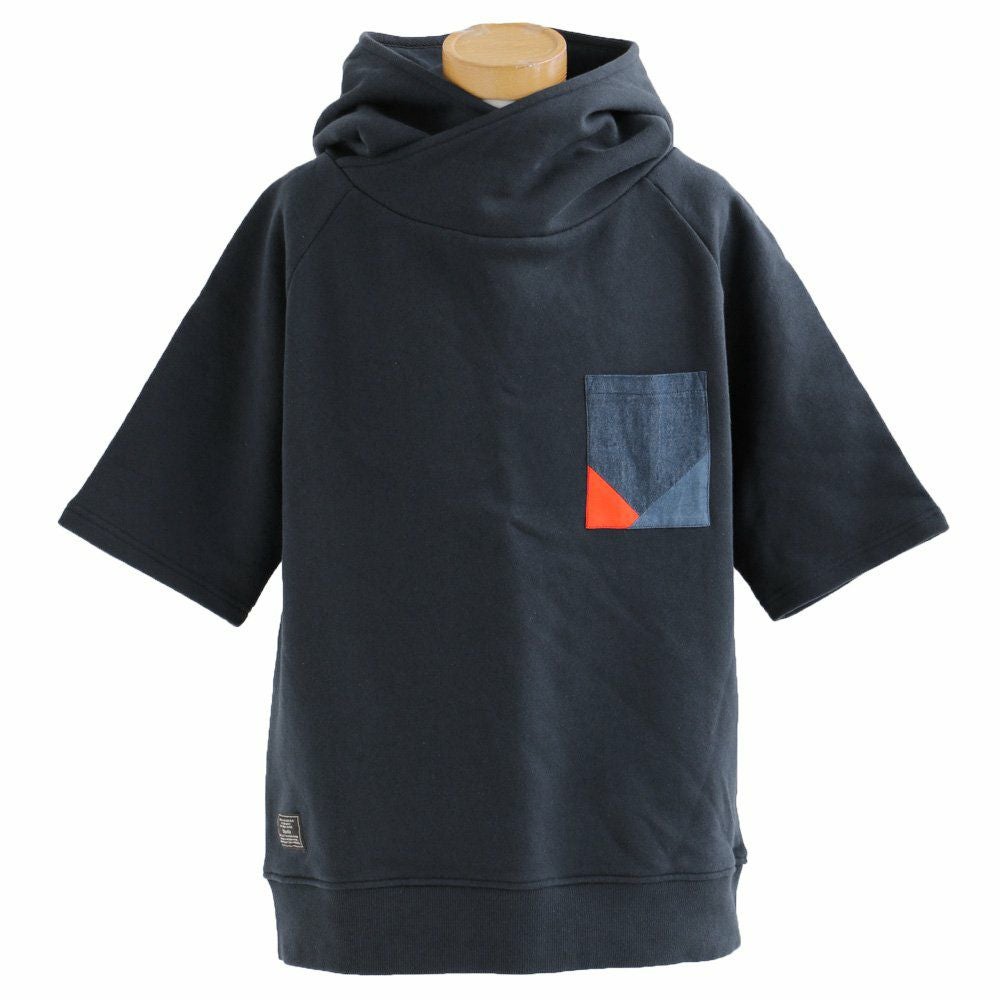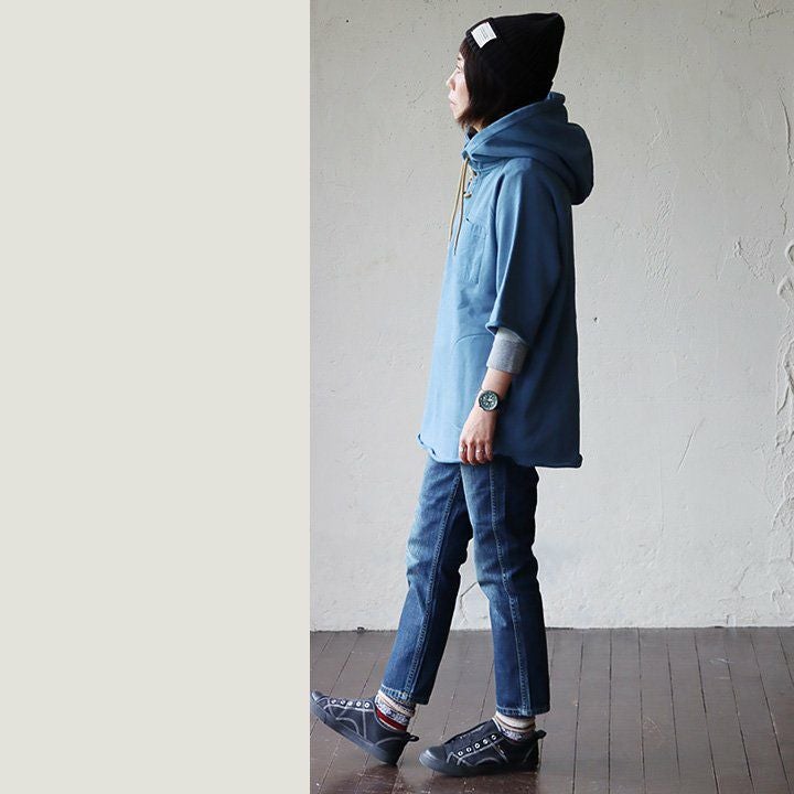 この「大きなポケット」が、いいんです。 パーカー プルオーバー ゆるハイネック ワイド 七分袖 褪せ色 バイオウォッシュ 度詰め天竺 布帛ポケット切替 サイドスリット ロゴ刺繍フード紐 レディース 着痩せ トップス 40代 50代 春 OAR'S [オールズ]
