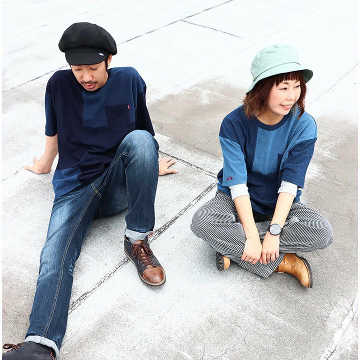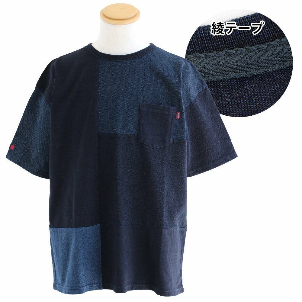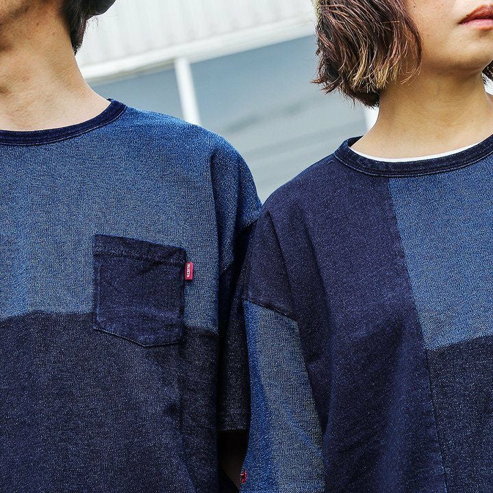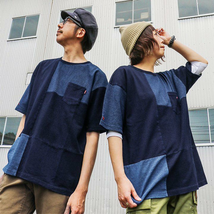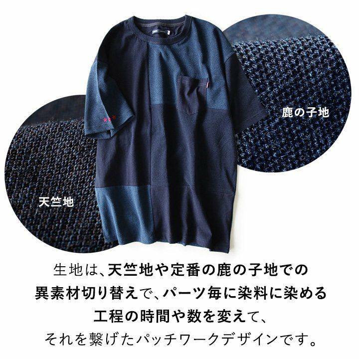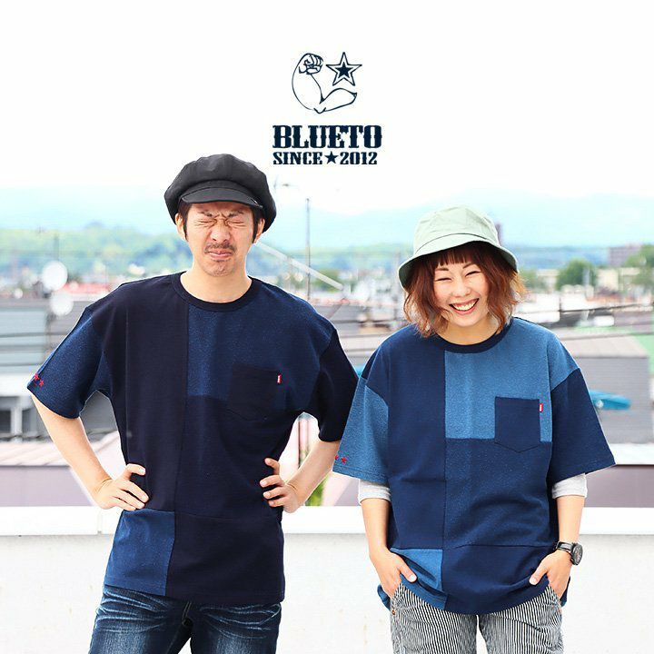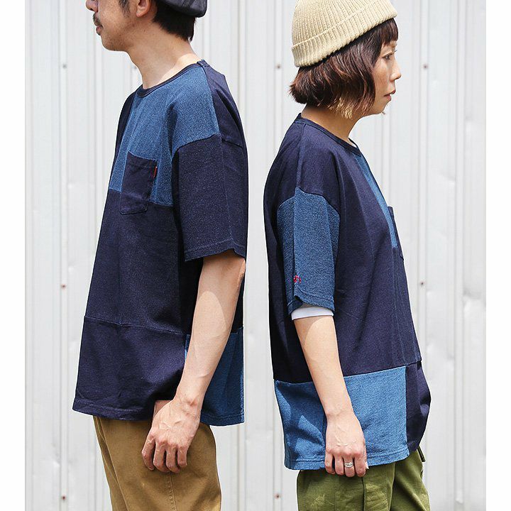 「味や深みを大切にしたい人」が選ぶTシャツ。 半袖 Tシャツ クルーネック 胸ポケット付き 『インディゴ パッチワーク』 綿100% メンズ レディース カジュアル | シャツ コットン 半袖シャツ半袖tシャツ 切り替え 切替 40代 50代 BLUETO [ブルート]