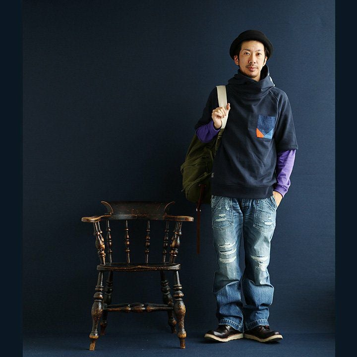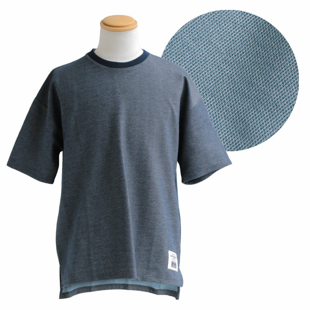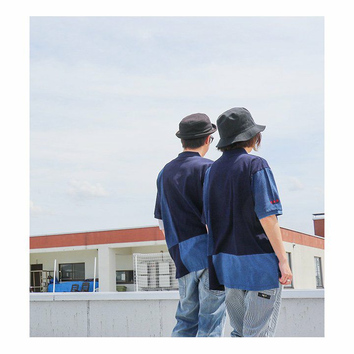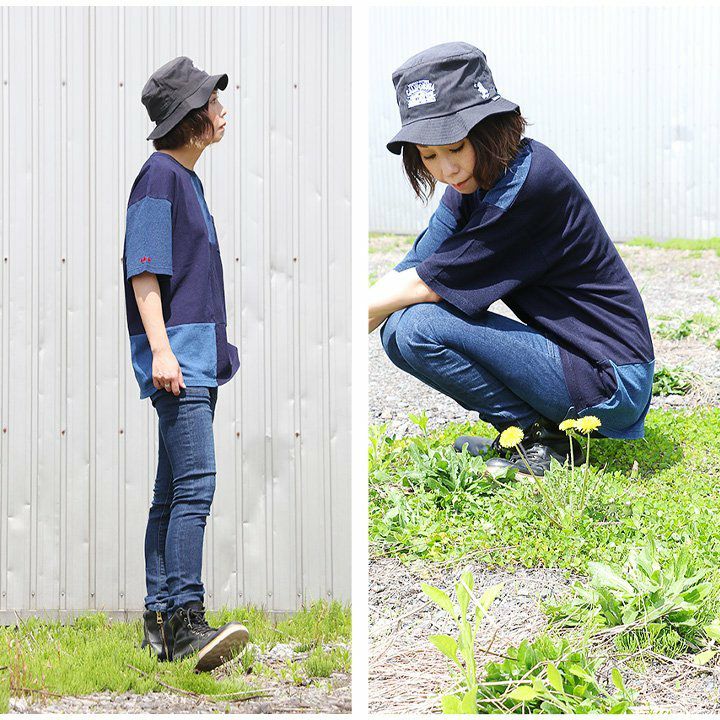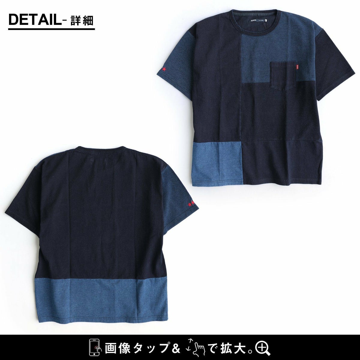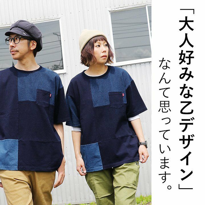 「味や深みを大切にしたい人」が選ぶTシャツ。 半袖 Tシャツ クルーネック 胸ポケット付き 『インディゴ パッチワーク』 綿100% メンズ レディース カジュアル | シャツ コットン 半袖シャツ半袖tシャツ 切り替え 切替 40代 50代 BLUETO [ブルート]