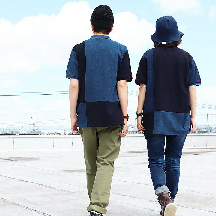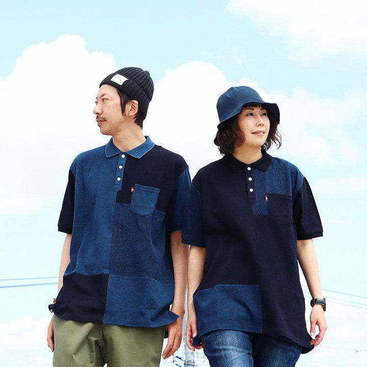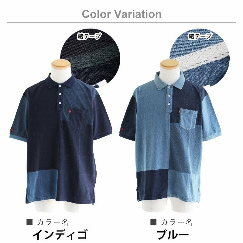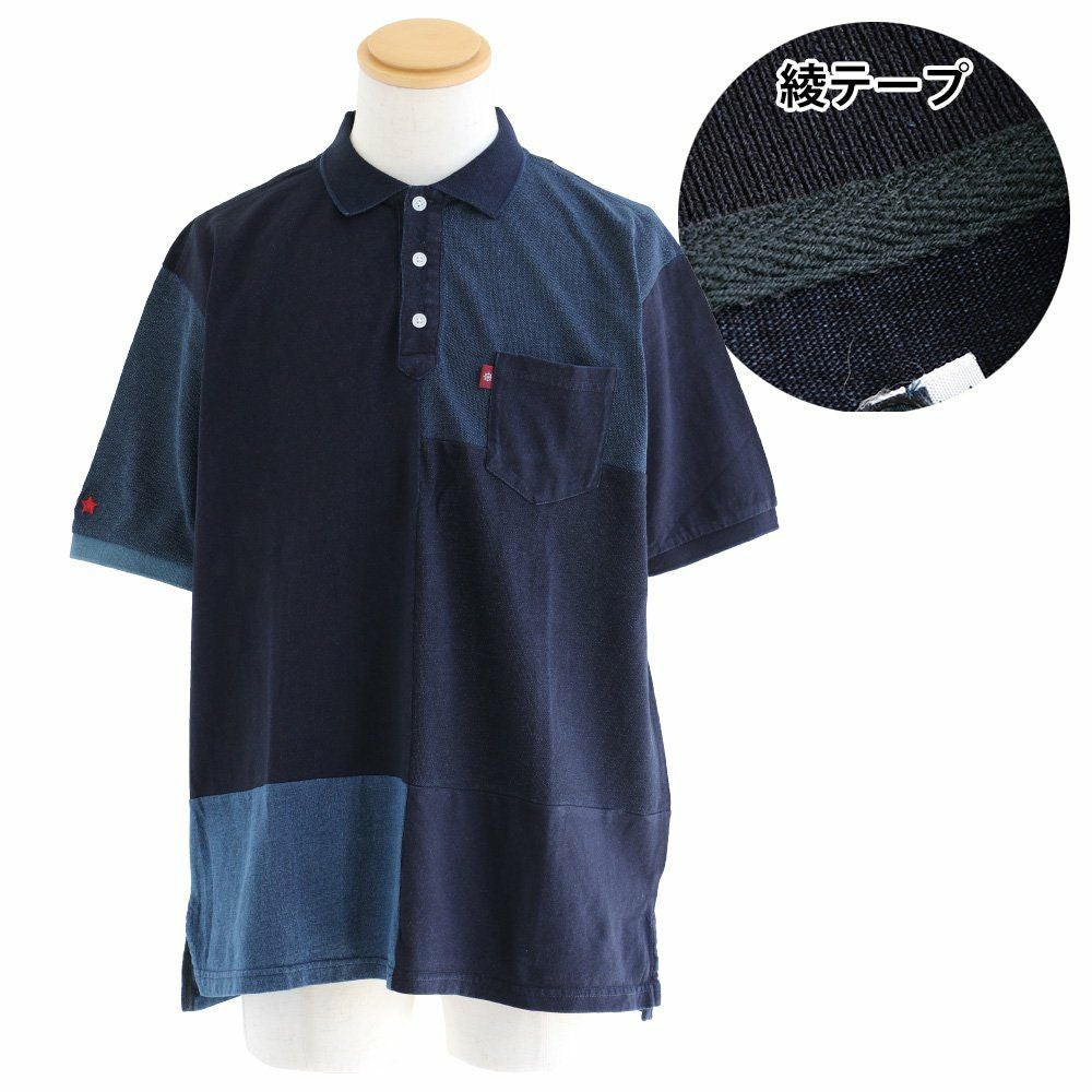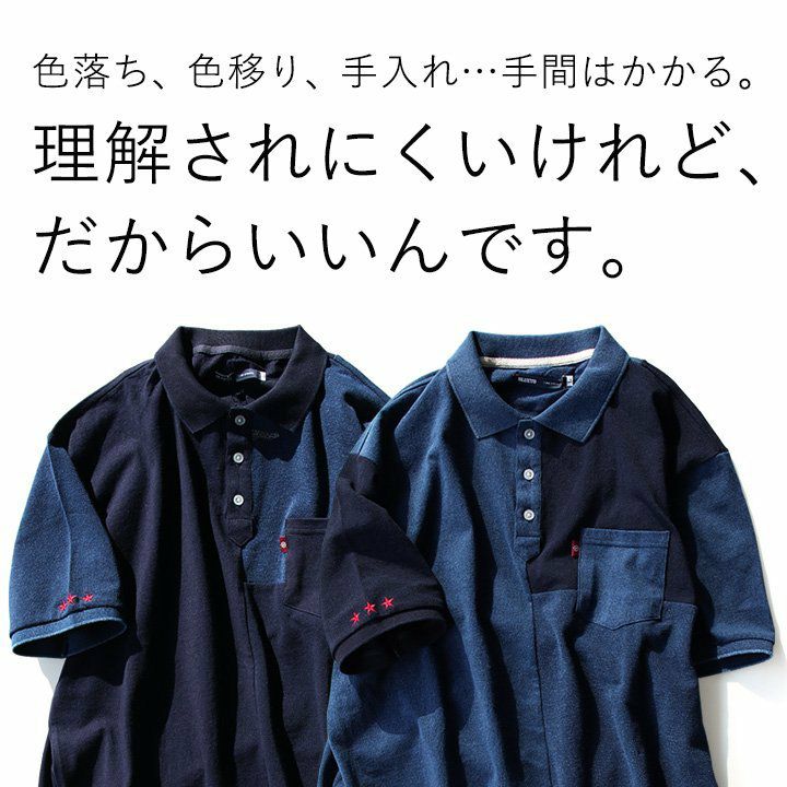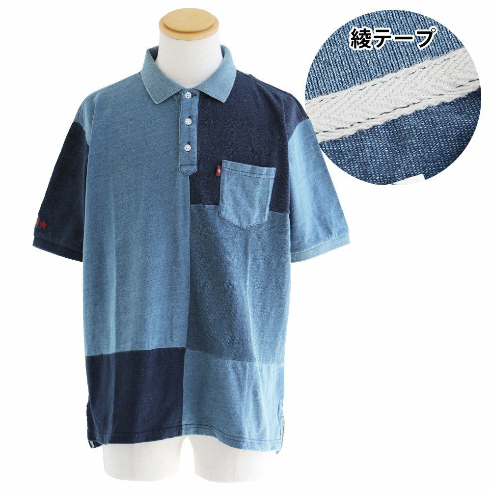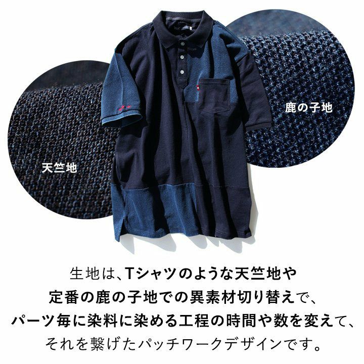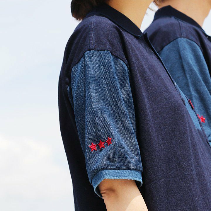 「味や深みを大切にしたい人」が選ぶポロシャツ。 ポロシャツ 半袖 半袖シャツ 胸ポケット 『濃淡 インディゴ 異素材 パッチワーク』 配色 星 スター 三連 刺繍 鹿の子 天竺 カット メンズ レディース カジュアル シャツ コットン 40代 50代 BLUETO [ブルート]