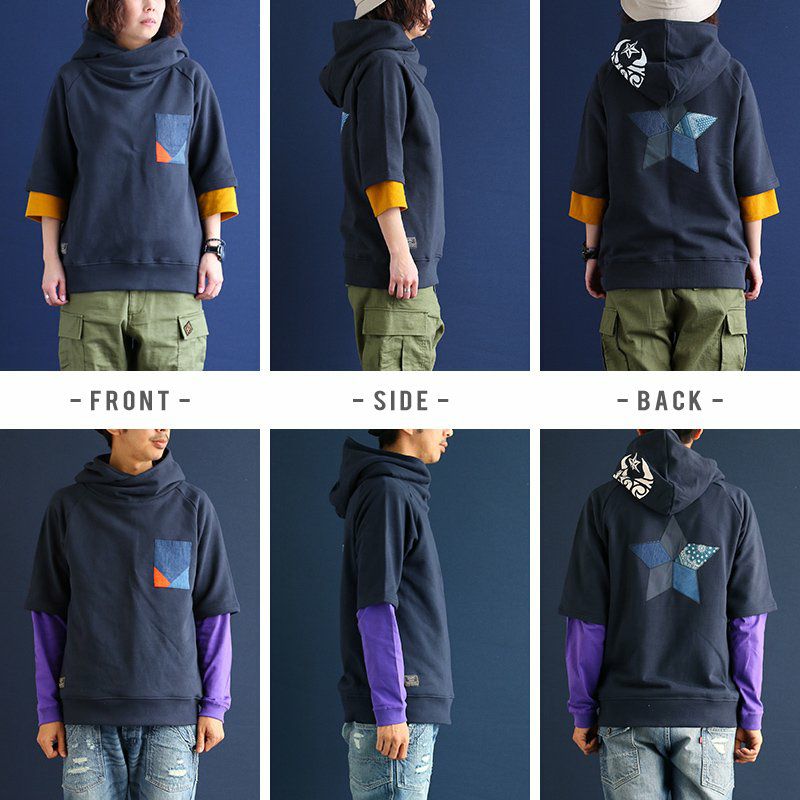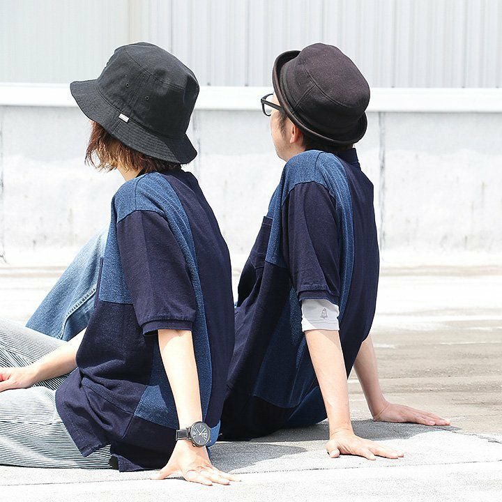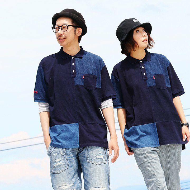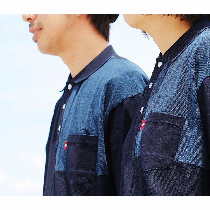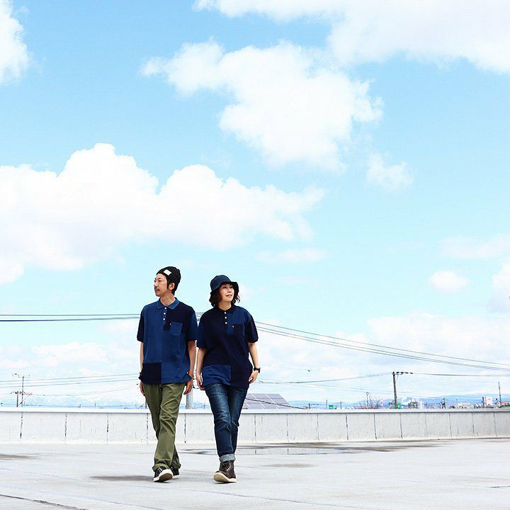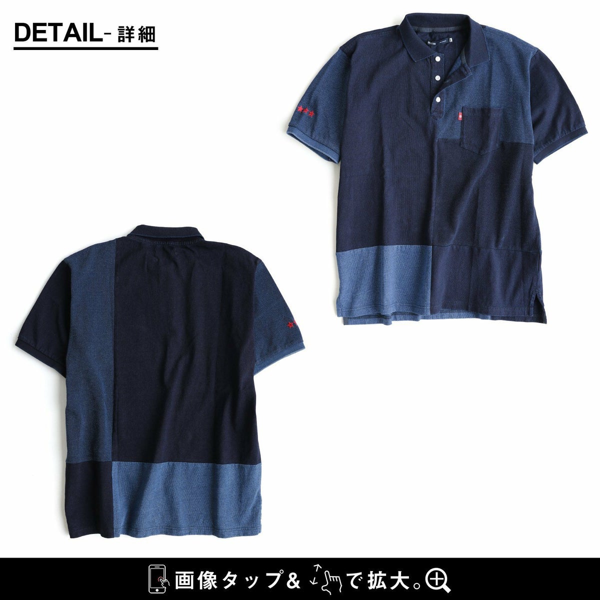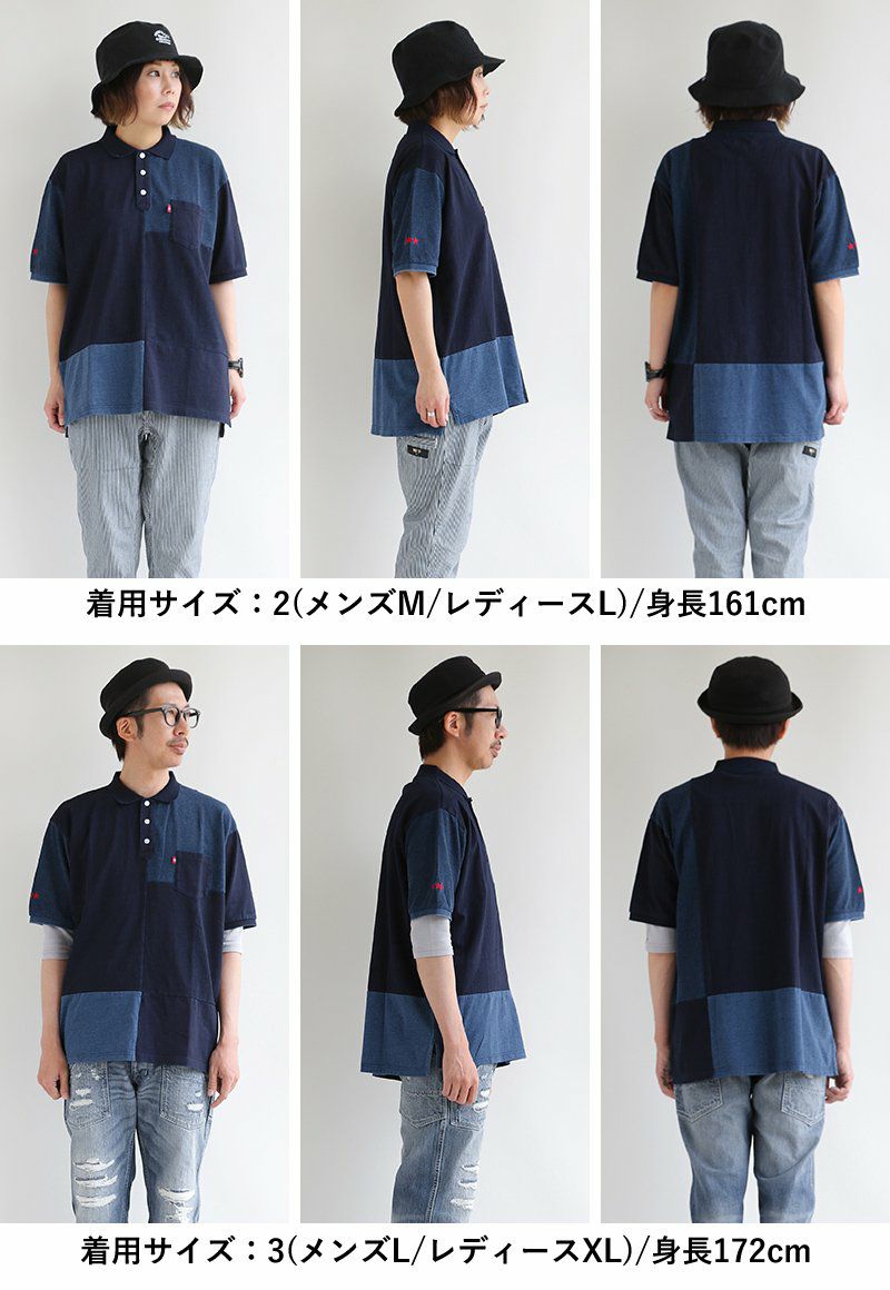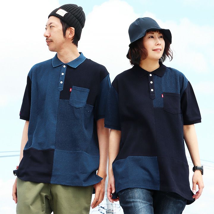 「味や深みを大切にしたい人」が選ぶポロシャツ。 ポロシャツ 半袖 半袖シャツ 胸ポケット 『濃淡 インディゴ 異素材 パッチワーク』 配色 星 スター 三連 刺繍 鹿の子 天竺 カット メンズ レディース カジュアル シャツ コットン 40代 50代 BLUETO [ブルート]