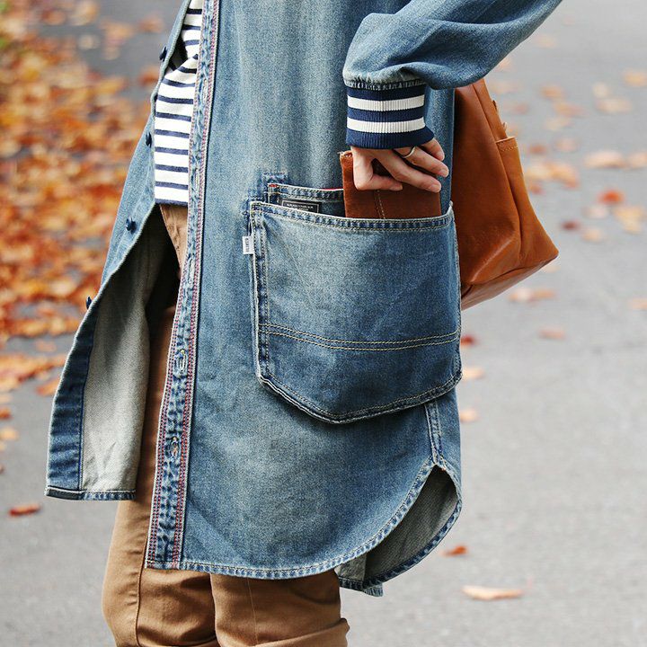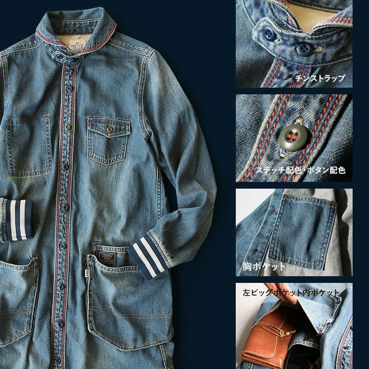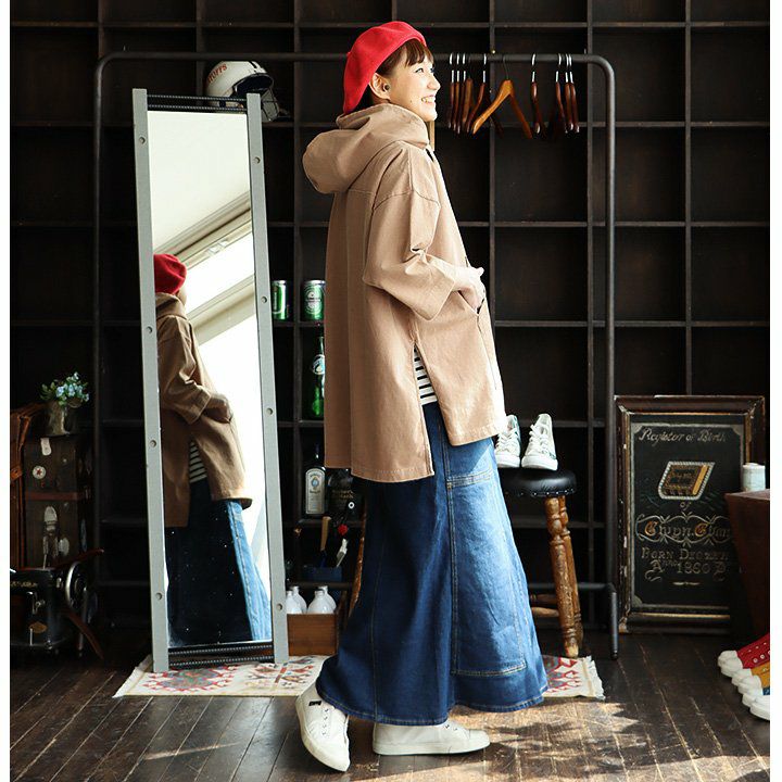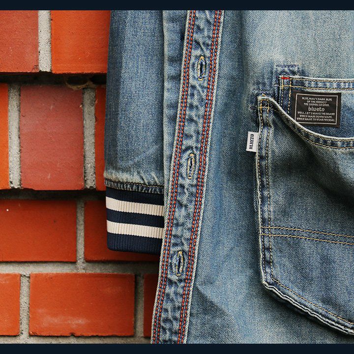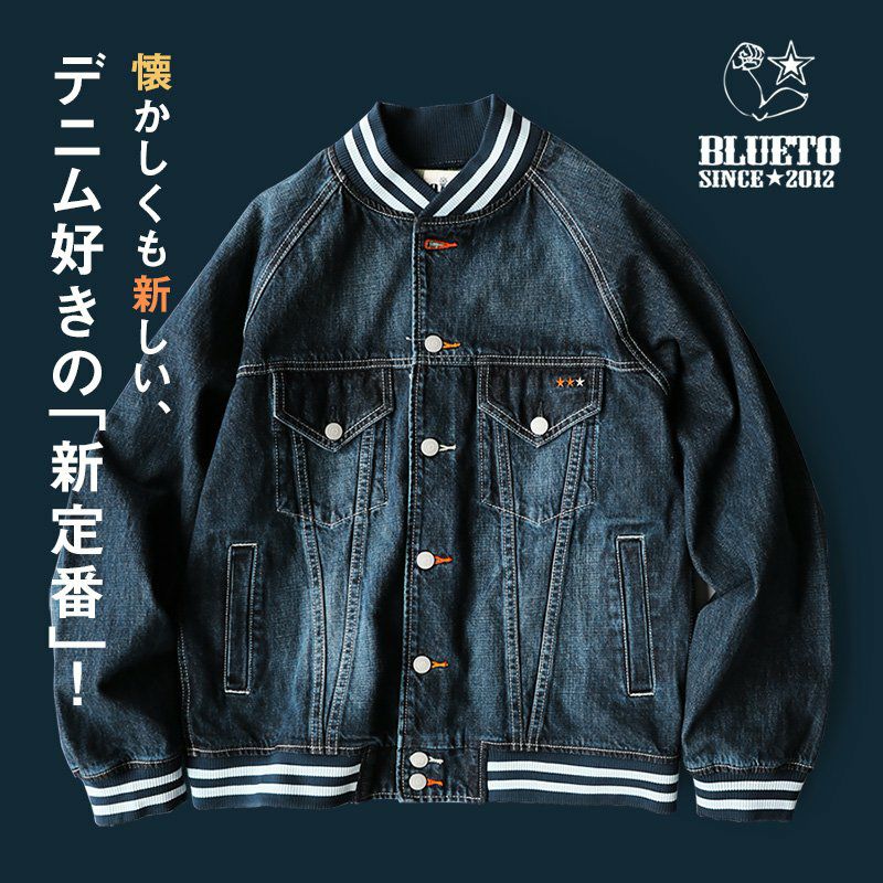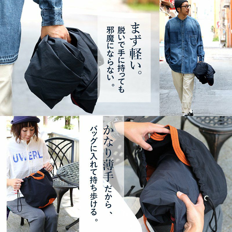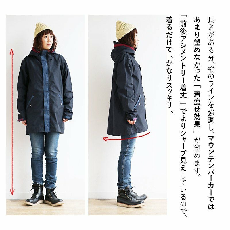 薄手で軽くて着やすい。スッキリ見え『街着』マウンテンパーカー マウンテンパーカー お尻が隠れる ロング丈 薄手 ハリ感 ナイロン 撥水 「デニム地 切り替え」 「配色 アクセント」 刺繍入り ベルクロ比翼 メンズ レディース40代 50代 BLUETO [ブルート]