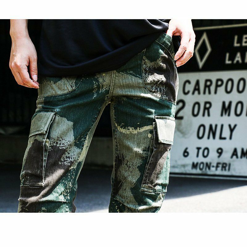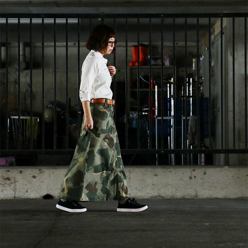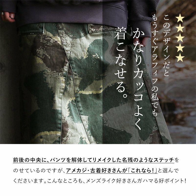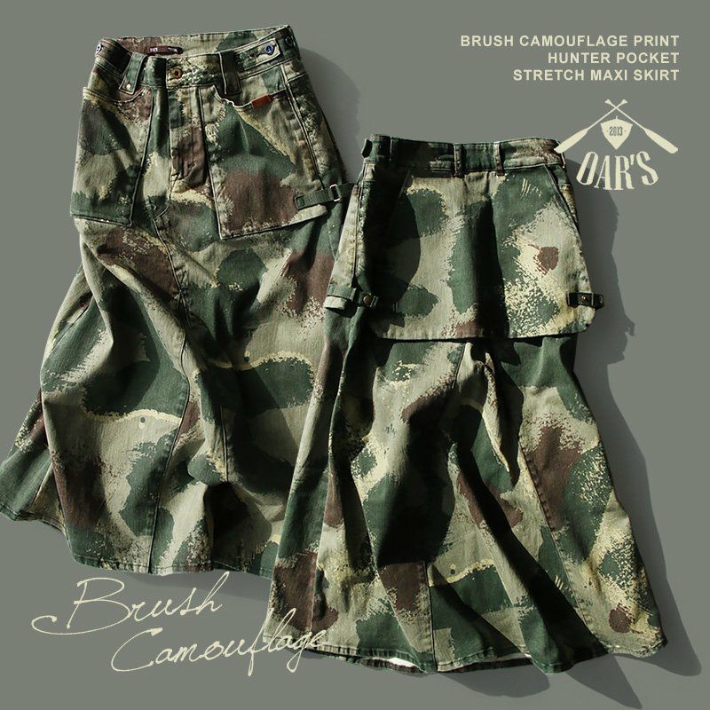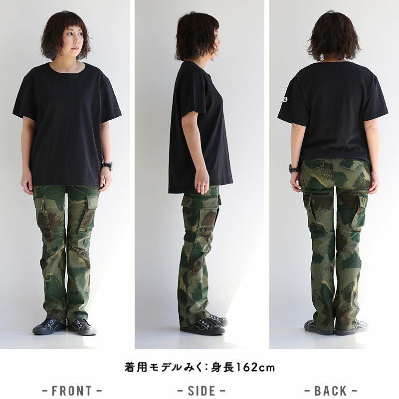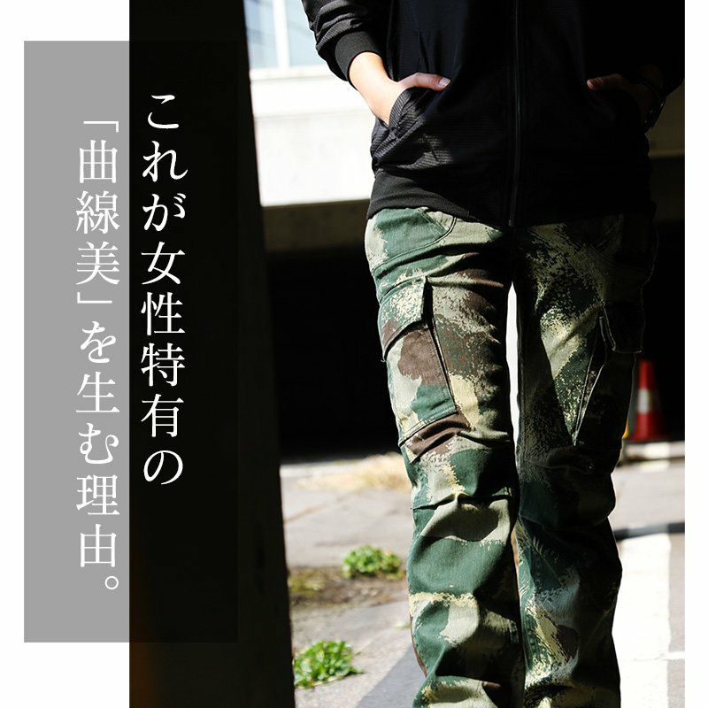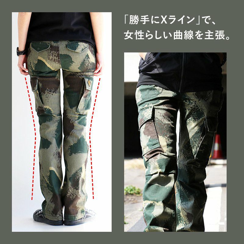 女性特有の「曲線」美。細く長く見せる、唯一無二な『マジックパンツ』。 カーゴ パンツ スリム ストレート 『変形 Xライン 脚長 細見え M-51 モチーフ』 肉厚 ハリ ストレッチ ツイル カモフラ柄 小尻 レディース ミリタリー 大きめ カジュアル OAR'S [オールズ]