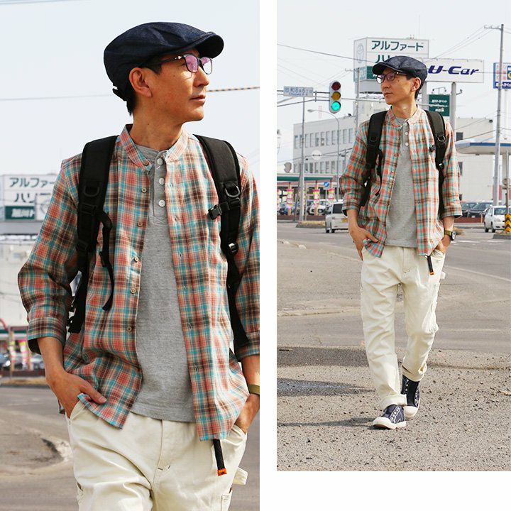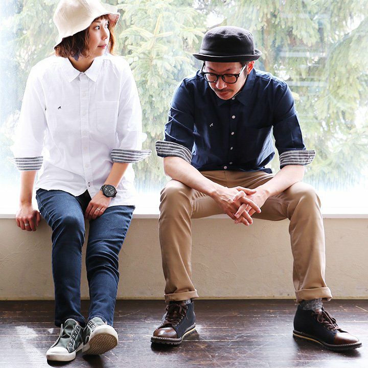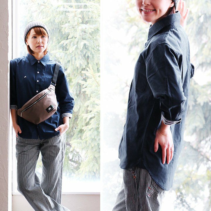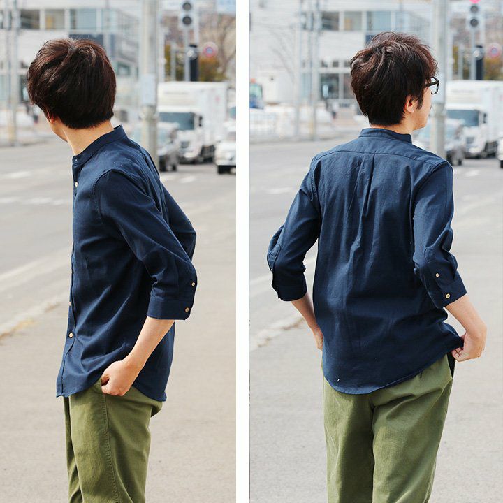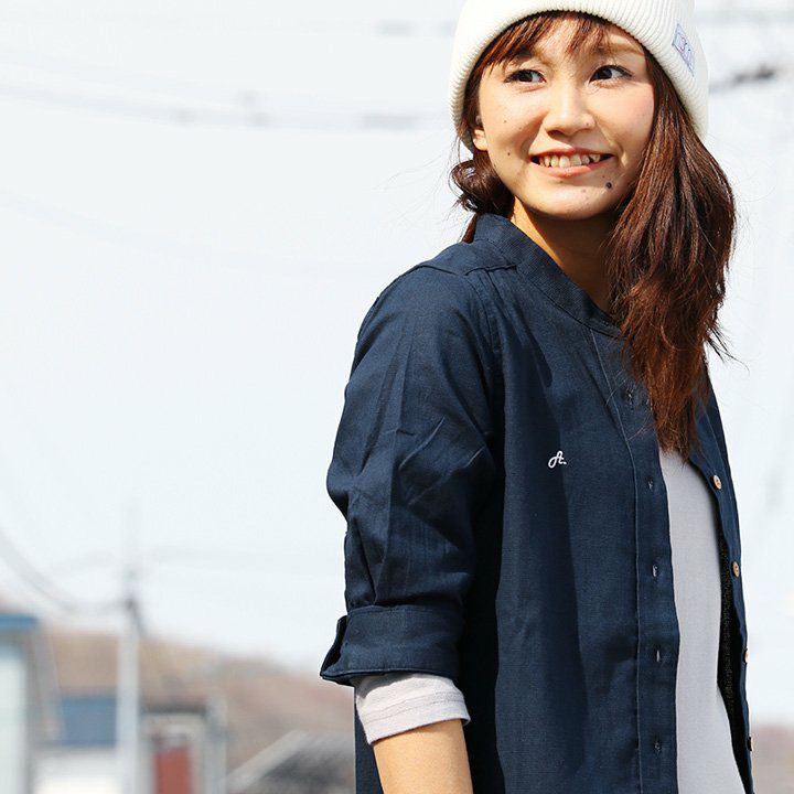 「カッチリし過ぎない」、サラっと大人なシャツ。 シャツ 長袖 Vネック ノーカラー 袖裏 配色 切り替え 薄手 ハリ 伸縮 ストレッチ ポプリン リラックスフィット ワンポイント 刺繍 無地 レディース メンズ 春 春服 40代 50代 Mr.Lumberjack