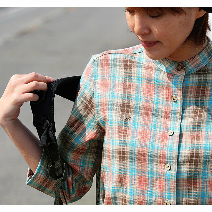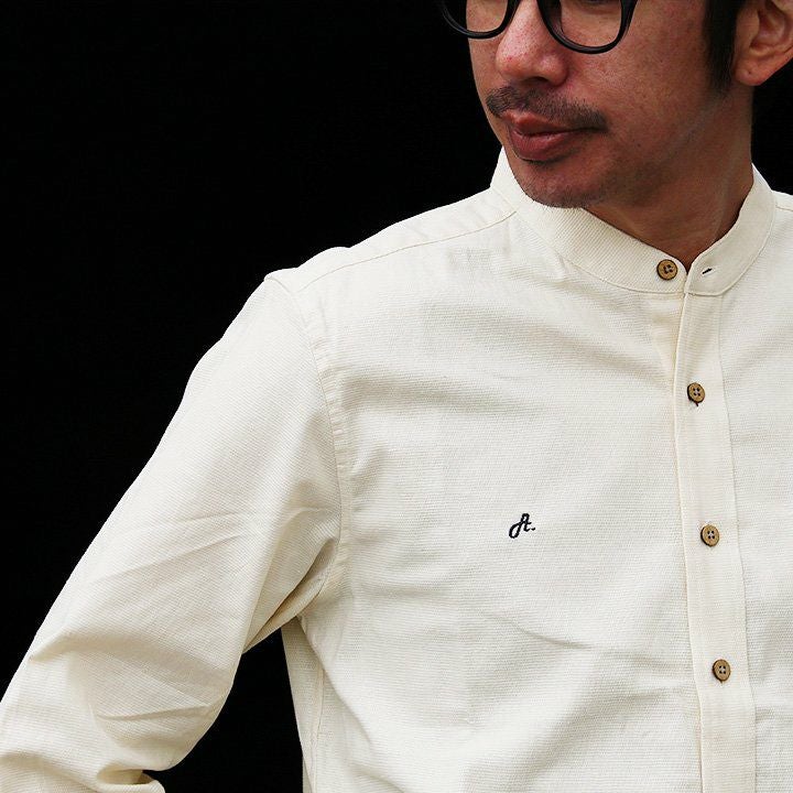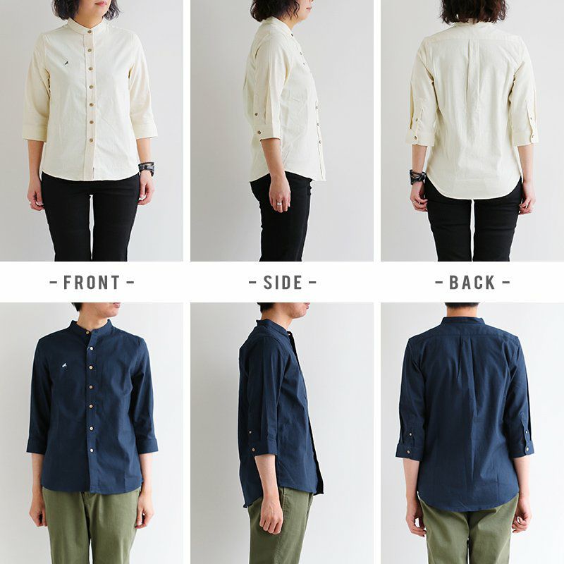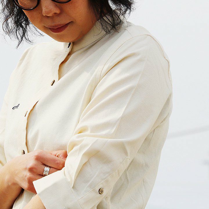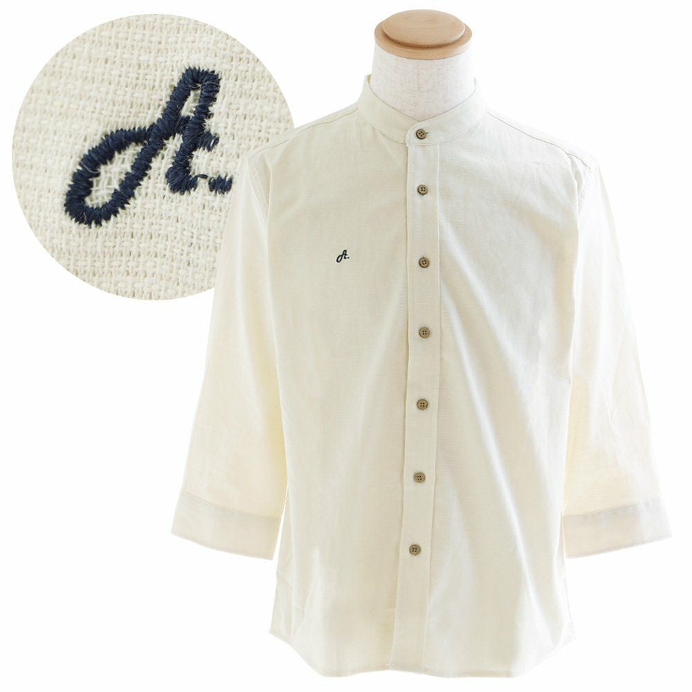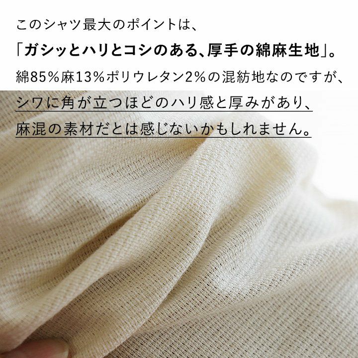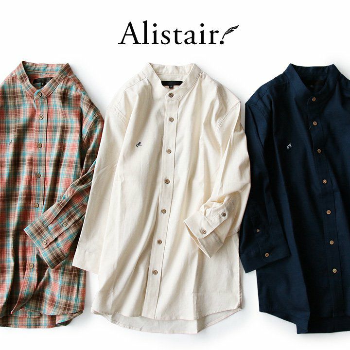 アイロン要らずで、そのままサッと。「透けない」新おとな定番。 シャツ 七分袖 バンドカラー スリム タイト 伸縮 配色 刺繍 綿麻 ストレッチ パナマ 厚手 ハリ ベタベタしない 吸湿 速乾 細見え アイロン要らず メンズ レディース 無地 チェック 春 夏 40代 50代 ALISTAIR [アリステア]