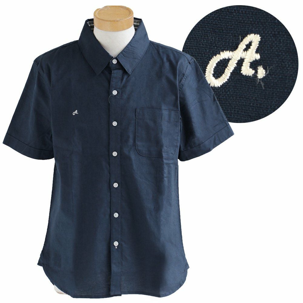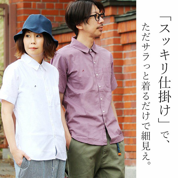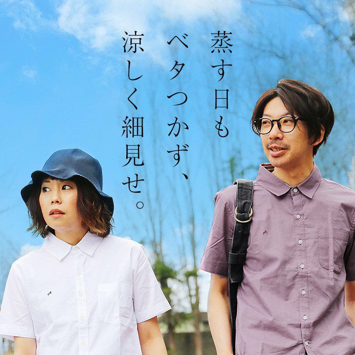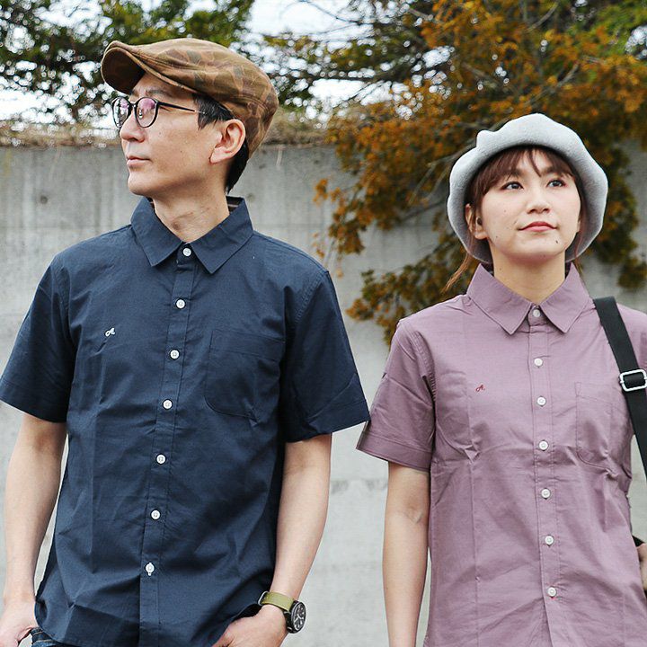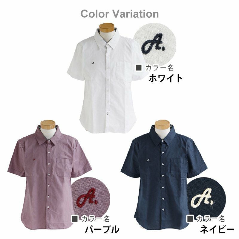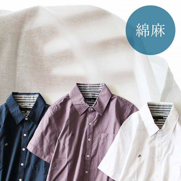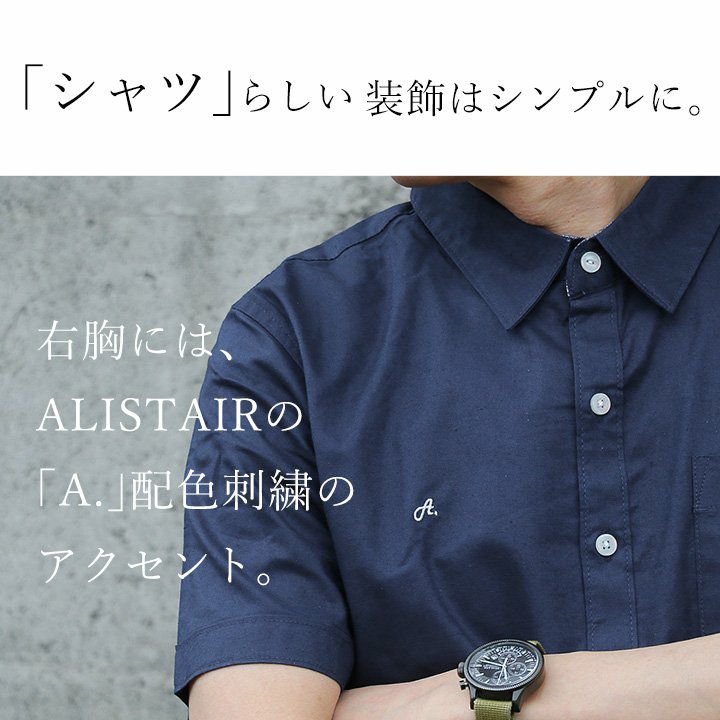 蒸す日もベタつかず、涼しく細見せ。 シャツ 半袖 スリムシルエット レギュラーカラー 綿麻 微ストレッチ オックス 涼しい 軽量 薄手 ワンポイント 配色 刺繍 メンズ レディース トップス 夏 40代 50代 ALISTAIR [アリステア]
