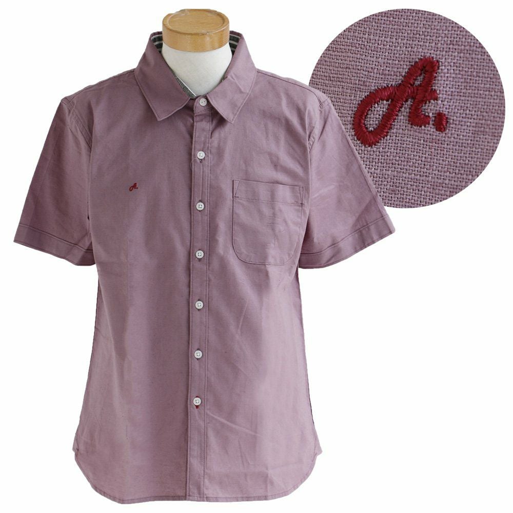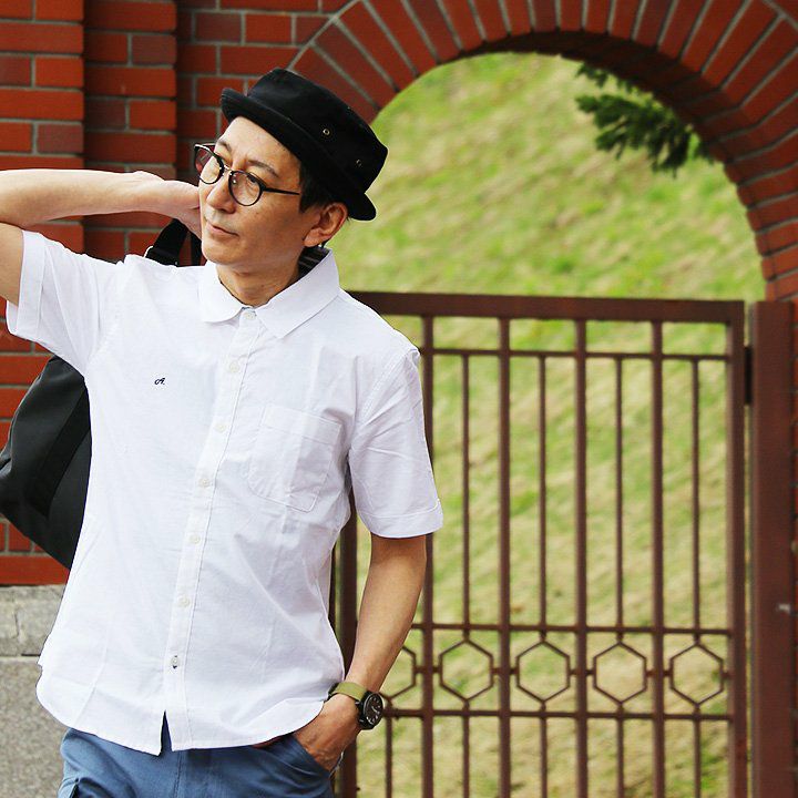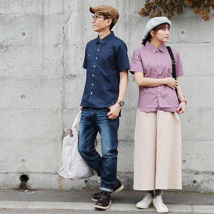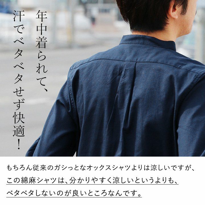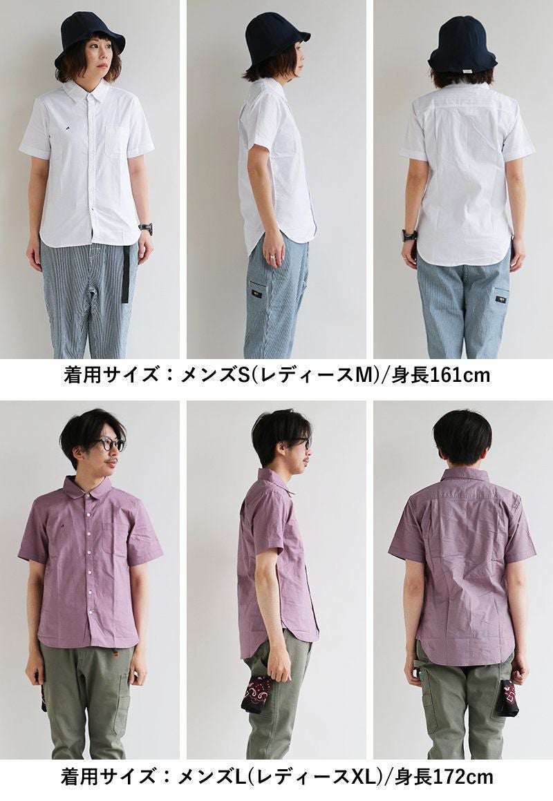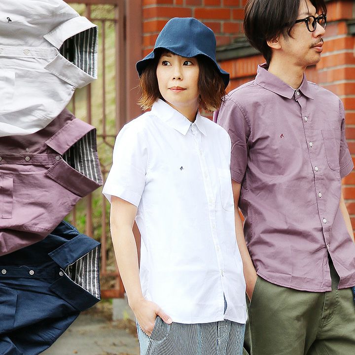 蒸す日もベタつかず、涼しく細見せ。 シャツ 半袖 スリムシルエット レギュラーカラー 綿麻 微ストレッチ オックス 涼しい 軽量 薄手 ワンポイント 配色 刺繍 メンズ レディース トップス 夏 40代 50代 ALISTAIR [アリステア]