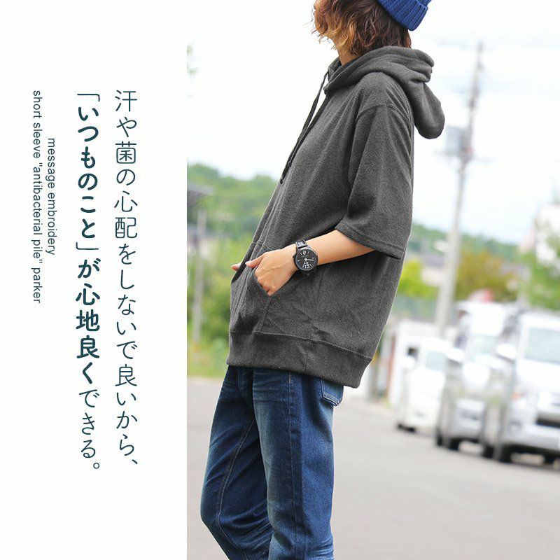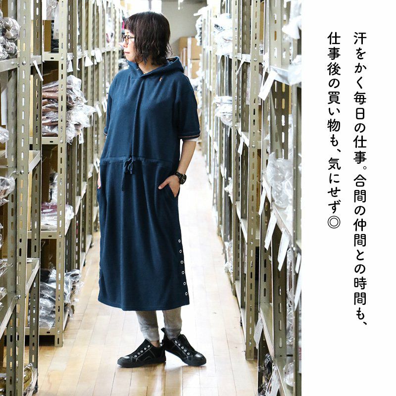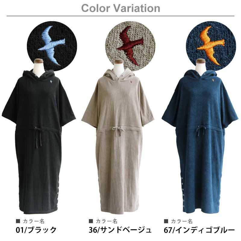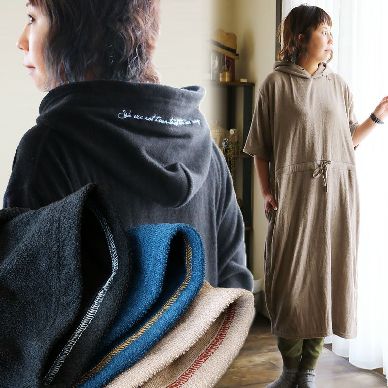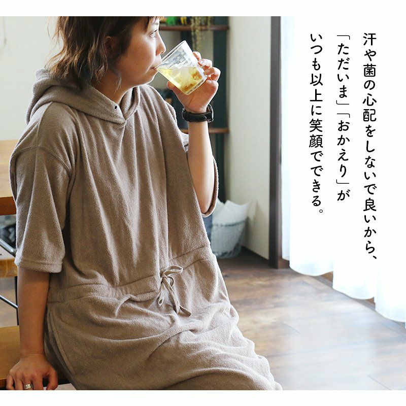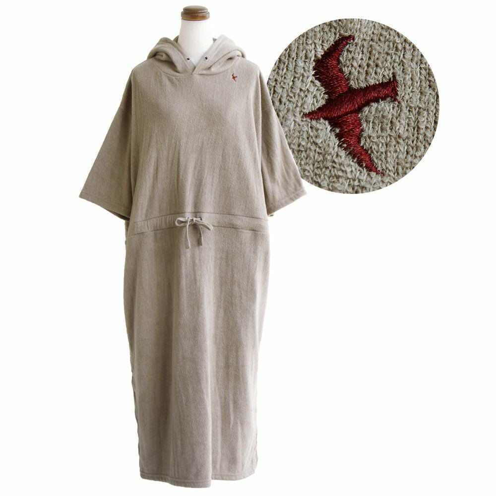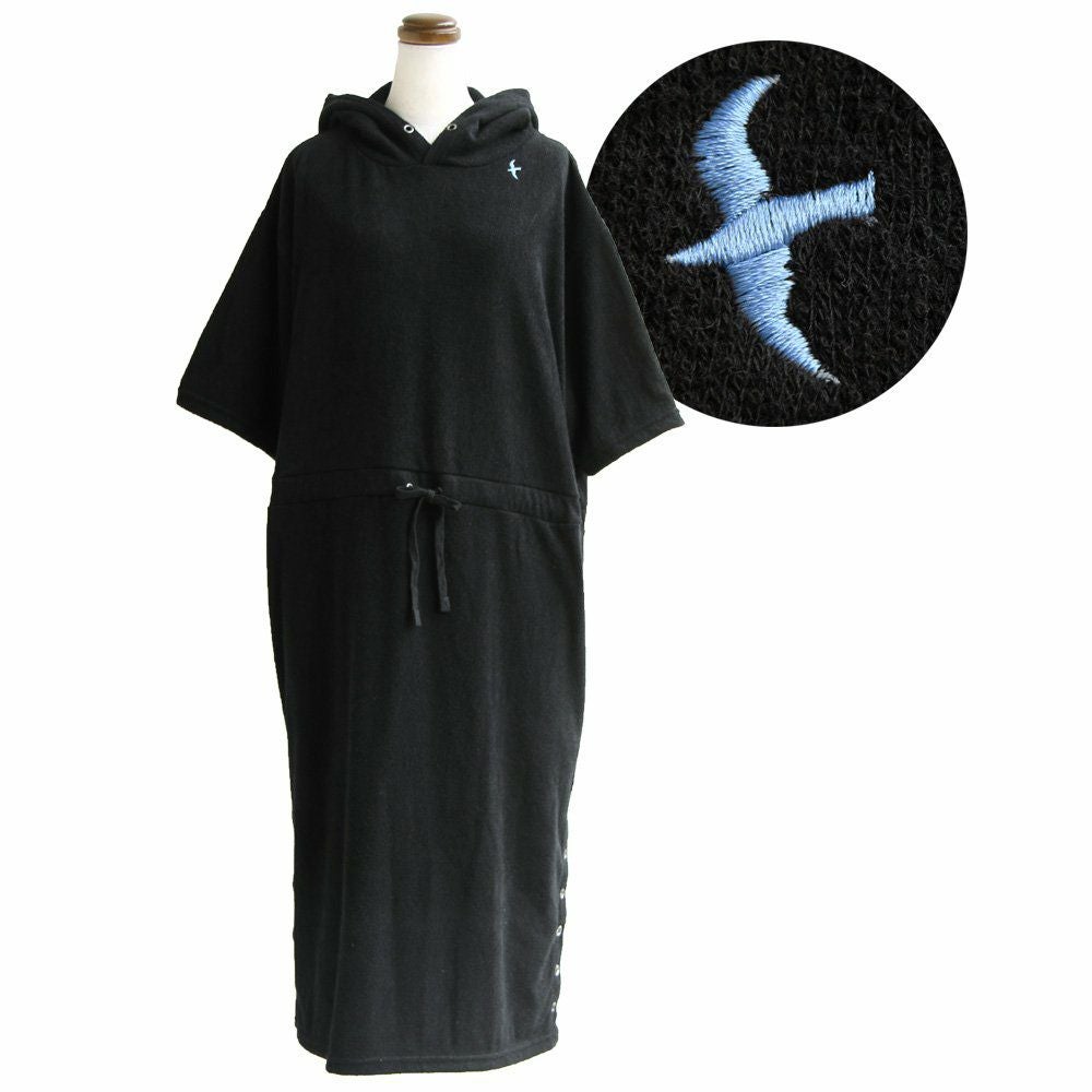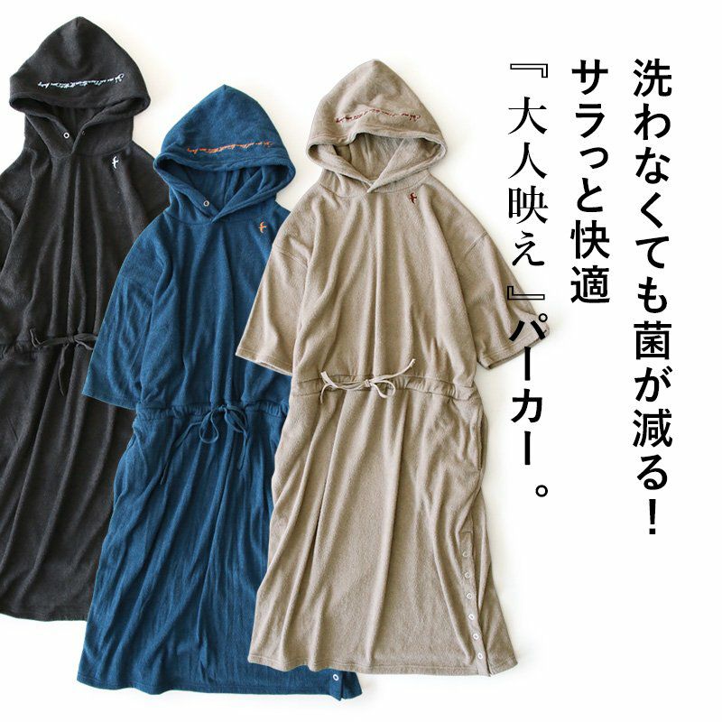 洗わなくても菌が減る!サラっと快適『大人映え』ワンピース。 半袖 パーカー ワンピース 刺繍 フード ツバメ パイル