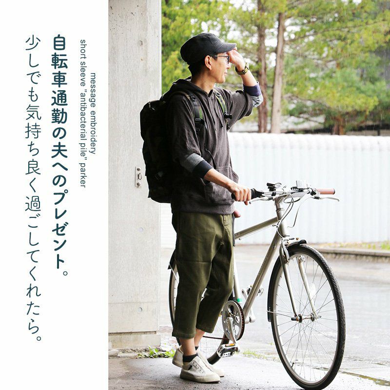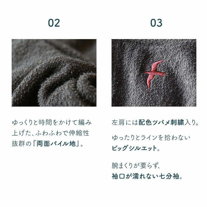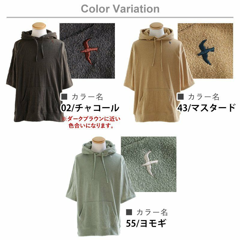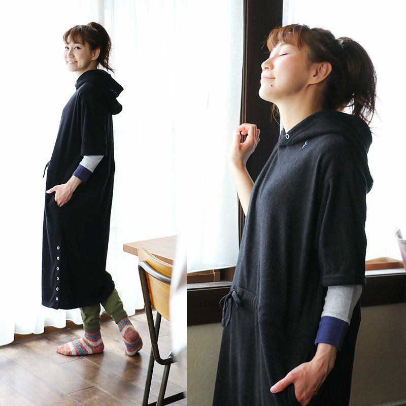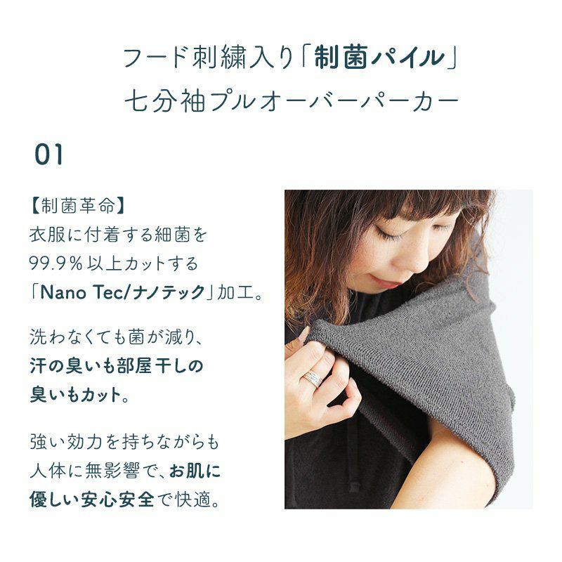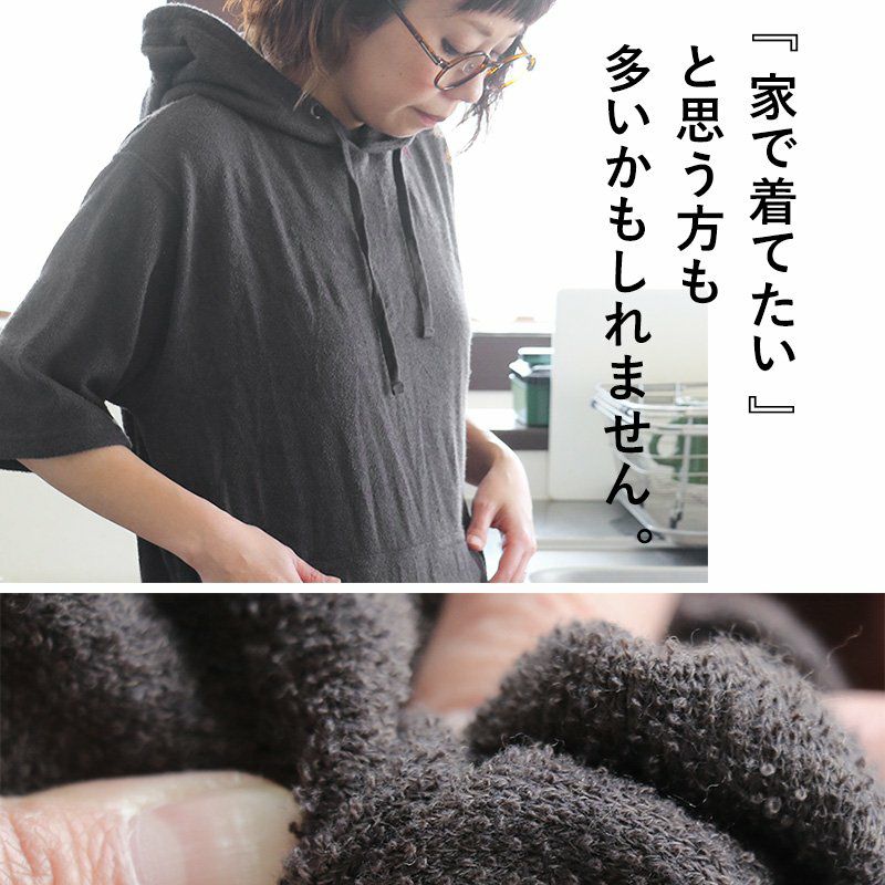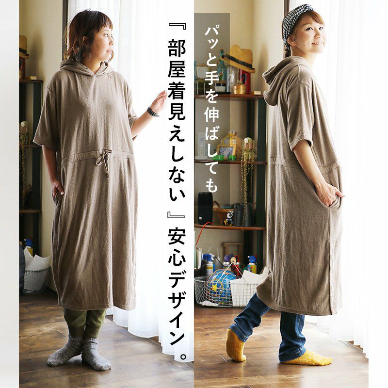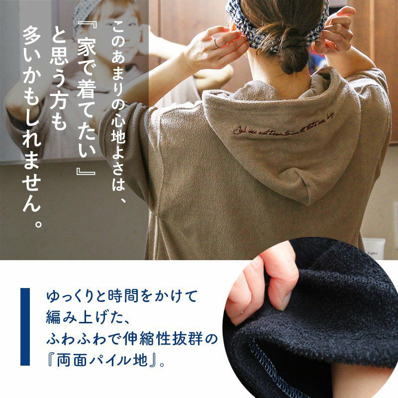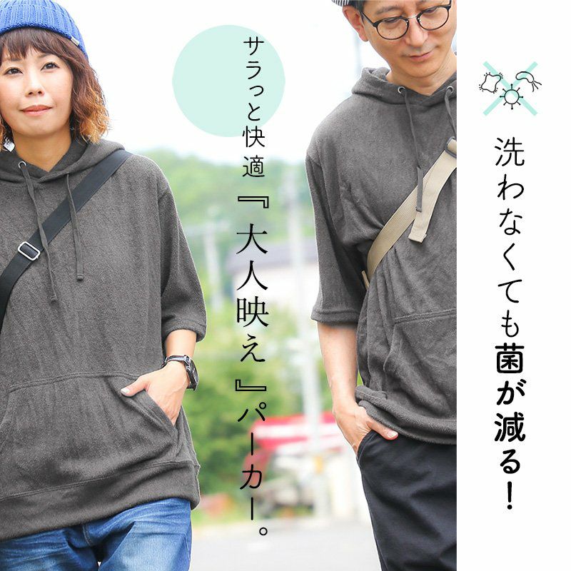 洗わなくても菌が減る!サラっと快適『大人映え』ワンピース。 半袖 パーカー ワンピース 刺繍 フード ツバメ パイル
