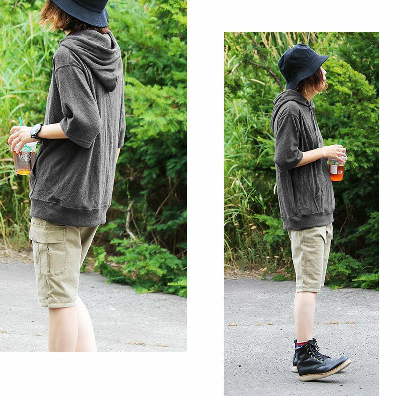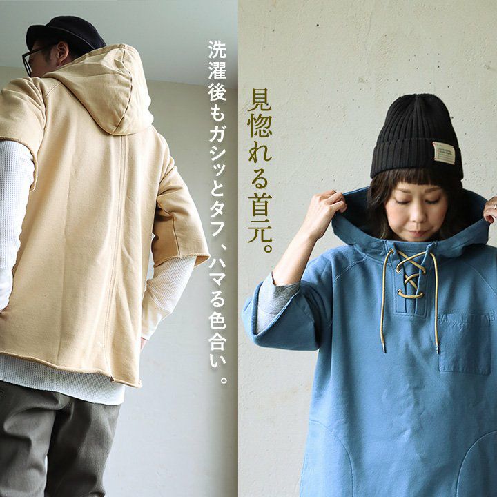洗濯後もガシッとタフ、ハマる色合い。見惚れる首元。 パーカー 五分袖 プルオーバー 秋 重ね着 すっきり 着痩せ しっかり 丈夫 厚手 柔らかい スウェット 綿100% USA コットン ロング丈 お尻 カバー 大きいサイズ レディース メンズ ユニセックス リブ ポケット カジュアル OAR’S オールズ