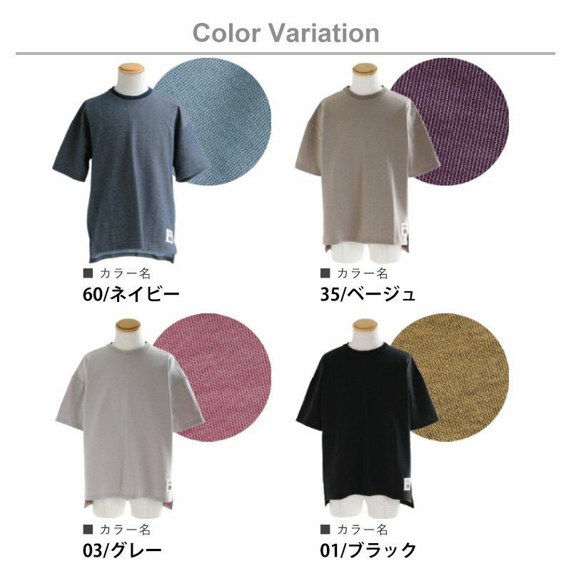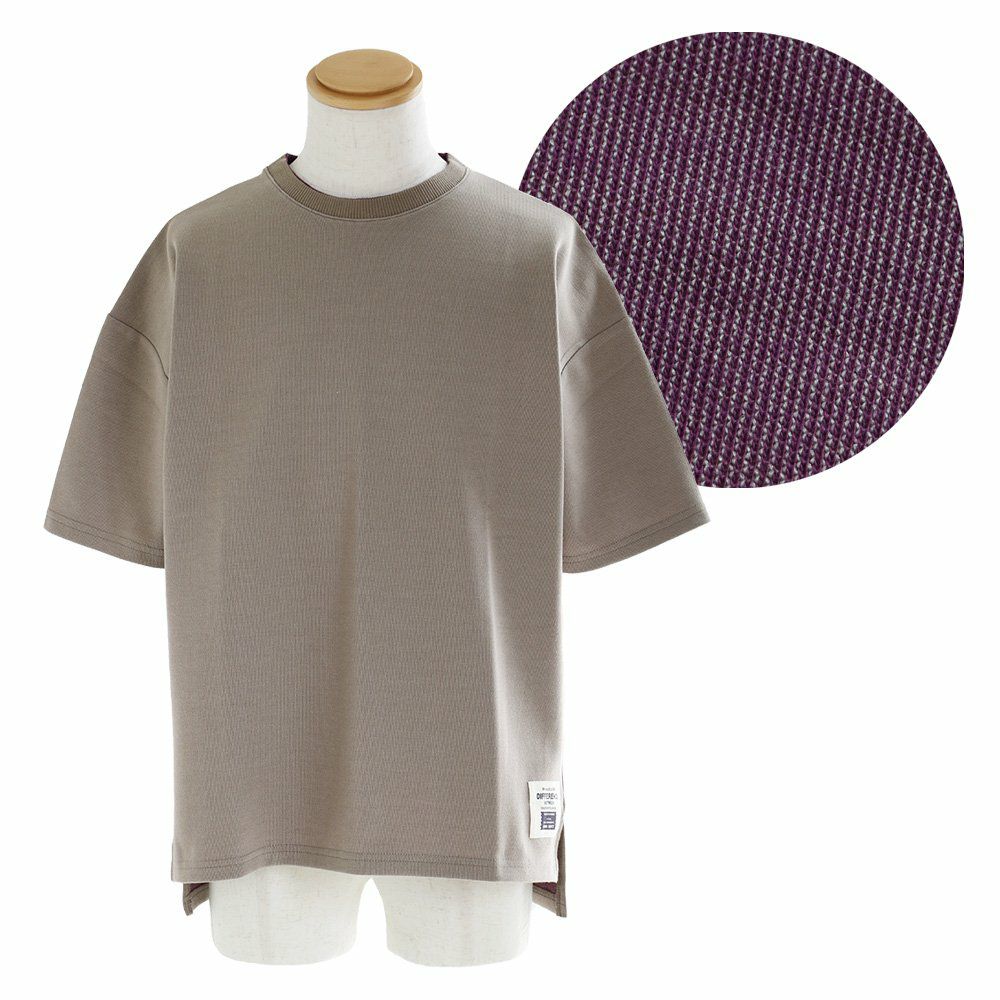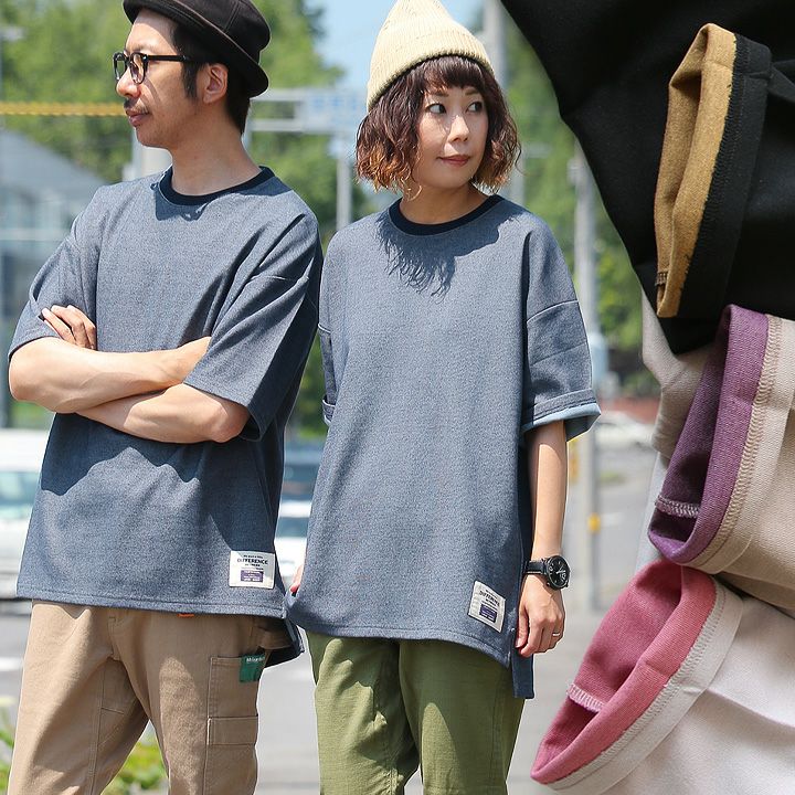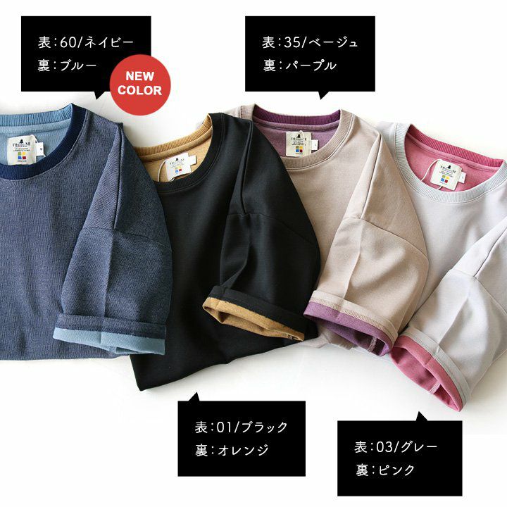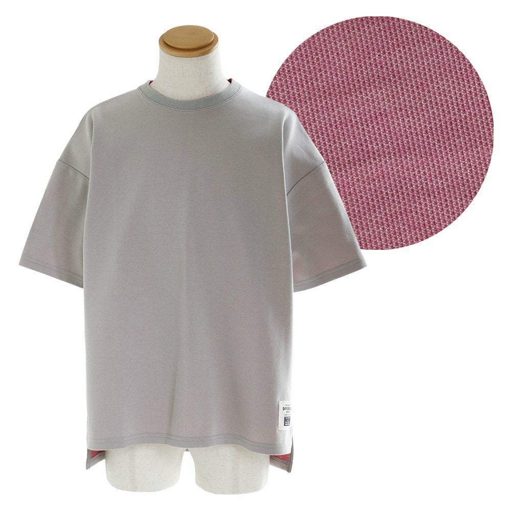 袖からチラリ。このくらいがちょうどいい! Tシャツ 半袖 ワイド ビッグT ティーシャツ リブネック 「表裏 配色 ダブルフェイス」 サイドスリット 前後アシメントリー着丈 メンズ レディース カジュアル 40代 50代 厚手 無地 重ね着 TOneontoNE [トーン]