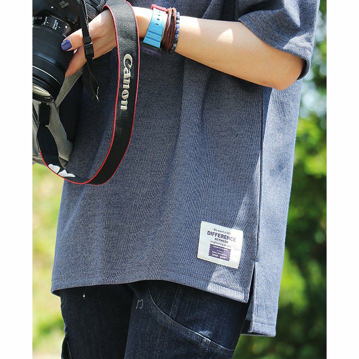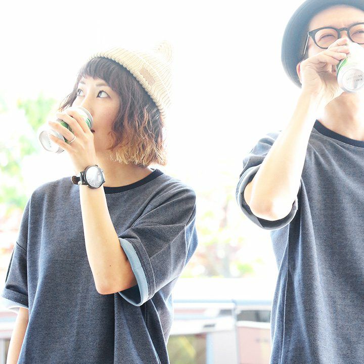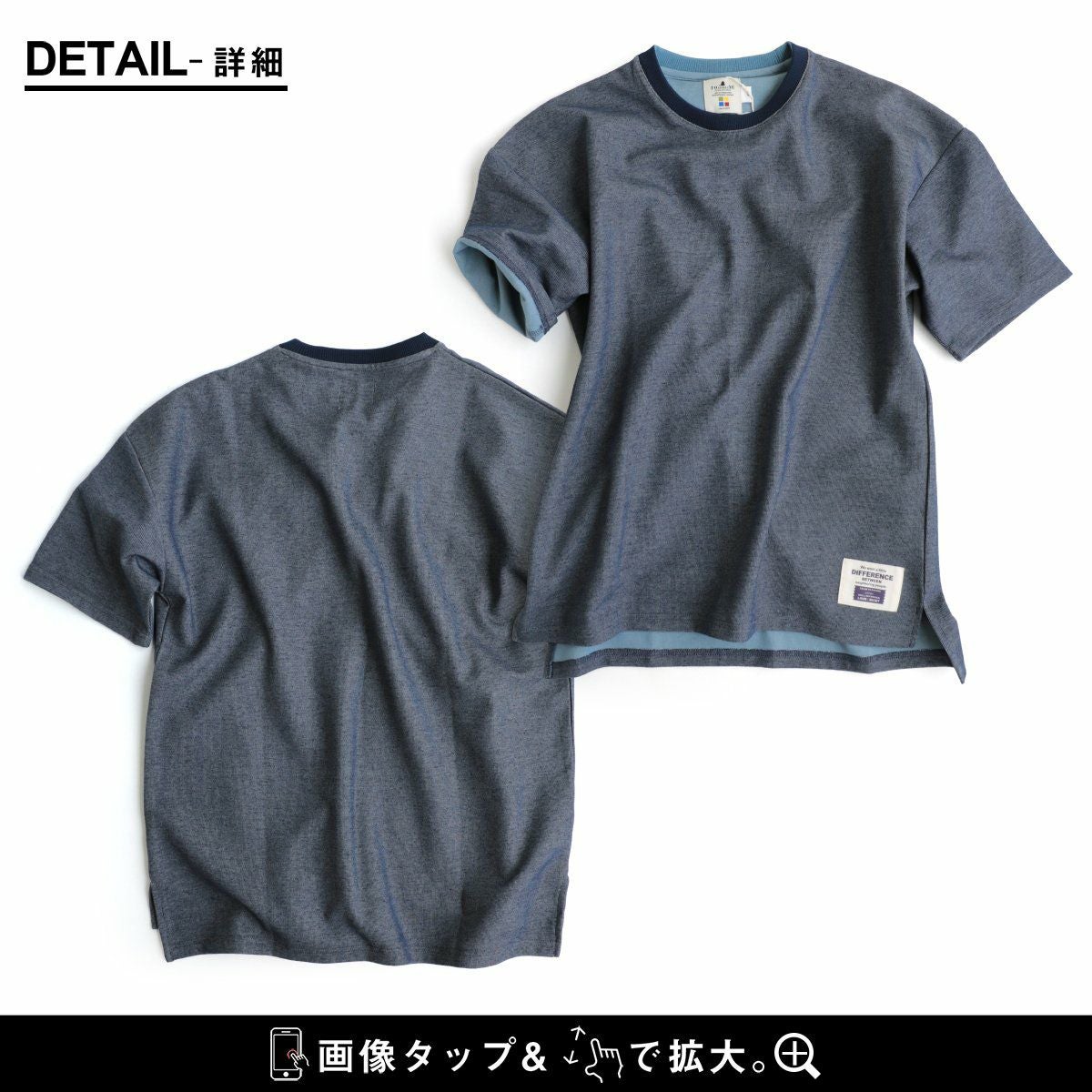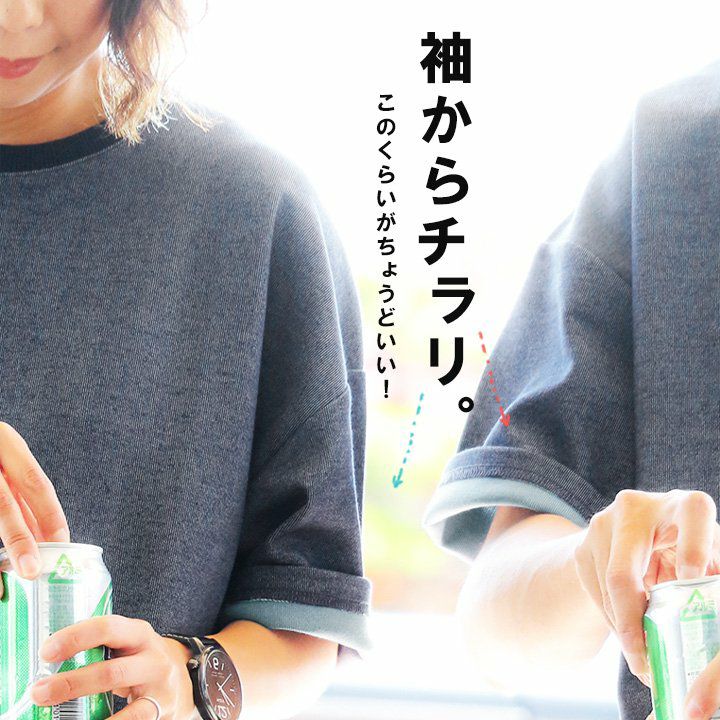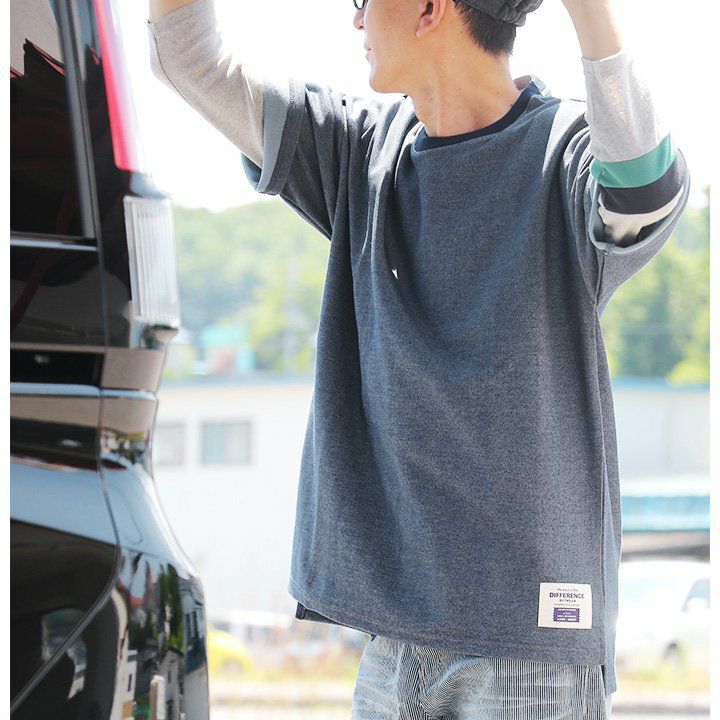 袖からチラリ。このくらいがちょうどいい! Tシャツ 半袖 ワイド ビッグT ティーシャツ リブネック 「表裏 配色 ダブルフェイス」 サイドスリット 前後アシメントリー着丈 メンズ レディース カジュアル 40代 50代 厚手 無地 重ね着 TOneontoNE [トーン]