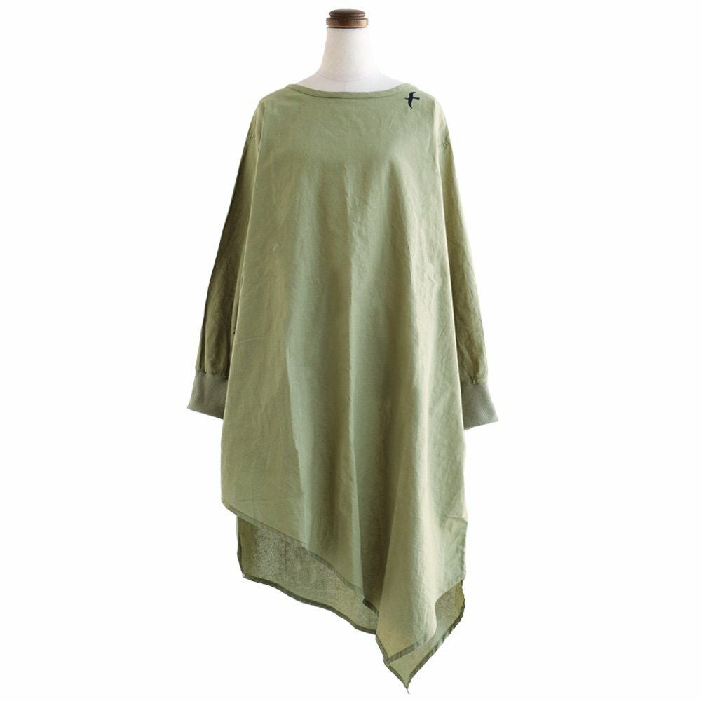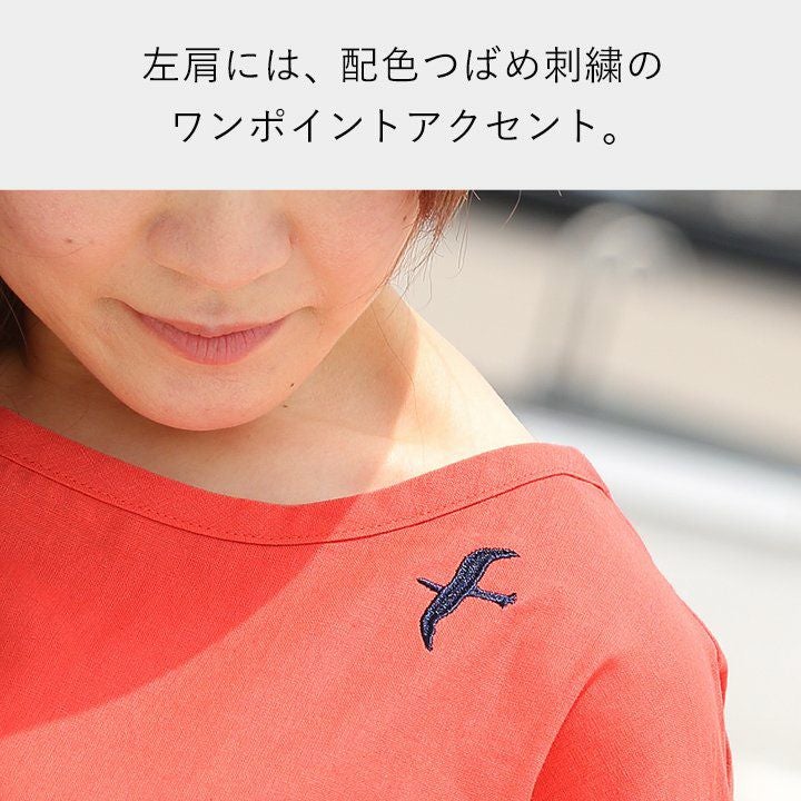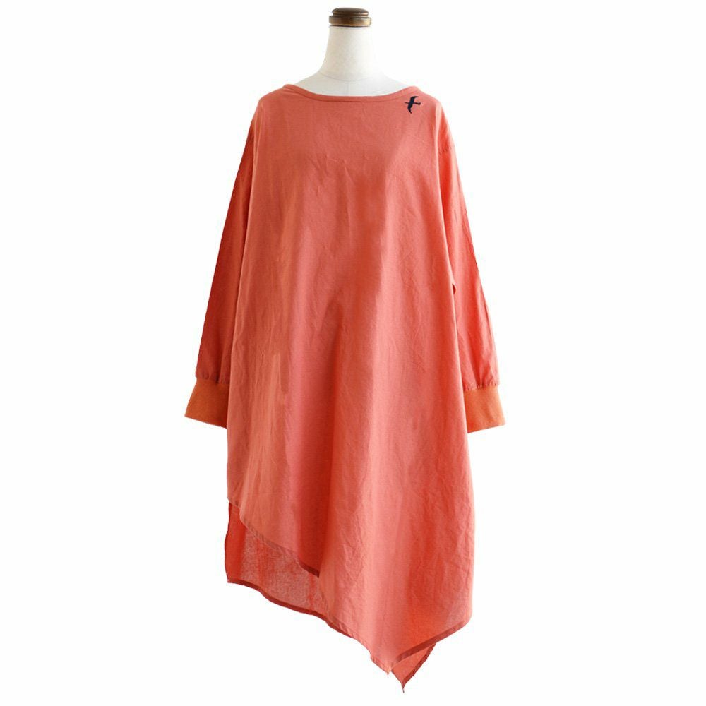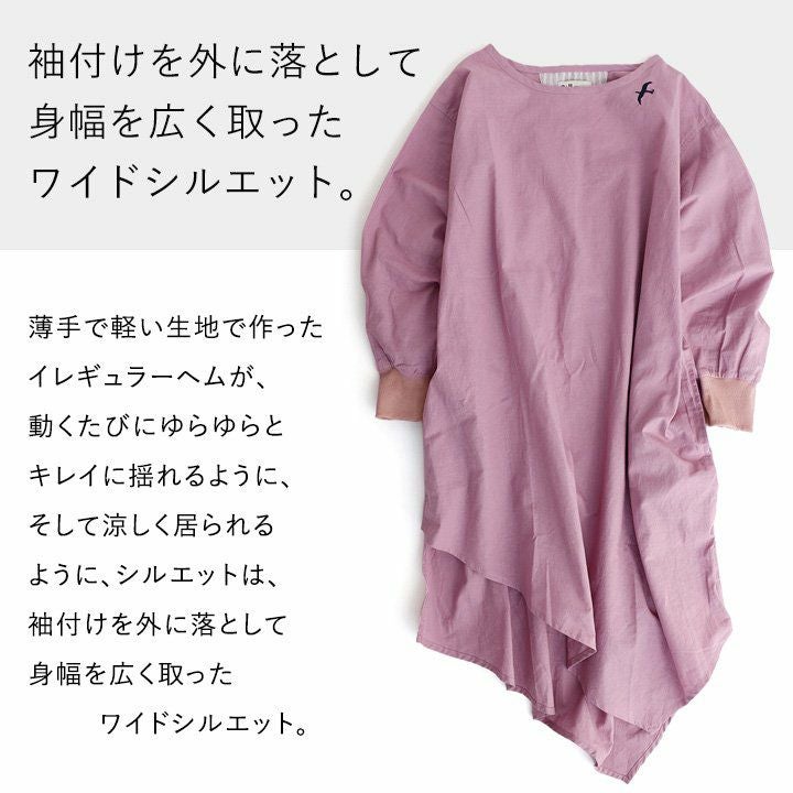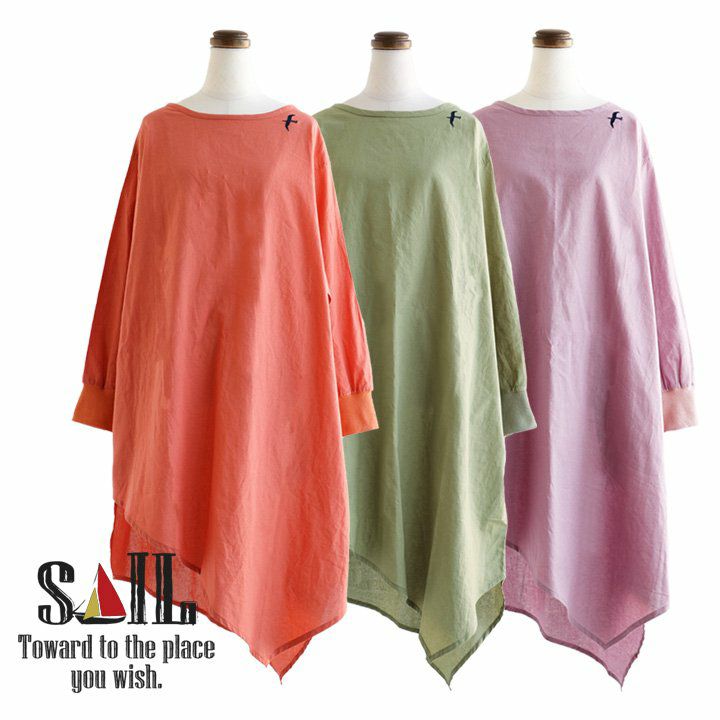 ワンピ―スだって、涼しい顔で、カッコよく。 ワンピース 長袖 アシンメトリー イレギュラーヘム 変形デザイン ボートネック 薄手 綿麻 涼しい 軽い 配色 つばめ刺繍 レディース カジュアル フリーサイズ 春 40代 50代 おしゃれ SAIL [セイル]