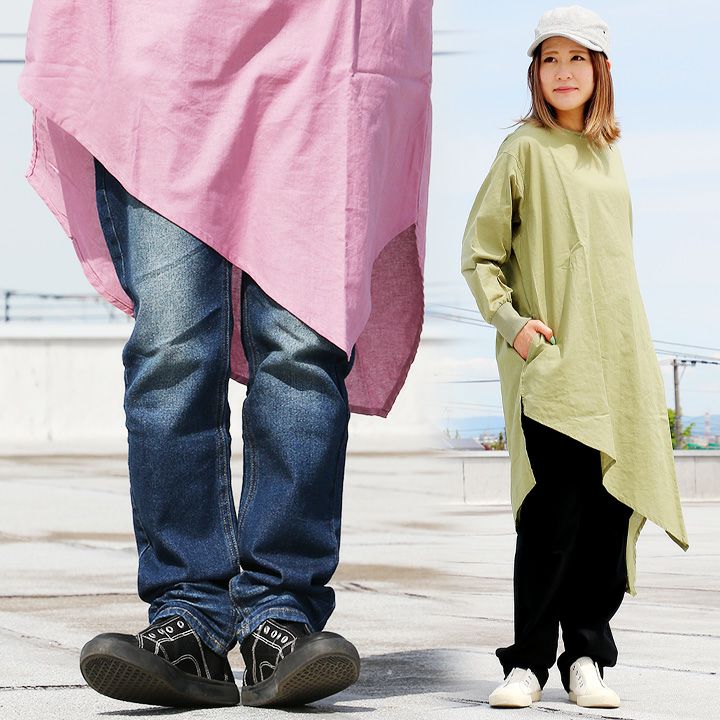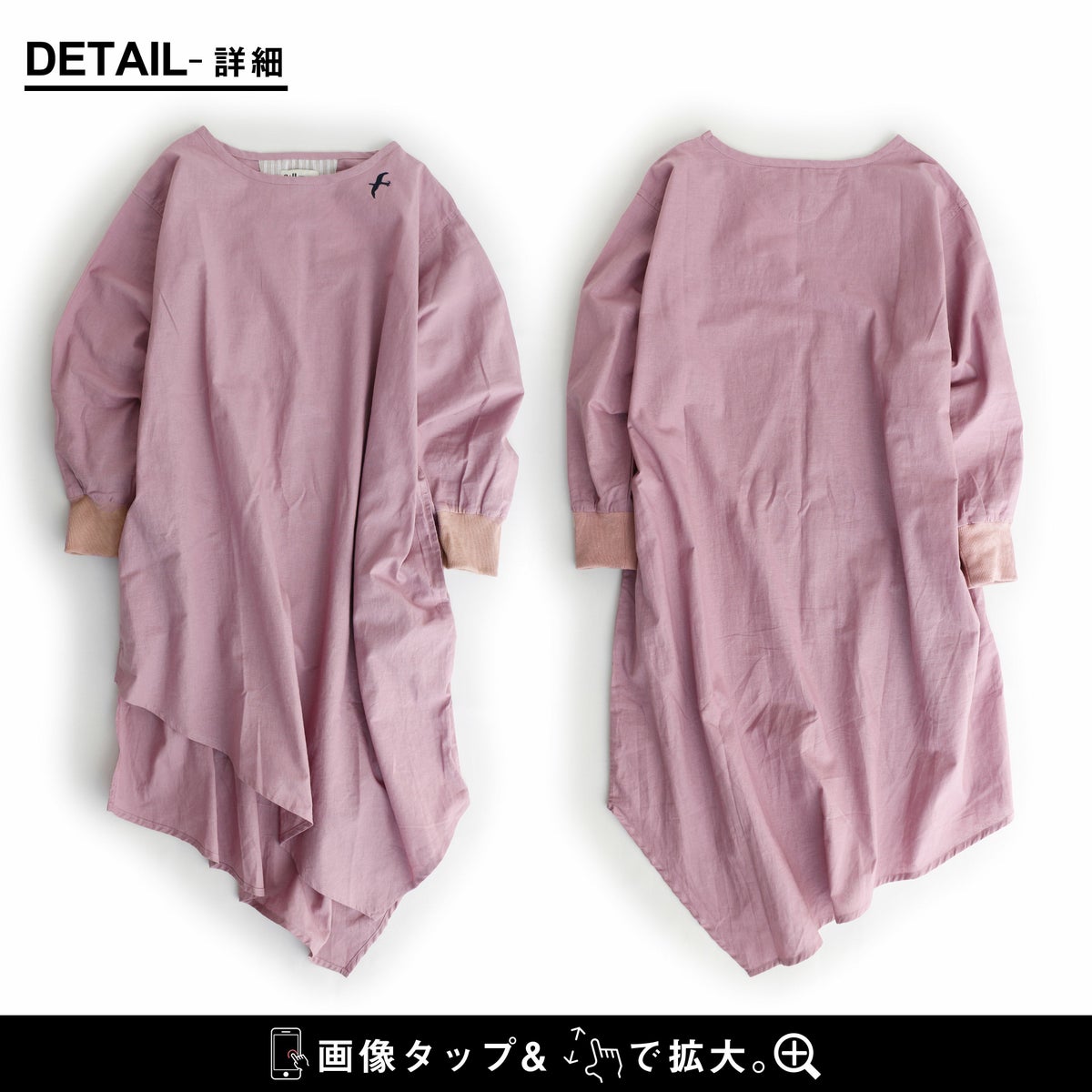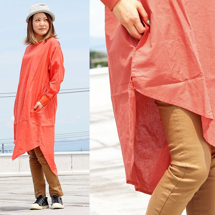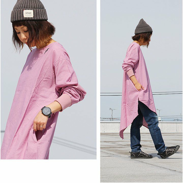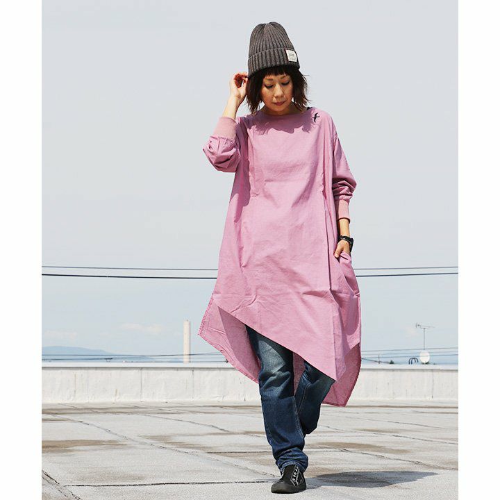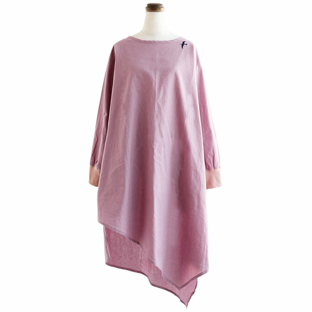 ワンピ―スだって、涼しい顔で、カッコよく。 ワンピース 長袖 アシンメトリー イレギュラーヘム 変形デザイン ボートネック 薄手 綿麻 涼しい 軽い 配色 つばめ刺繍 レディース カジュアル フリーサイズ 春 40代 50代 おしゃれ SAIL [セイル]
