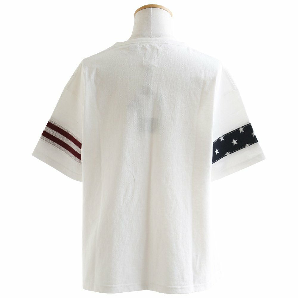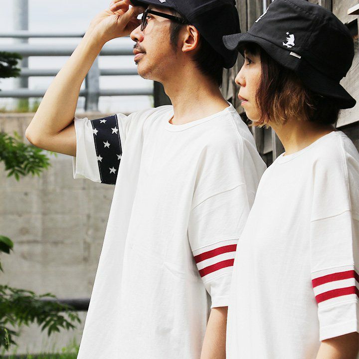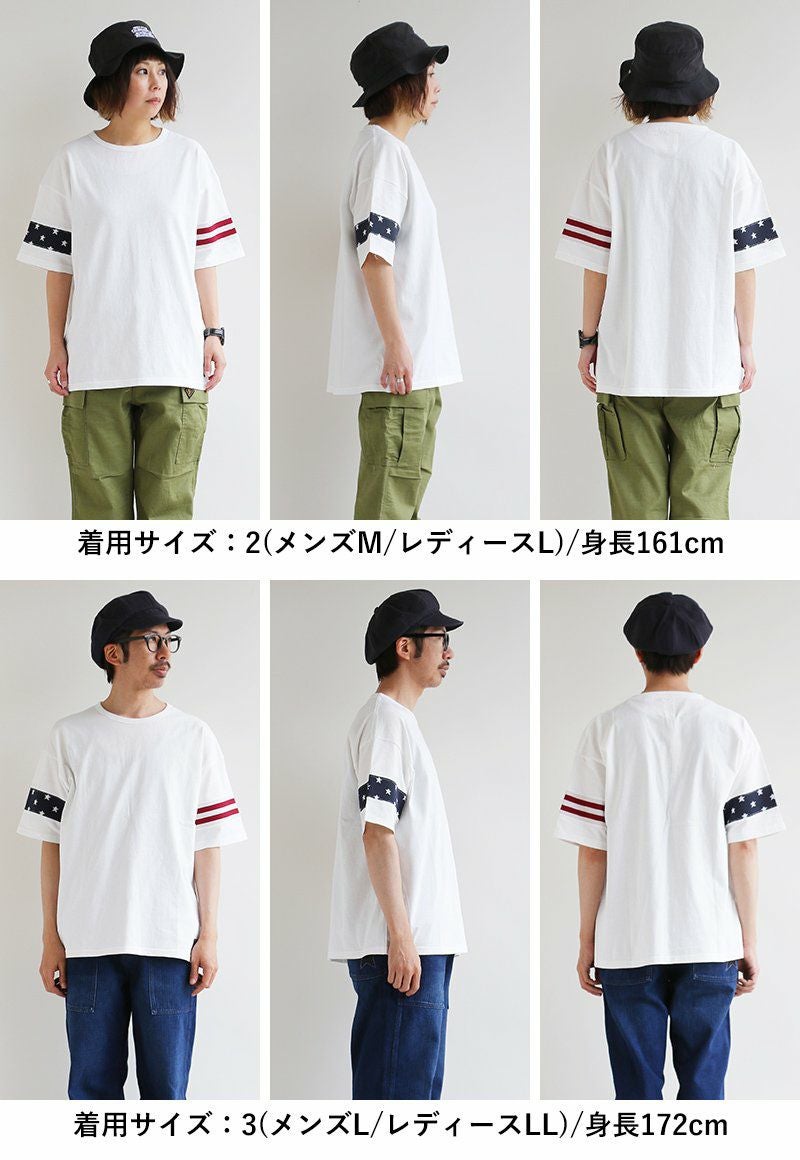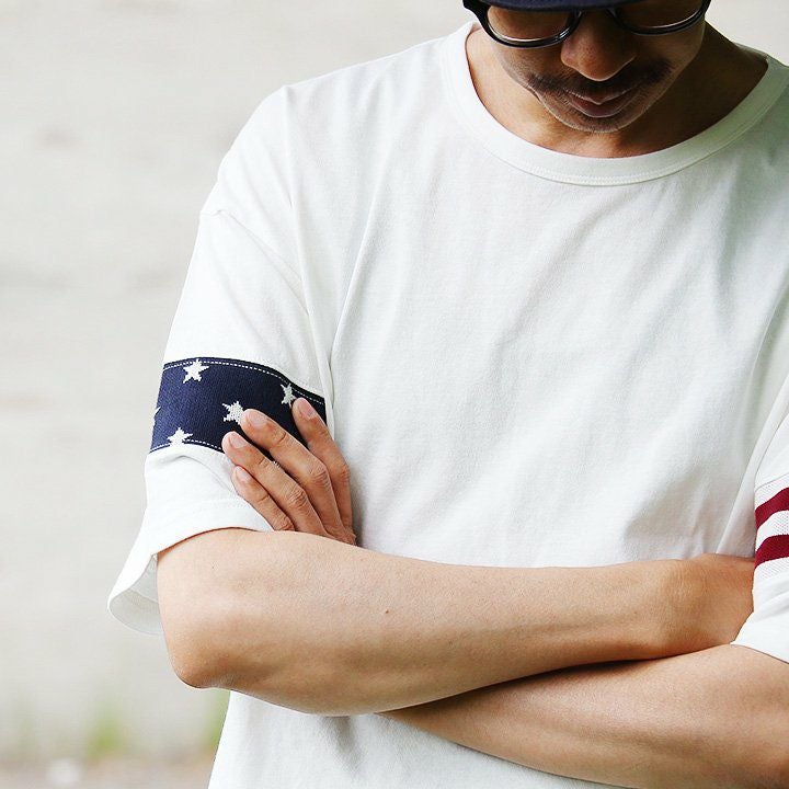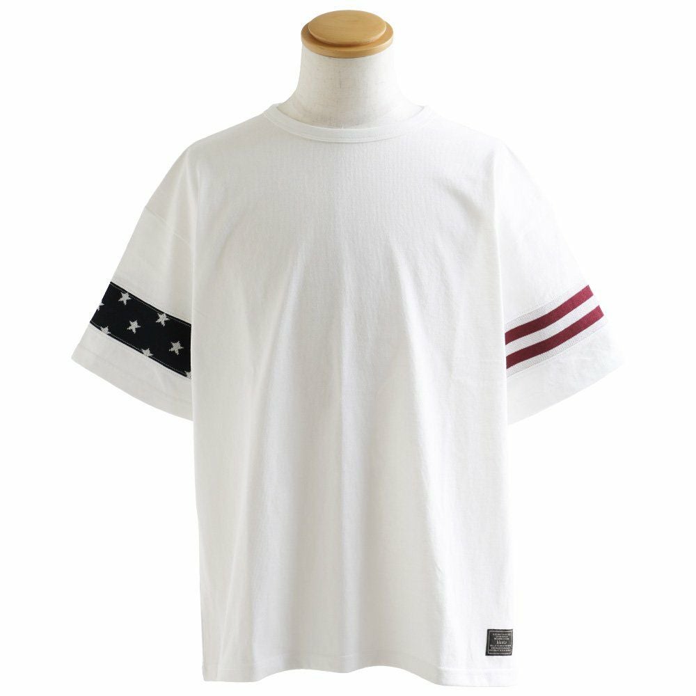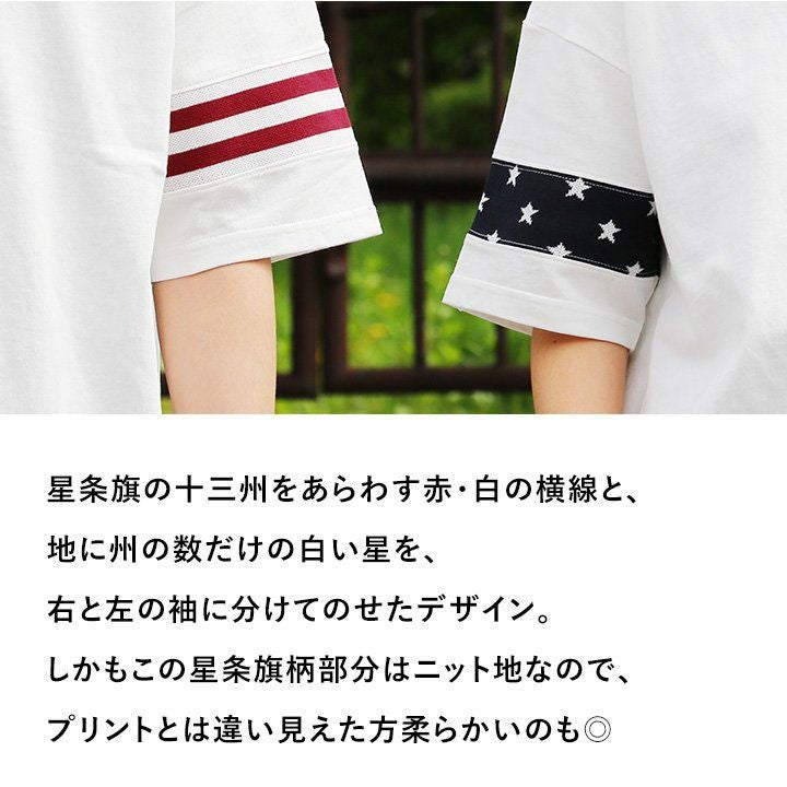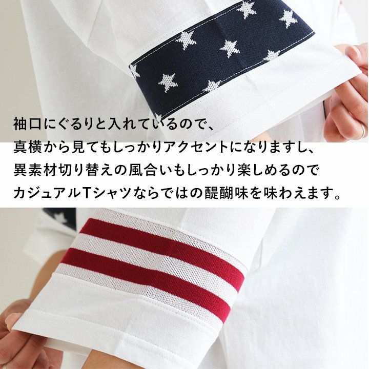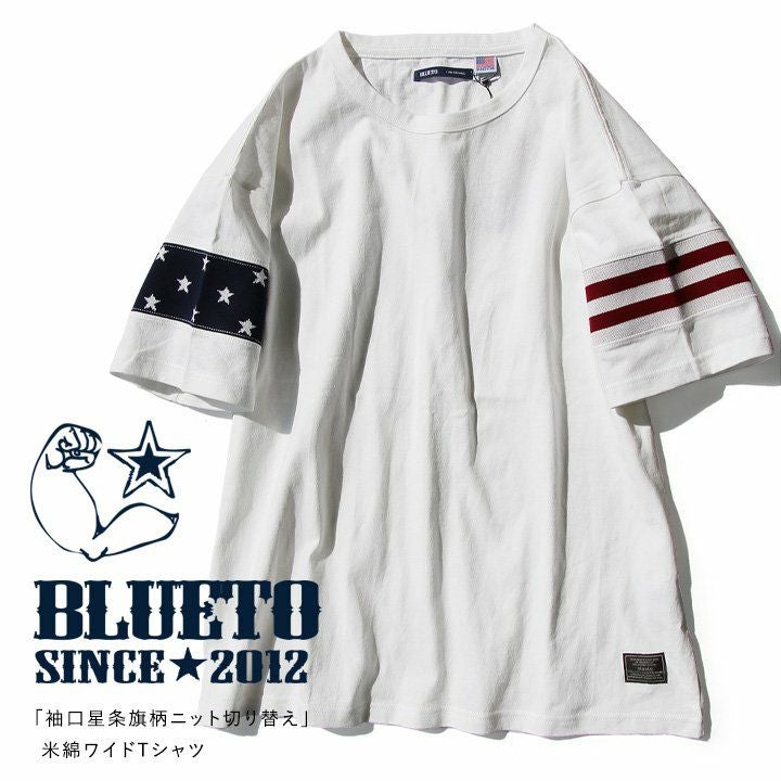 やり尽くされたと思ったけど、『この手があったか!』 星条旗はプリントじゃなく織り柄 Tシャツ ビッグT ティーシャツ 半袖 ワイド 米綿100% 袖口ニット 切り替え メンズ レディースメンズライク 重ね着 大きいサイズ | ティシャツ 半袖tシャツ ティーシャツ BLUETO [ブルート]