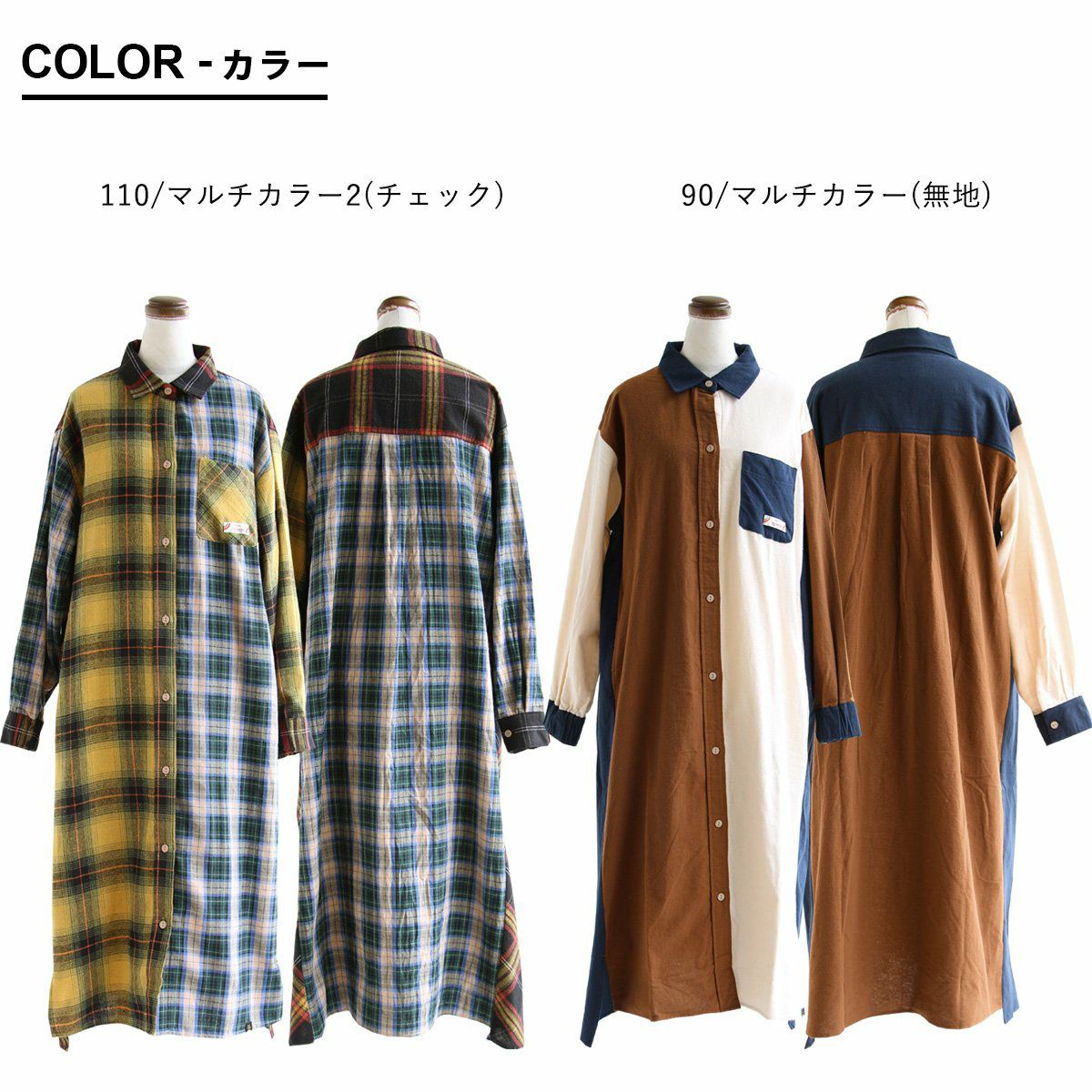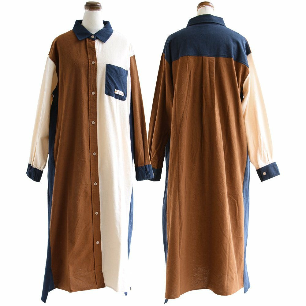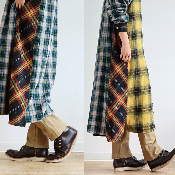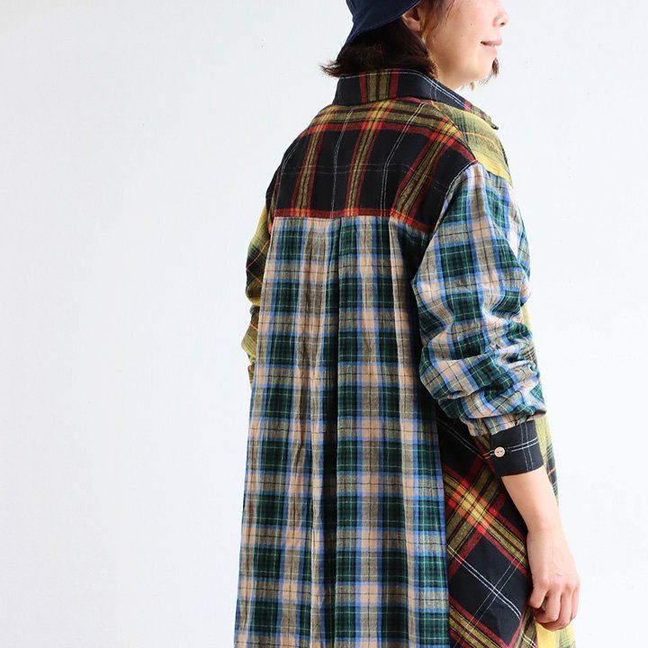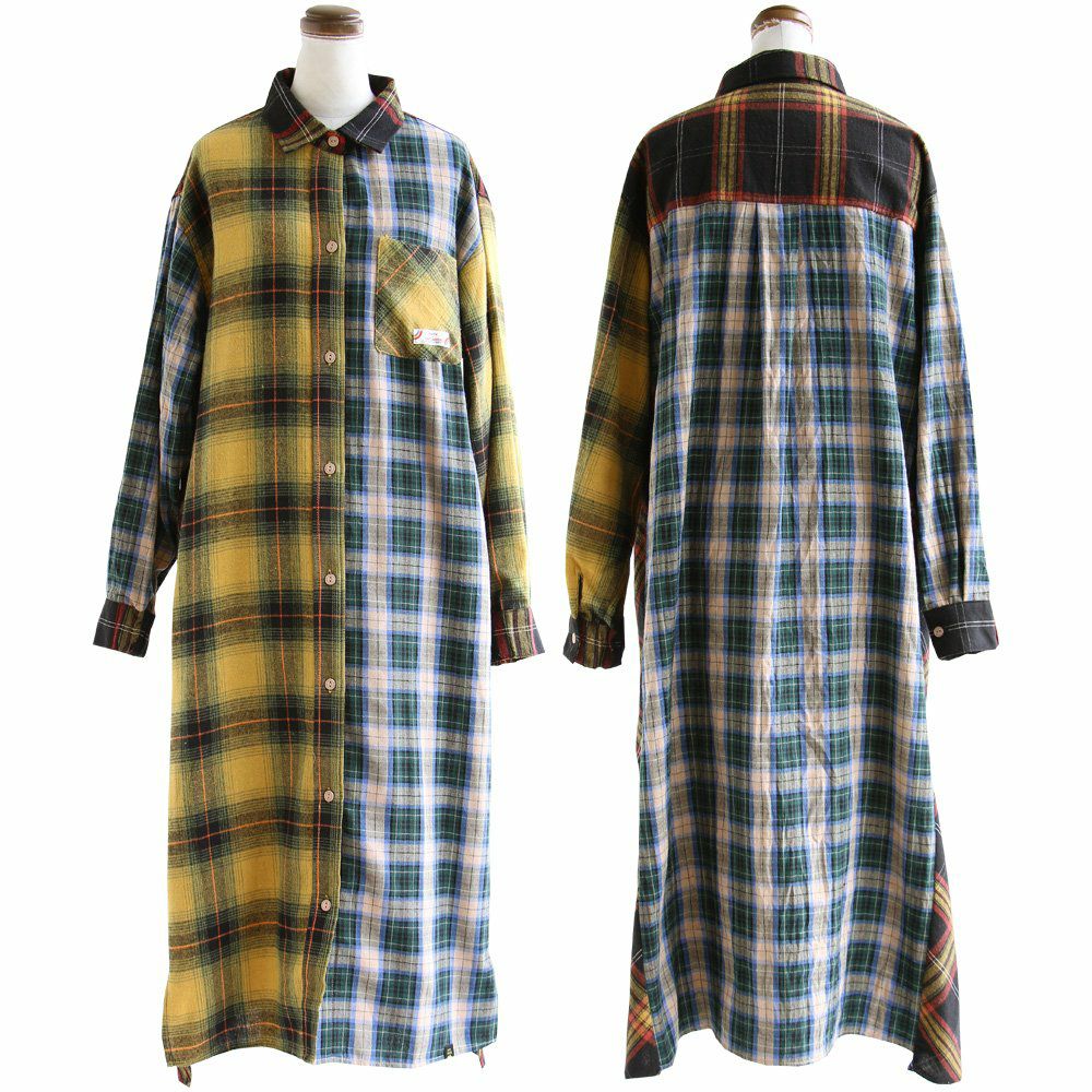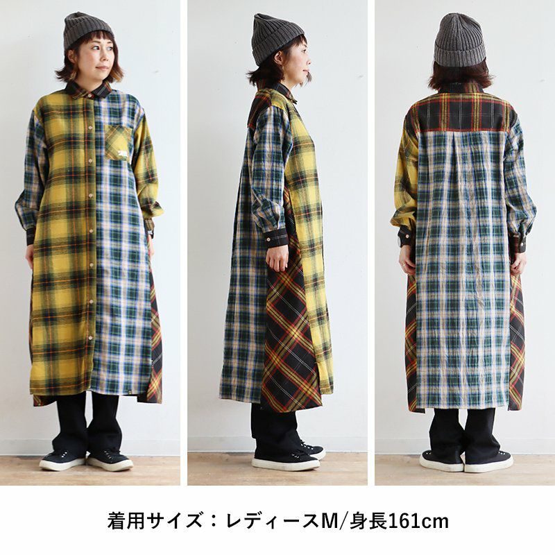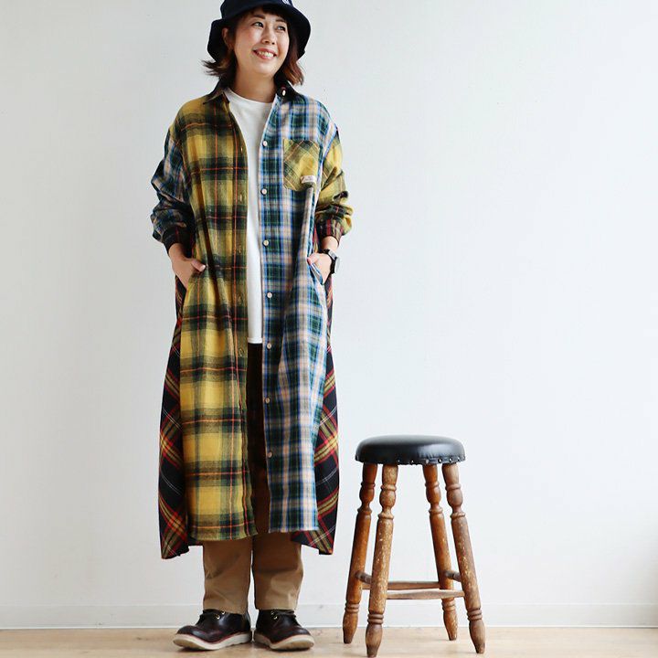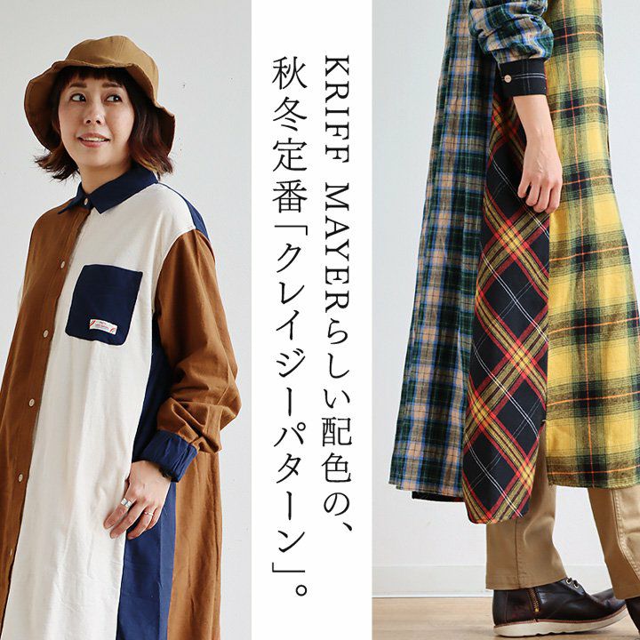 遊びの利いた大定番。ほのかな起毛感が表情豊かに。 KRIFF MAYER PATY KRIFF MAYER クリフメイヤー ワンピース レディース シャツ 長袖 ロング シャツワンピ フランネル ネルシャツ 綿100% 起毛 ワンポイント 秋 冬 体型カバー 着痩せ カジュアル コラボ クリフメイヤー パティー