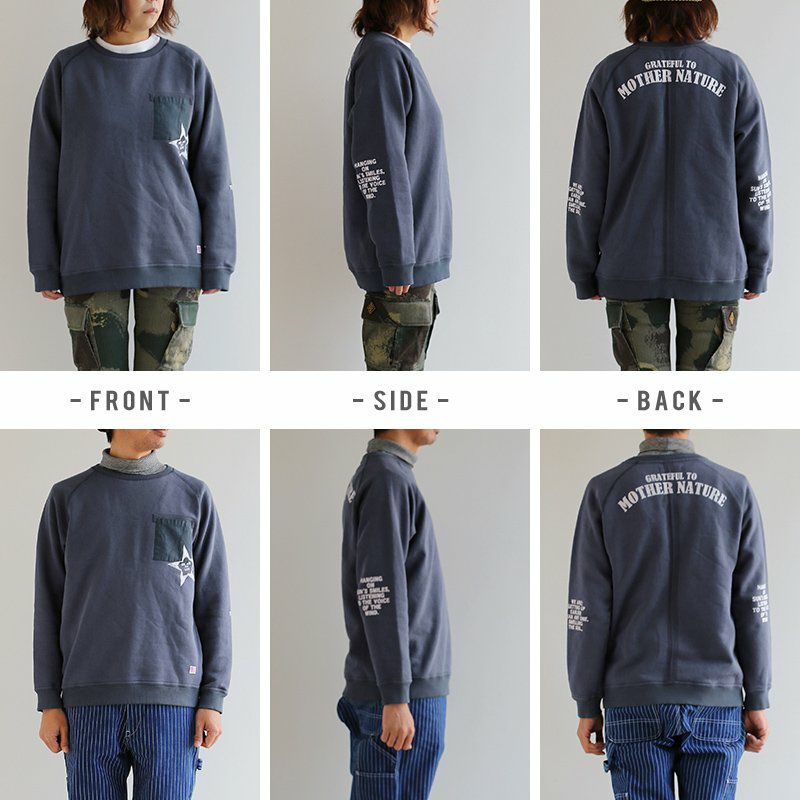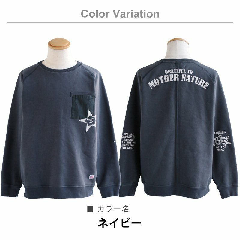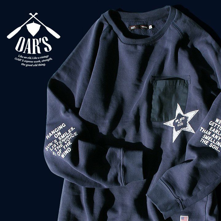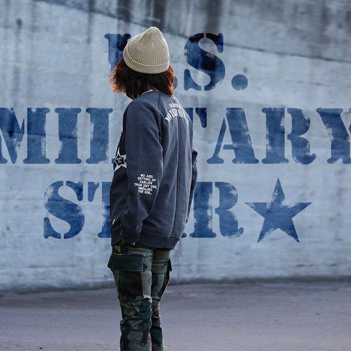 U.S. Military STAR★ トレーナー スウェット 長袖 ラグラン 星 スター プリント 「裏起毛 USAコットン 米綿 綿100% 14オンス ヘビーウェイト 活性染め」 ヘリンボーンリブ 無地 カジュアル メンズ レディース OAR'S [オールズ]