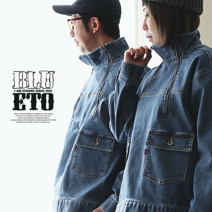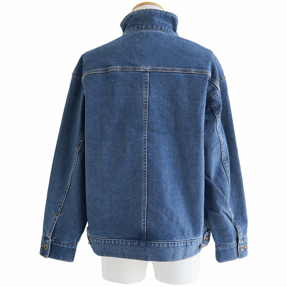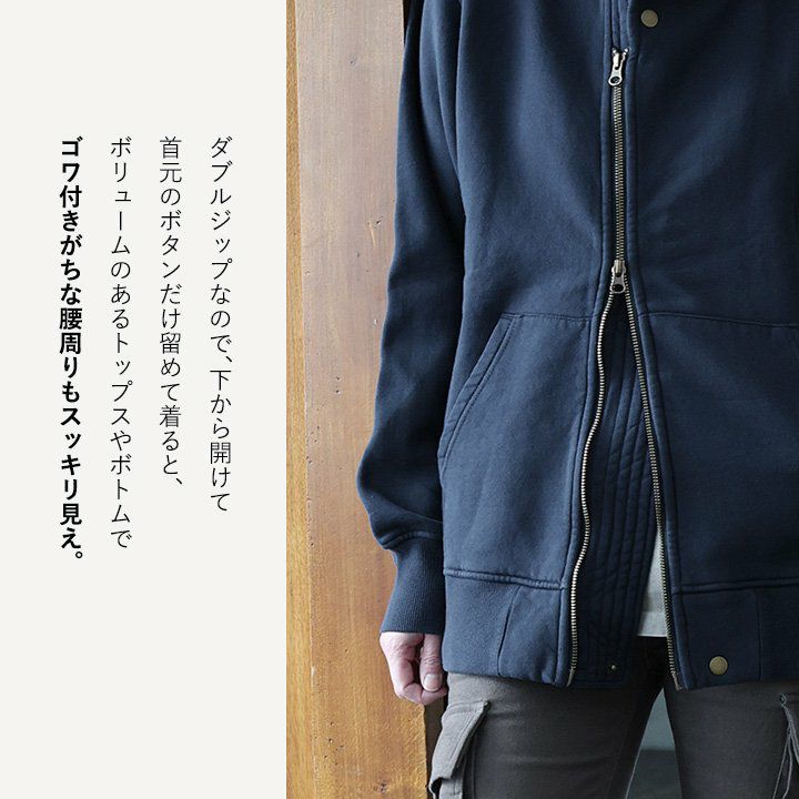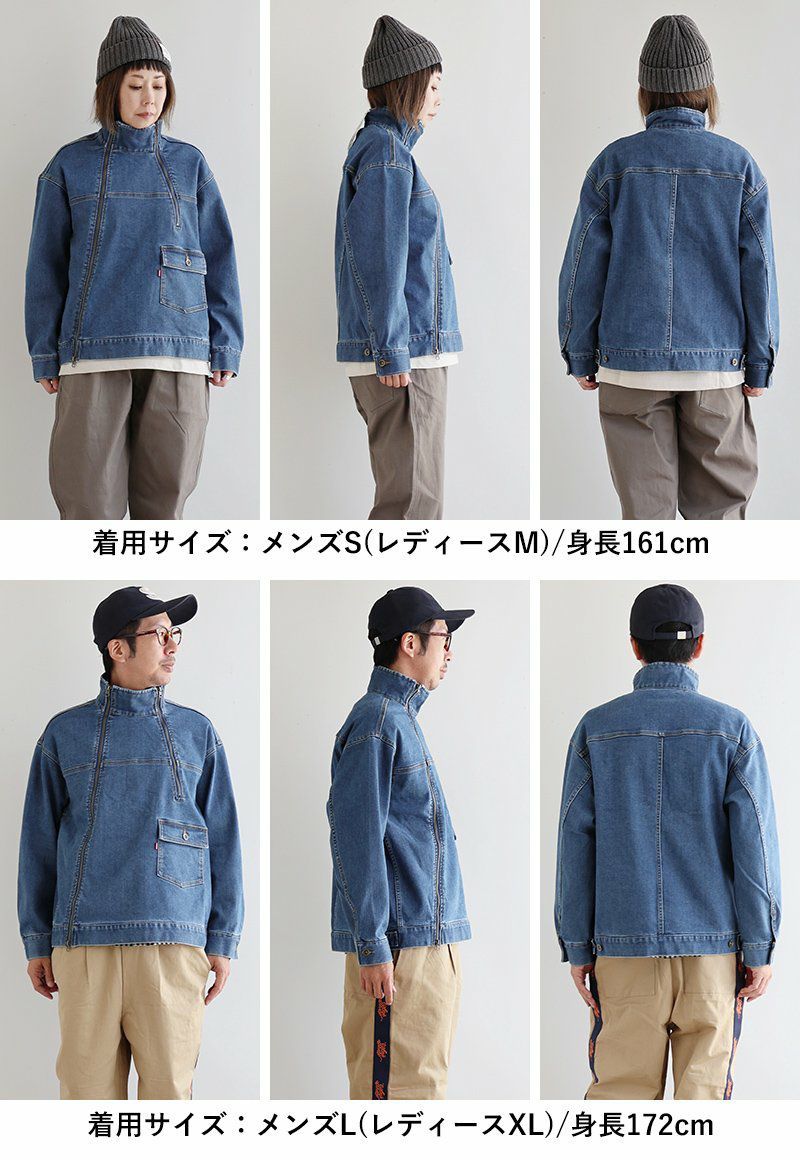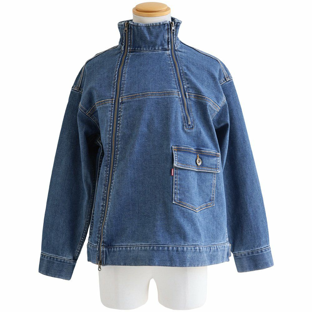 「斜め」Gジャン。 デニム ブルゾン Gジャン メンズ レディース ストレッチ コットン ハイネック 斜め ダブルジップ しっかり 丈夫 厚手 長袖 ゆったり 大きいサイズ カジュアル 秋 冬 パティ BLUETO ブルート