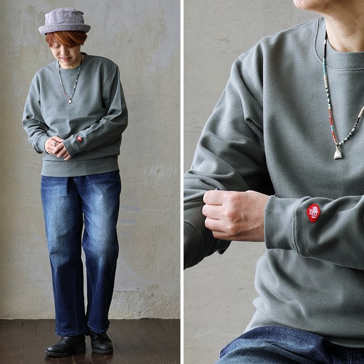 タフな生地に、ポップなイラスト。 トレーナー スウェット メンズ レディース 長袖 裏毛 綿100 USAコットン ワイド 着痩せ しっかり 丈夫 軽い 柔らか 袖 裾 リブ ゆったり お尻 体系カバー アップル サガラ 刺繍 大き目 スエット 大人 カジュアル パティ TOneontoNE トーン