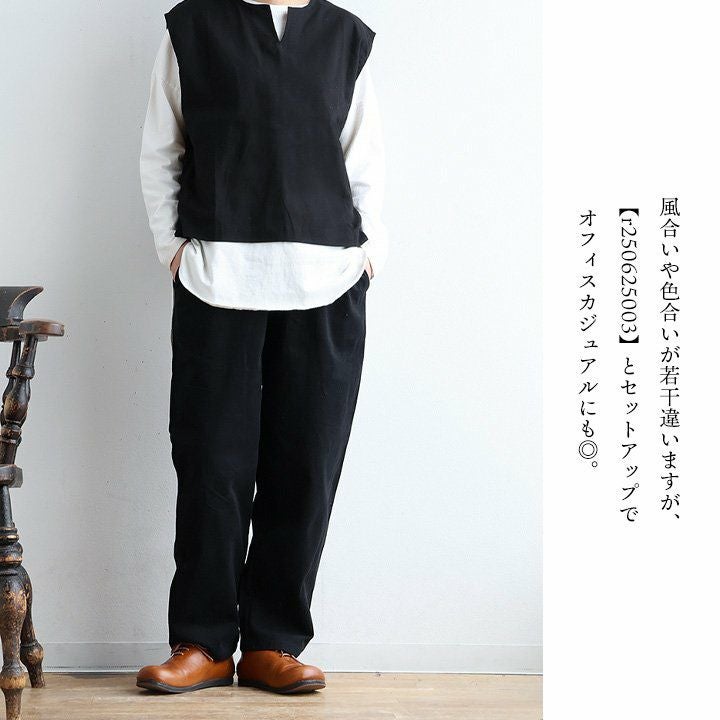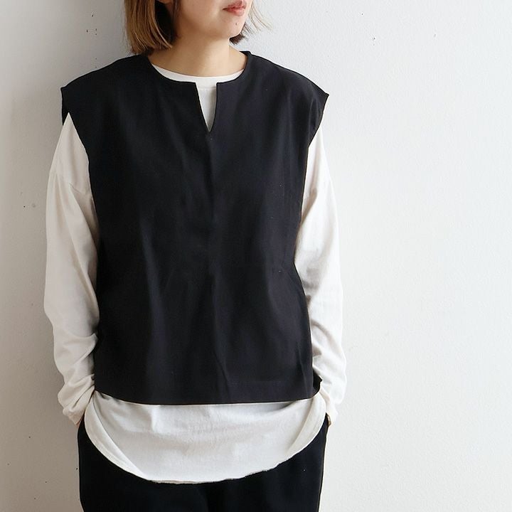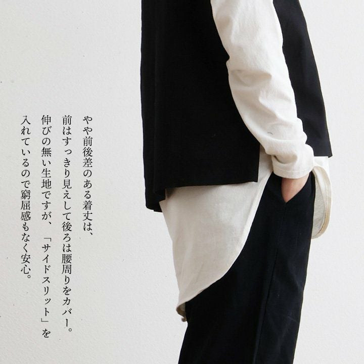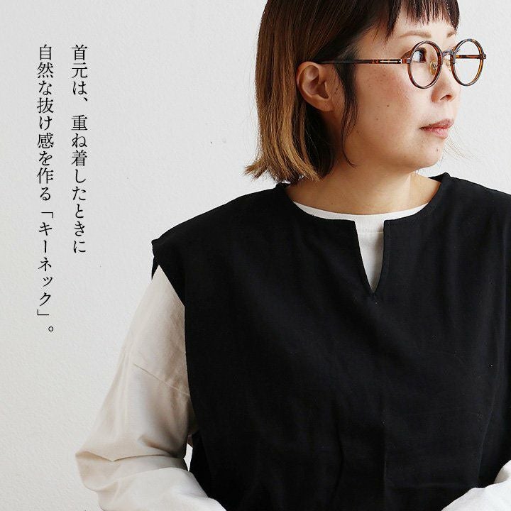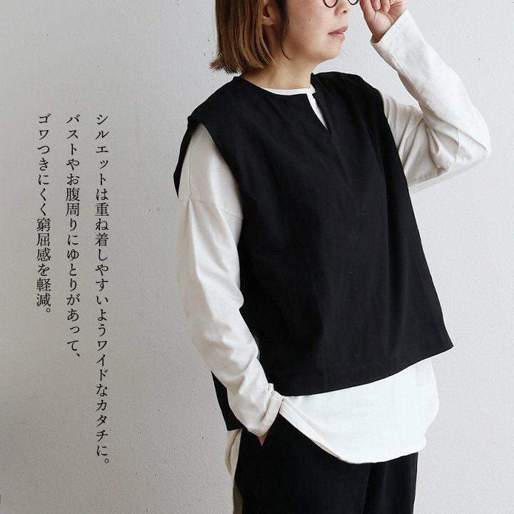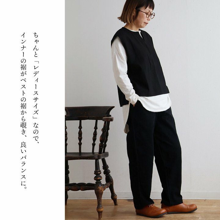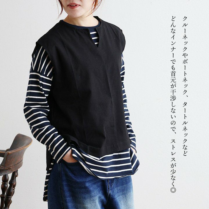 「ゆるっと」重ねて、「きりっと」した佇まい。 ベスト レディース キーネック 綿100 コットン 重ね着 薄手 軽い 重ね着 ゆったり 大きいサイズ 体型カバー カジュアル オフィス ビジネス 仕事 秋 冬 パティ SAIL セイル