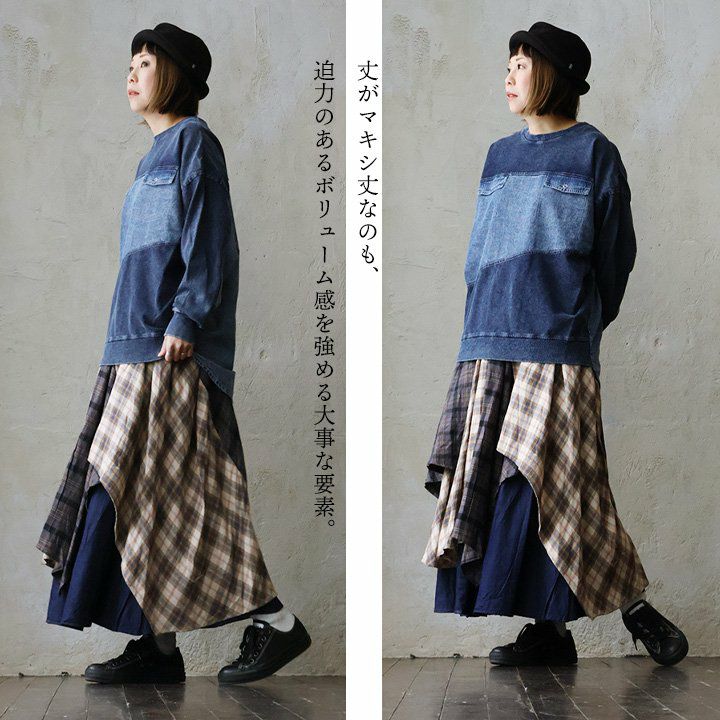 普段スカートを穿かないわたしが唯一穿ける、「動けるスカート」。 スカート レディース ロング丈 ストレッチ 伸縮性 動きやすい しっかり 丈夫 コットンツイル ウエストゴム ミリタリー ラップ風 体型カバー すっきり 細見え ボックスシルエット 大きいサイズ 大人 カジュアル パティ OAR’S オールズ