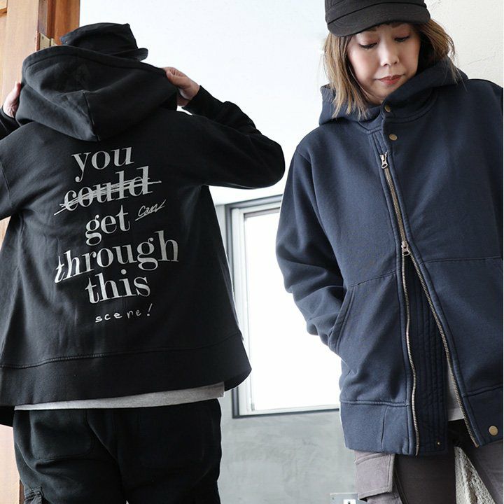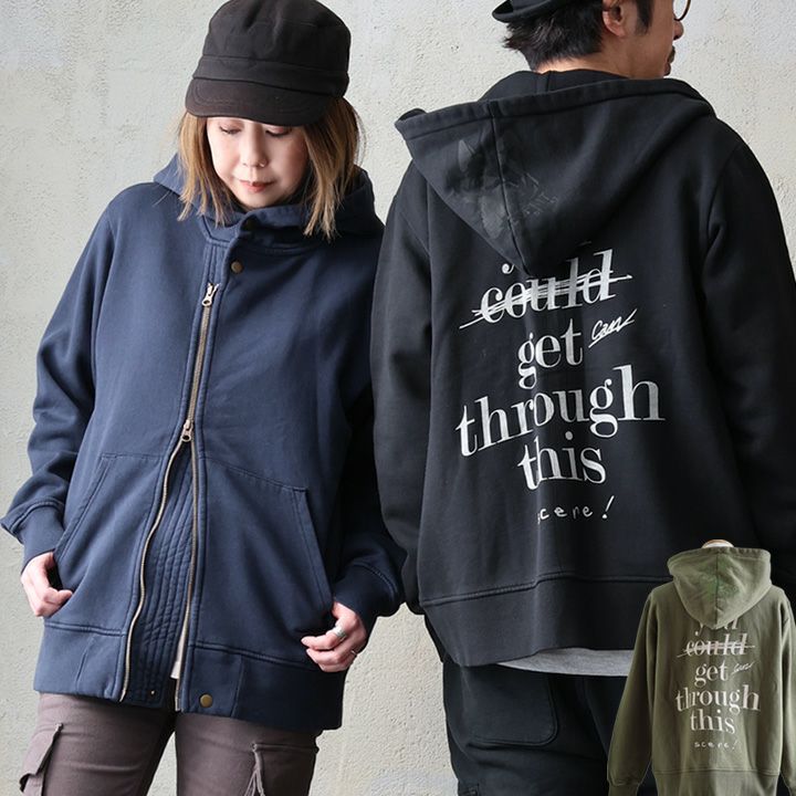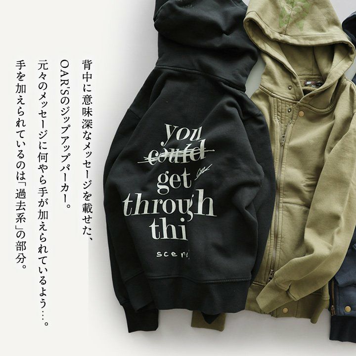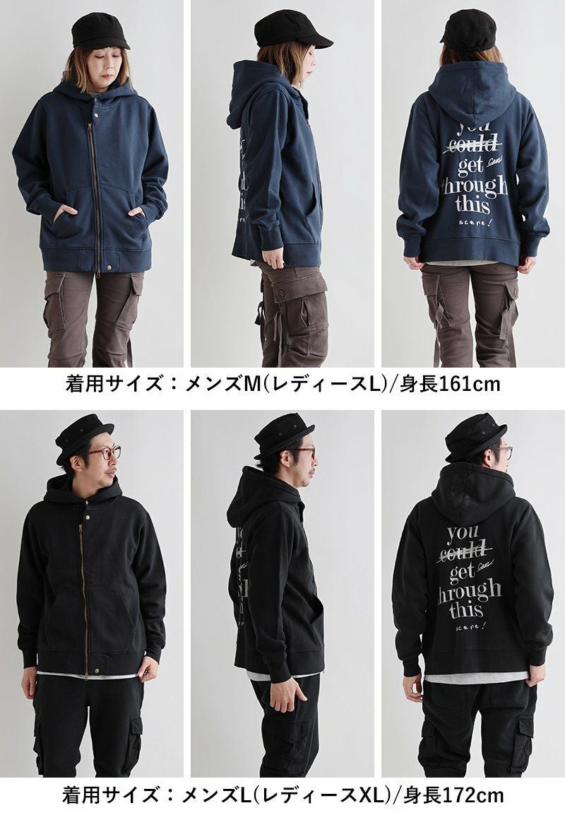 『あなたはこれを乗り越えることができたんだ。今だって出来るよ。』 ライダース パーカー メンズ レディース スウェットバック プリント 暖かい 裏起毛 しっかり 丈夫 USA コットン 綿100% 長袖 かっこいい 活性染め ジップアップ アメカジ バイカー ダブルジップ リブ ネコ プリント スエット パティ OAR’S オールズ