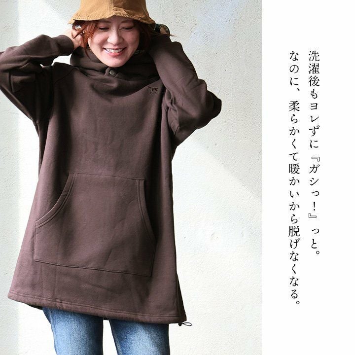ふつうなんだけど、他とはちょっと違う。 パーカー スウェット 長袖 レディース 厚手 綿100 コットン 裏毛 裾カシュクール ワイド 変形 お尻隠れる 伸縮性 軽い 柔らか ゆったり 大きいサイズ 体型カバー カジュアル 春 秋 冬 パティ Souple スプル