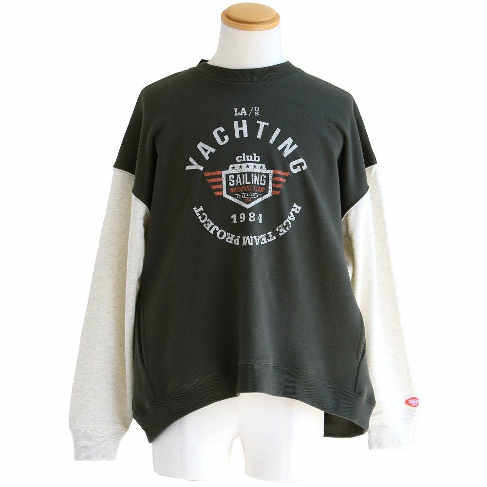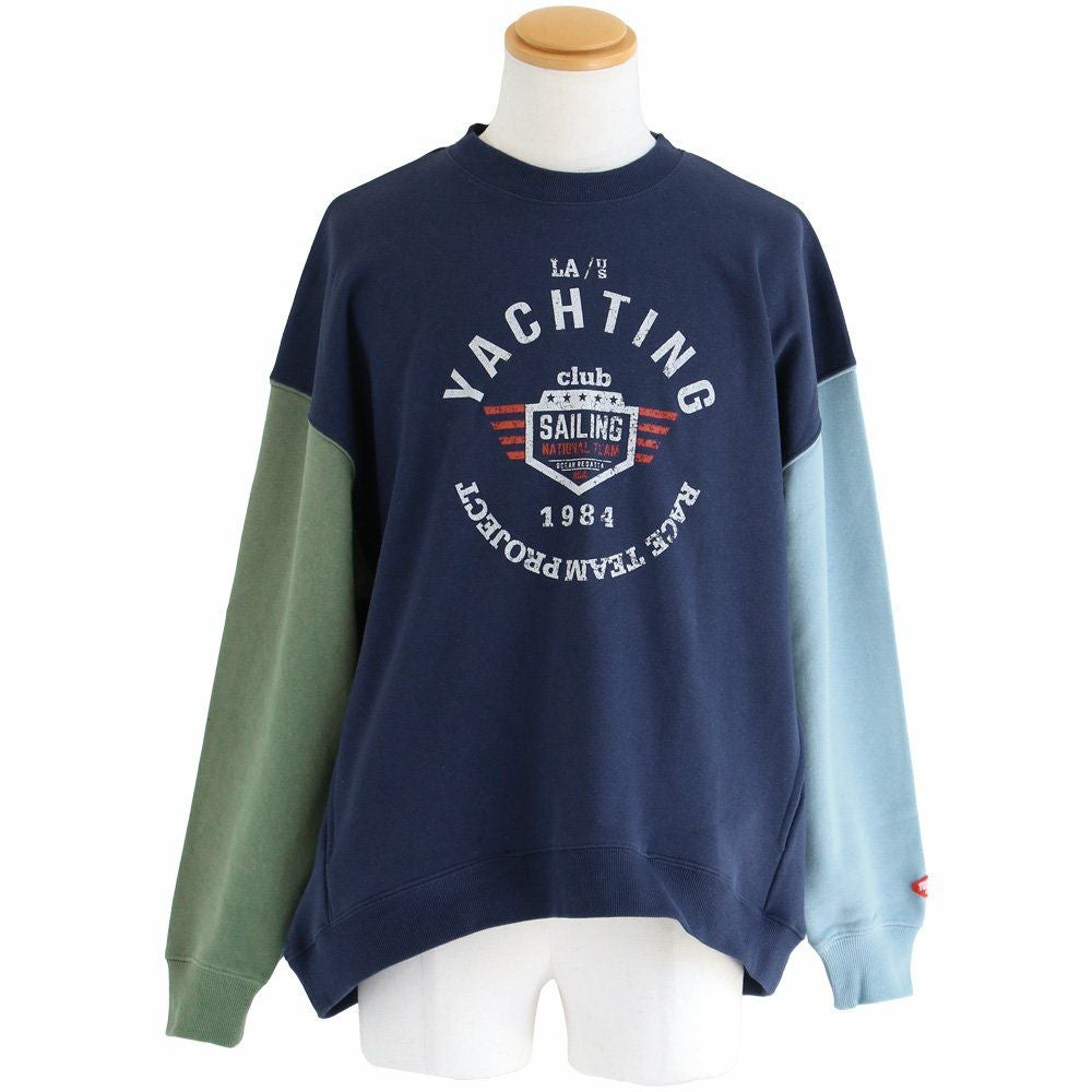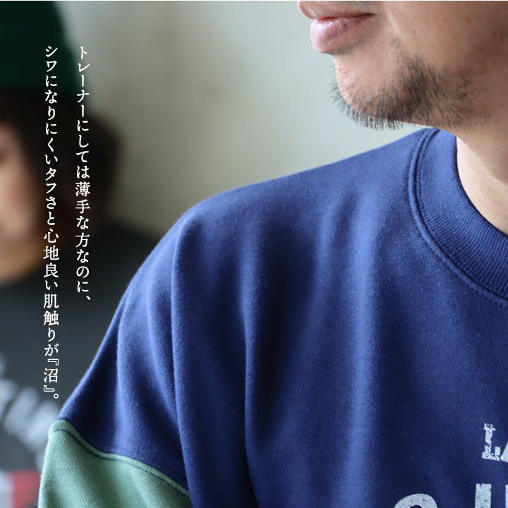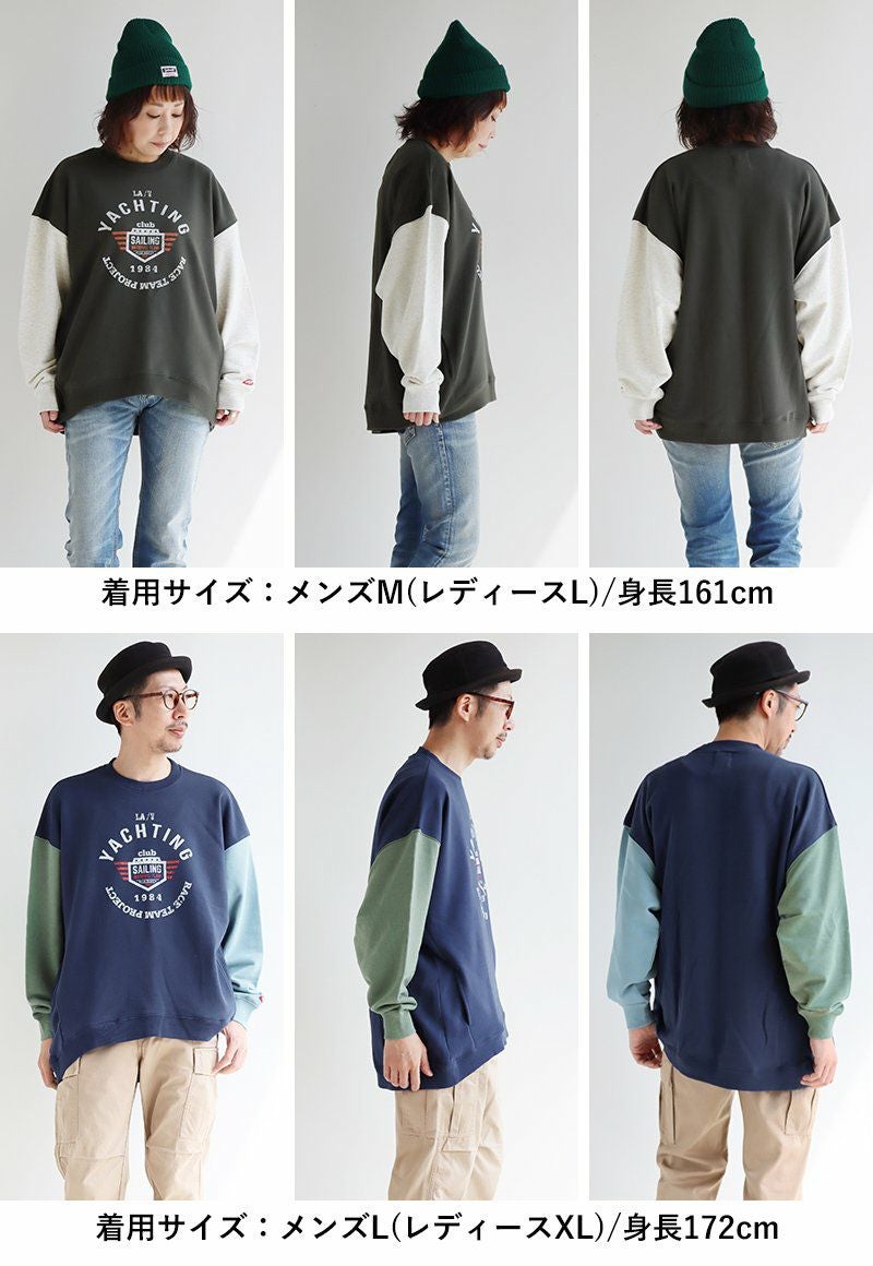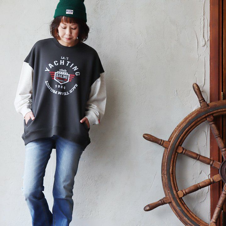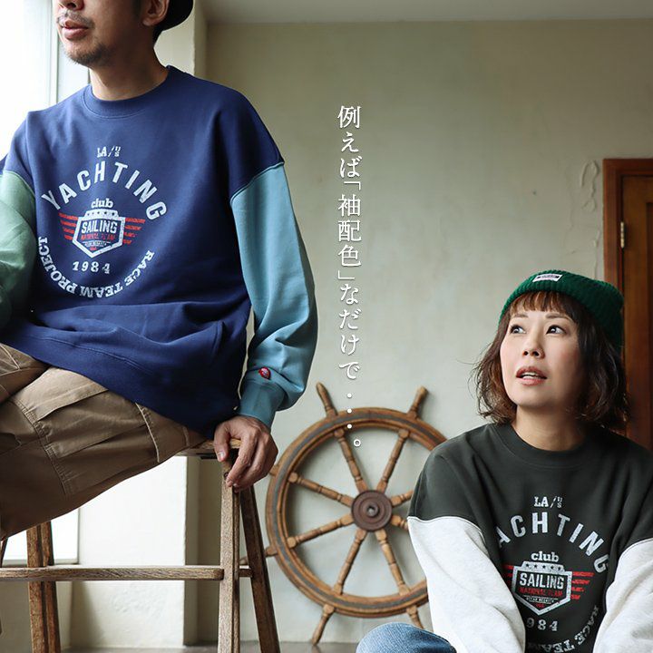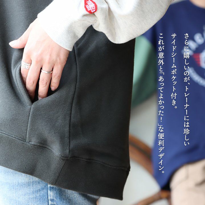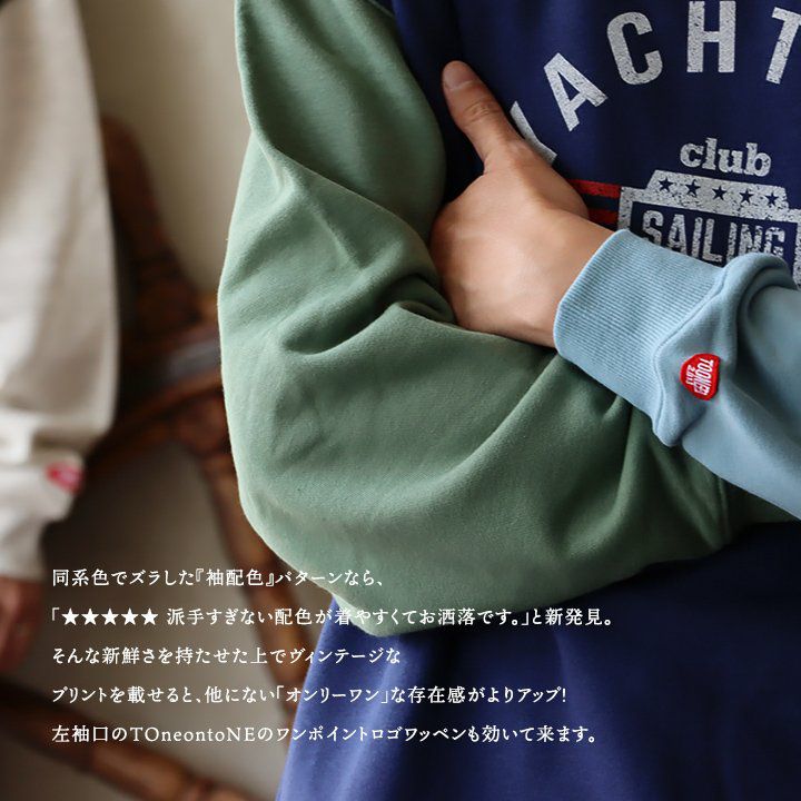 例えば「袖配色」なだけで…。 トレーナー 裏毛 秋 スウェット ワイド すっきり 着痩せ プリント ビッグシルエット 体系 お尻 隠れ カバー メンズ レディース 大きいサイズ 長袖 ポケット 柔らか 薄手 軽い リブ クルーネック 袖切替 クレイジー スエット パティ TOneontoNE トーン