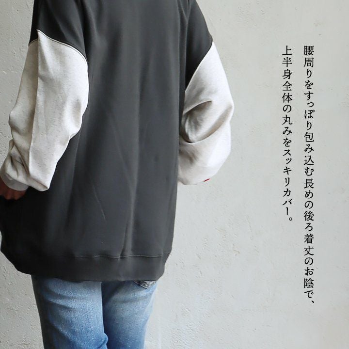 ほどよい厚みとゆるさが心地いい。毎日着たくなるトレーナー! 着痩せ トレーナー ゆったり ワイド レディース 長袖 リブ スウェット クルーネック ミニ裏毛 綿100 コットン 抗菌 柔らか プルオーバー お尻 隠れ カバー スエット すっきり 大き目 体型カバー Souple スプル