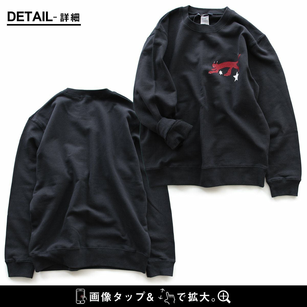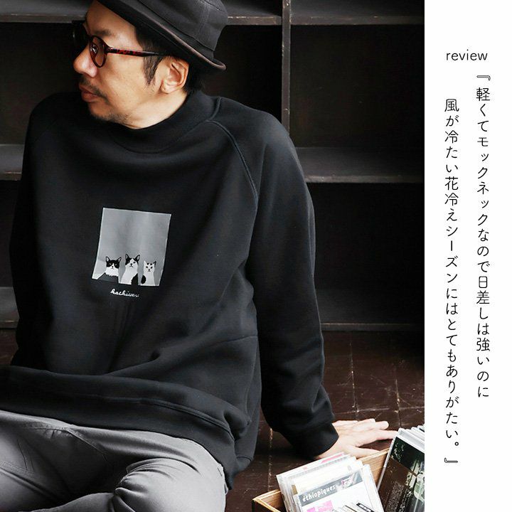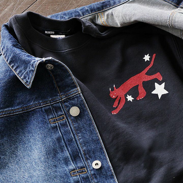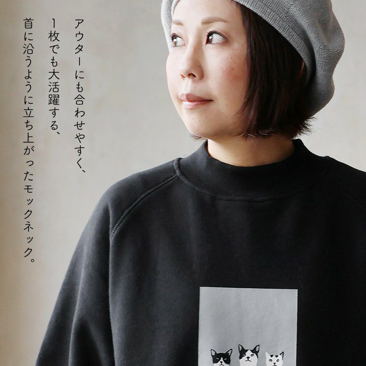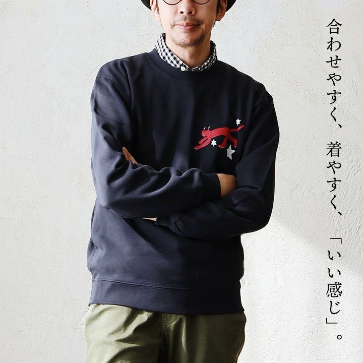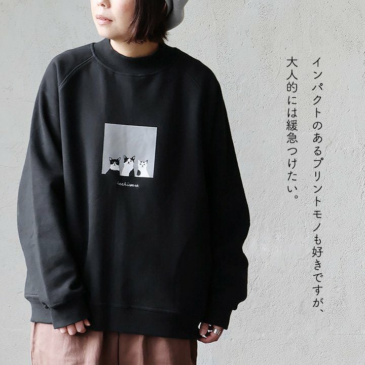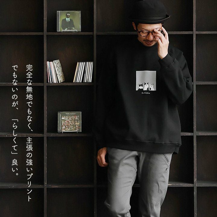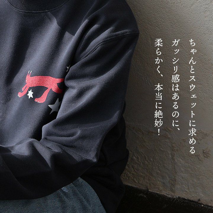 合わせやすく、着やすく、「いい感じ」。 トレーナー スウェット メンズ レディース 長袖 綿100% お尻 隠れ カバー しっかり 丈夫 柔らか 裏パイル リブ クルーネック スエット ねこ ネコ 猫 アニマル 動物 ZOO 大き目 カジュアル パティ BLUETO ブルート