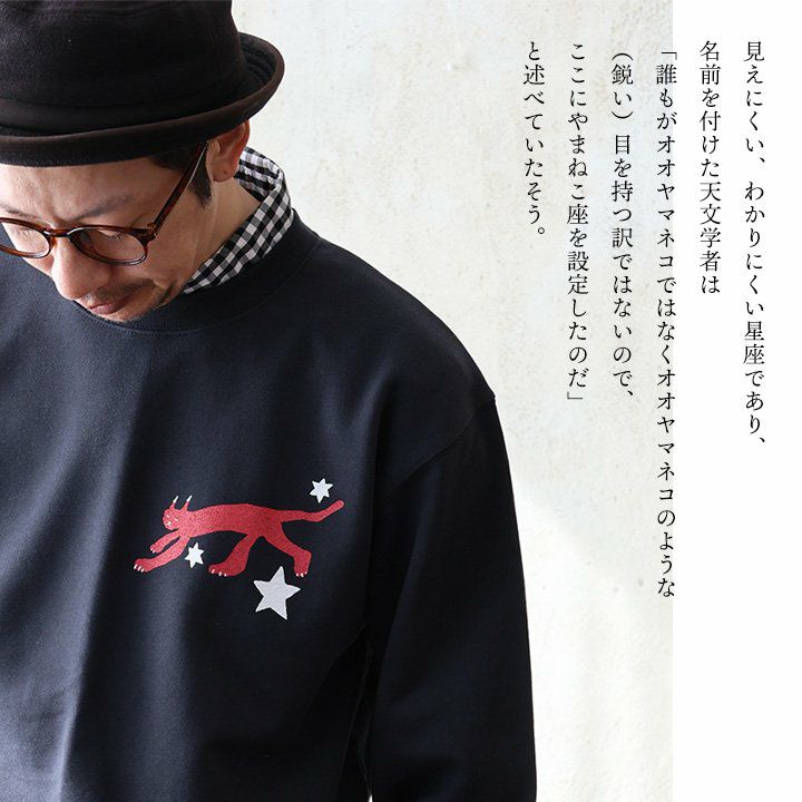 褪せた色合い。タフな生地と縫製。目を惹く遊び。 トレーナー スウェット メンズ レディース 猫 酒 袖 プリント 暖かい 裏起毛 しっかり 丈夫 軽い 柔らかい USA コットン 綿100 活性染め 秋 冬 ラグラン リブ ポケット お尻 隠れ カバー 色合い スエット アメカジ パティ OAR’S オールズ