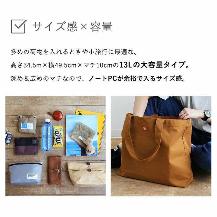自由に。適当に。気兼ねなく使える、タフなバッグ。 トートバッグ トート バッグ メンズ レディース ハンドバッグ エコバッグ カバン 肩掛け キャンバス生地 しっかり 丈夫 大容量 13L 丈夫 軽量 旅行 スポーツ 運動 仕事 通勤 アウトドア キャンプ 買い物バッグ TOneontoNE トーン