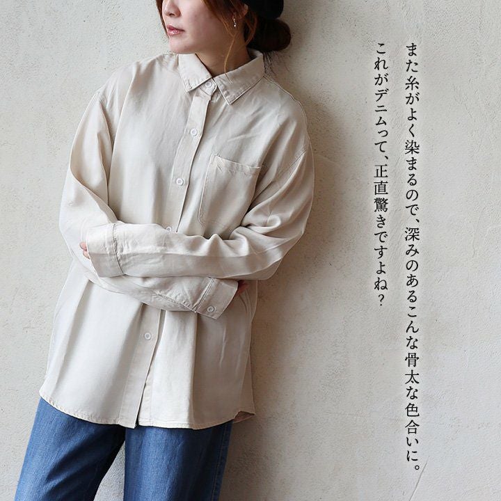 肩の力は抜いて、見た目は「骨太」な、リラックスシャツ。 チュニック シャツ 長袖 レディース シャツチュニック デニム 再生繊維 軽い 柔らかい 落ち感 胸ポケット ミリタリー ラフ カジュアル メンズライク 秋 春 パティ OAR’S オールズ