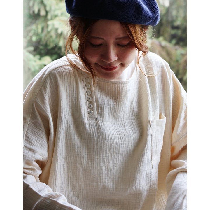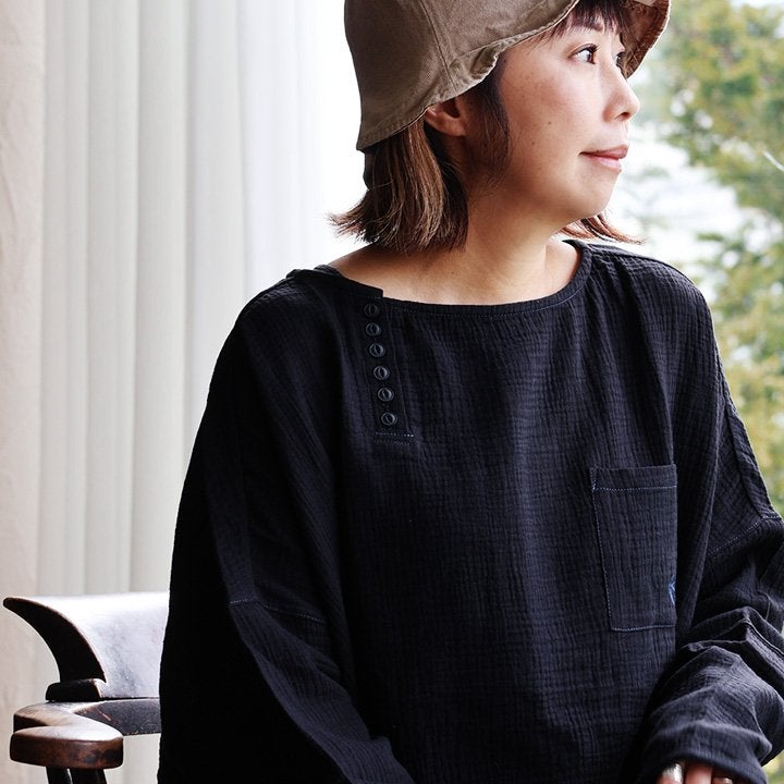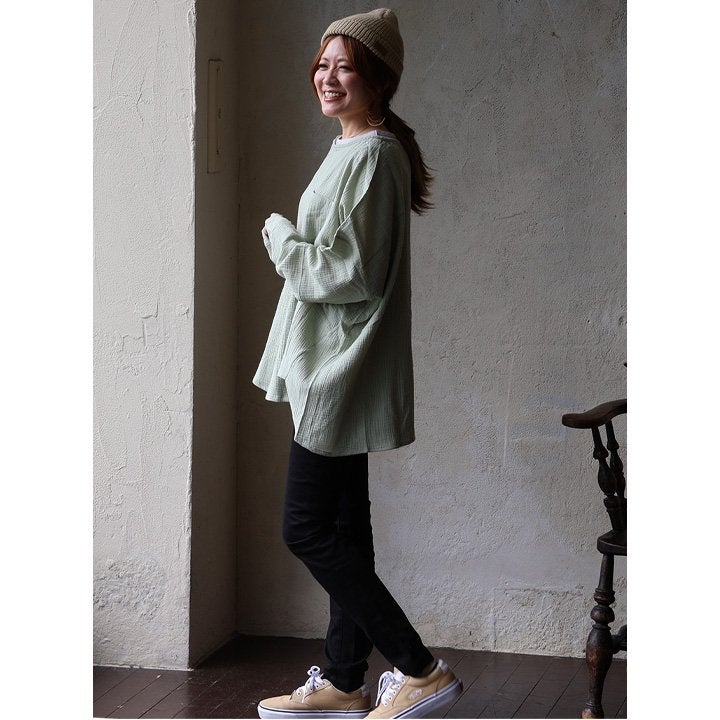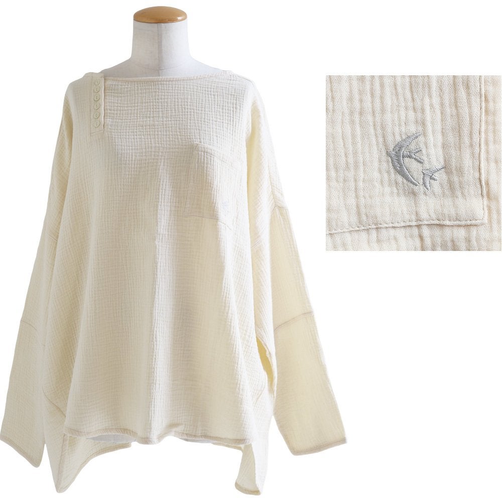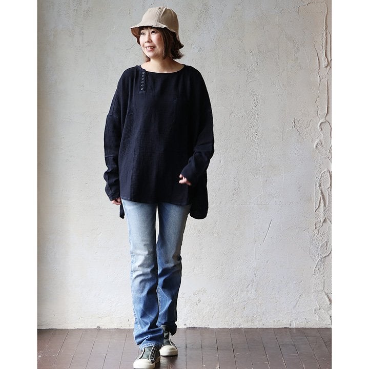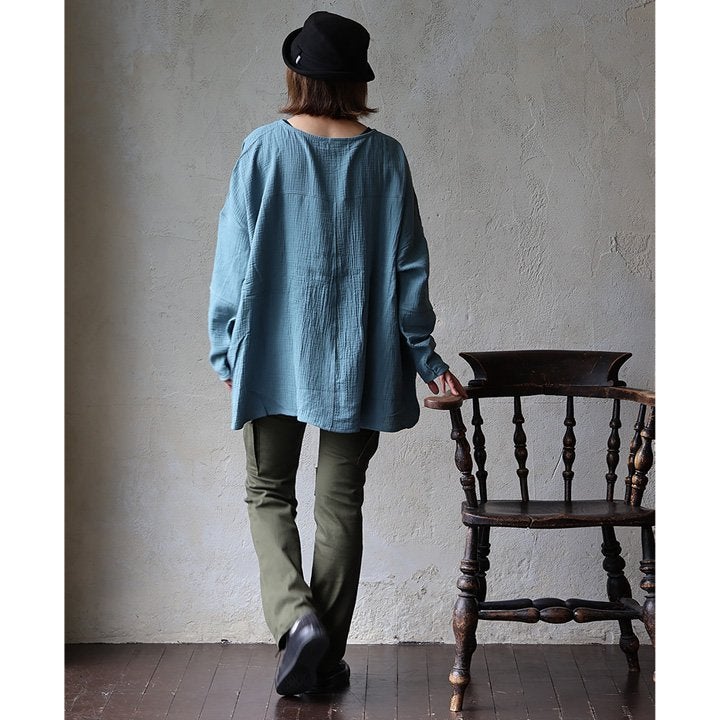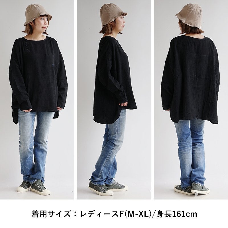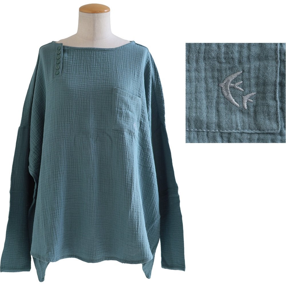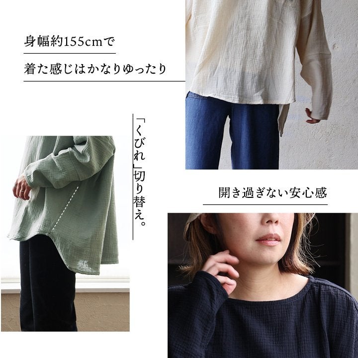中毒性のある楽さと、スッキリ感。 シャツ 長袖 プルオーバー ダブルガーゼ レディース 綿100 コットン 柔らか すっきり 着やせ ワイド ドルマンスリーブ ボートネック 切り替え 大きいサイズ ゆったり お尻 体系 カバー 吸湿 速乾 通気性 軽い 軽量 カジュアル パティ SAIL セイル