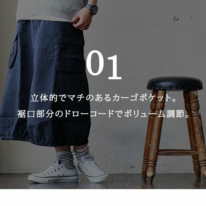薄手なのに、しっかりボリューム。しかも、崩れない。 (セイル) SAIL ガウチョパンツ ワイド ロング丈 綿100% 薄手 タイプライタークロス ウエストゴム 紐