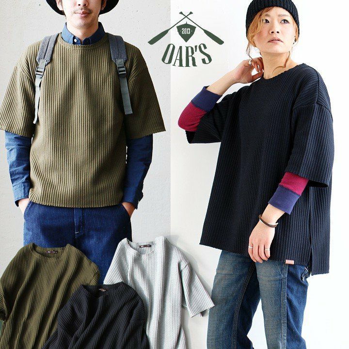 これ位、肉厚じゃないと物足りないですよね? (オールズ) OAR'S カットソー 半袖 五分袖 ワイドシルエット カットオフ 【TCビッグワッフル】