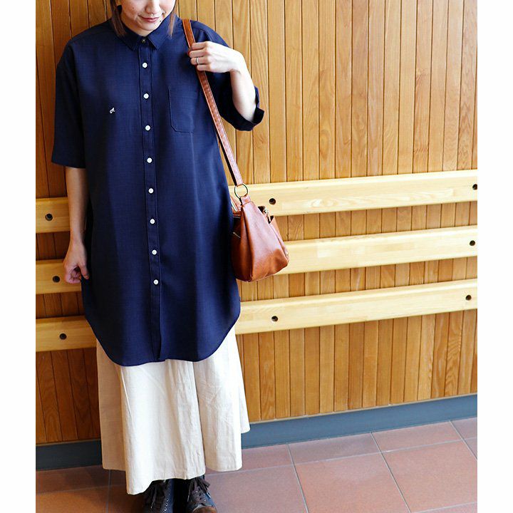 忙しいときにこそ嬉しい、アイロン要らずの『涼感ストレッチ』シャツワンピ。 (アリステア) ALISTAIR シャツ ワンピース シャツワンピ 五分袖 「綿 麻 ストレッチ入り」 厚手