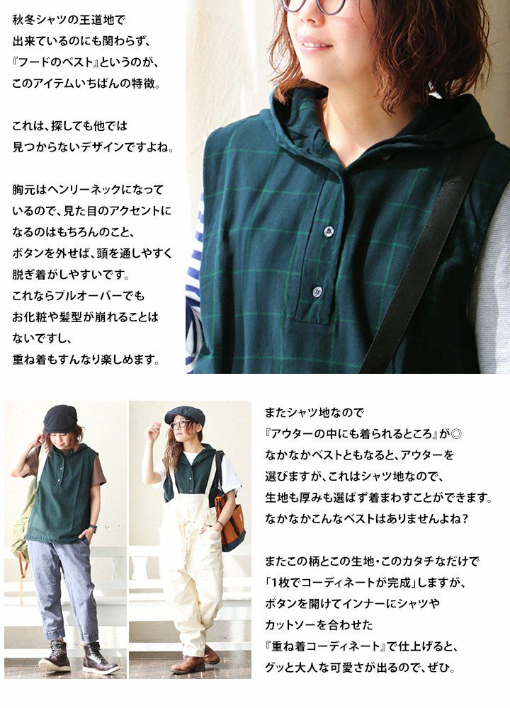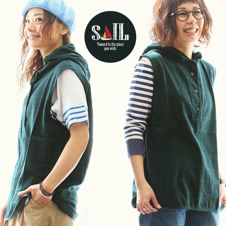 えっ?シャツなのに、ベスト!? (セイル) SAIL ベスト プルオーバー フード シャツベスト 「ビエラ ウィンドウペン チェック」 ヘンリー