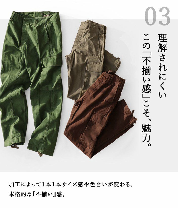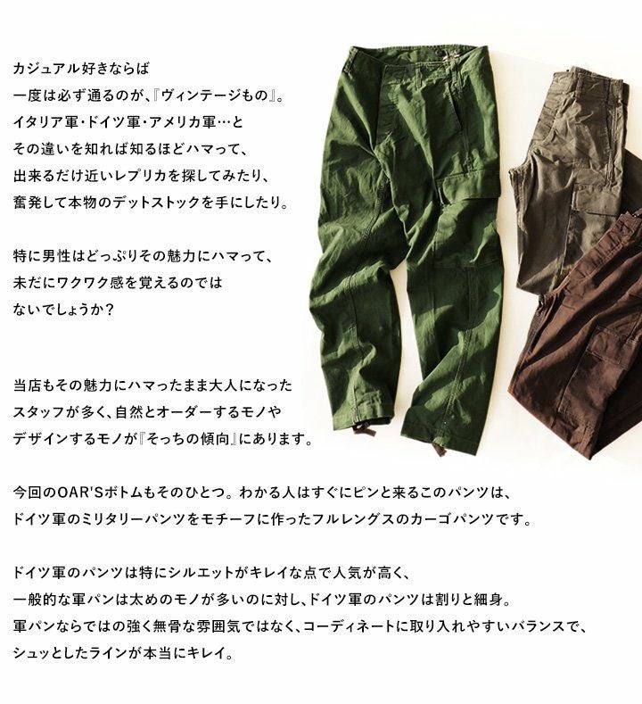 理解されにくいこの「不揃い感」こそ、魅力。 (オールズ) OAR'S カーゴパンツ テーパード ドイツ軍 モルスキン モールスキン デットストック