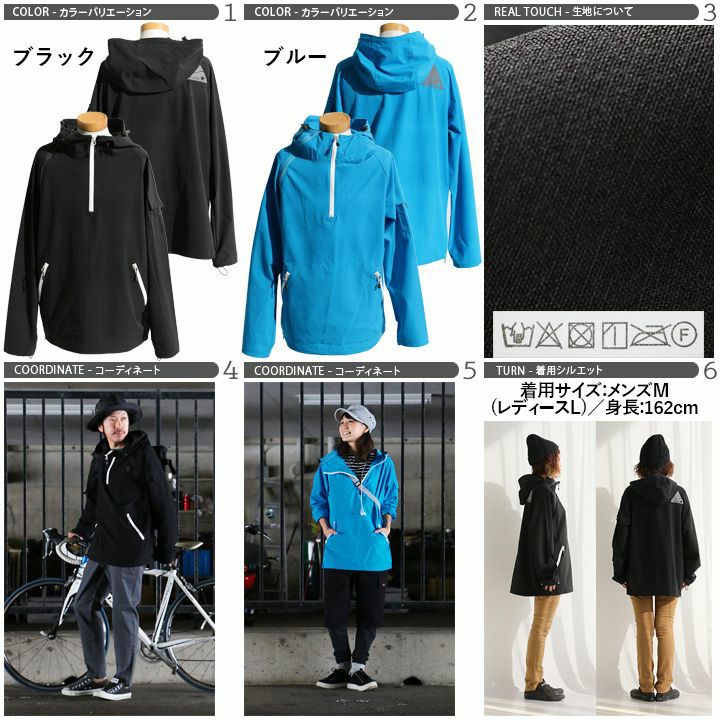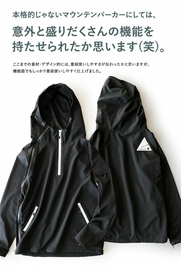 チャリに電車に、通勤・通学には「この」マンパー! (アンクラウド) &CLOUd マウンテンパーカー サイド&ハーフジップ 反射板 プリント 撥水 ストレッチ