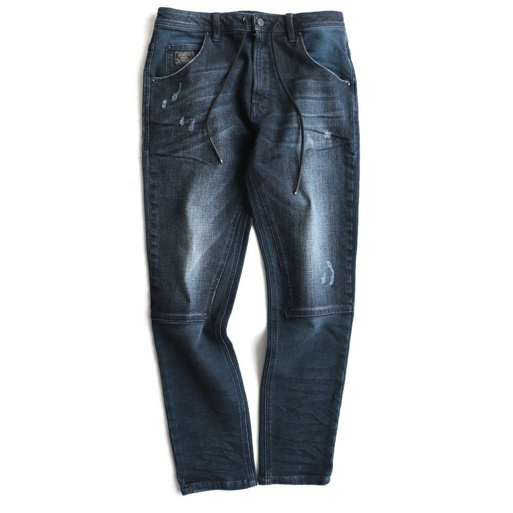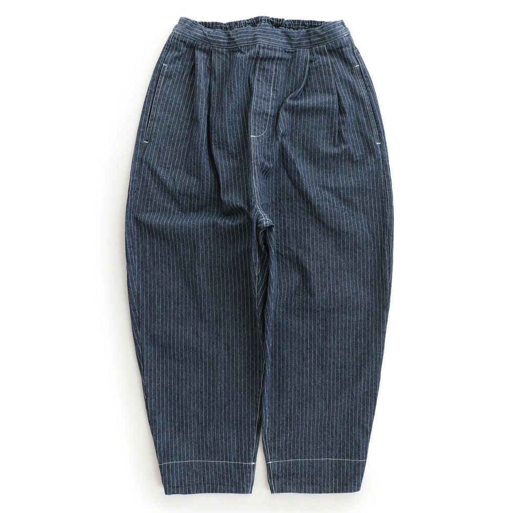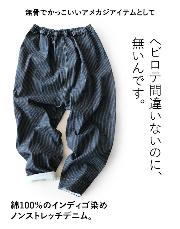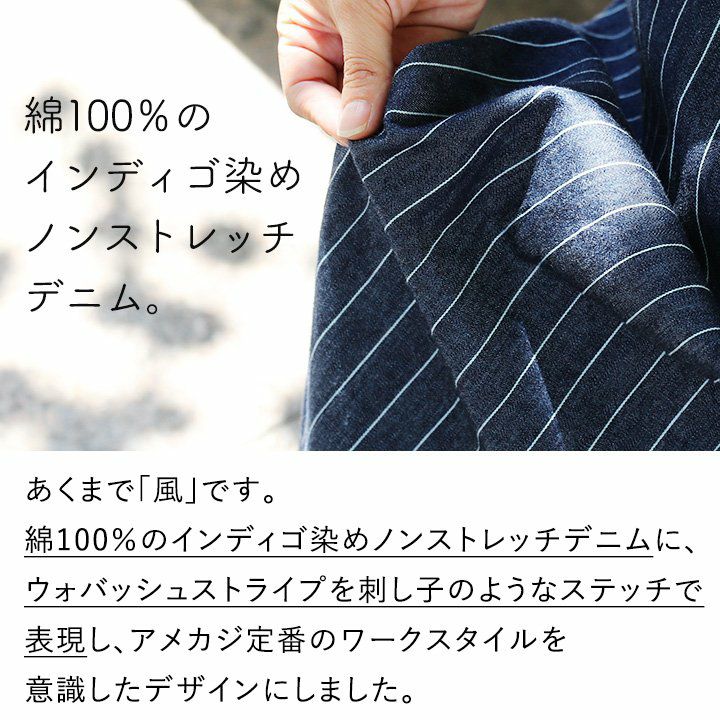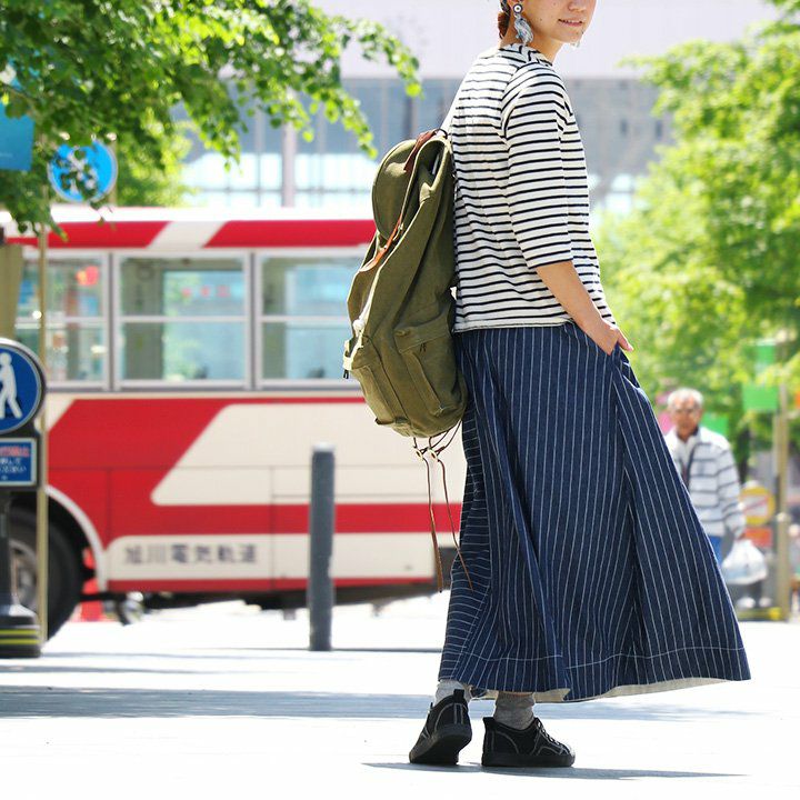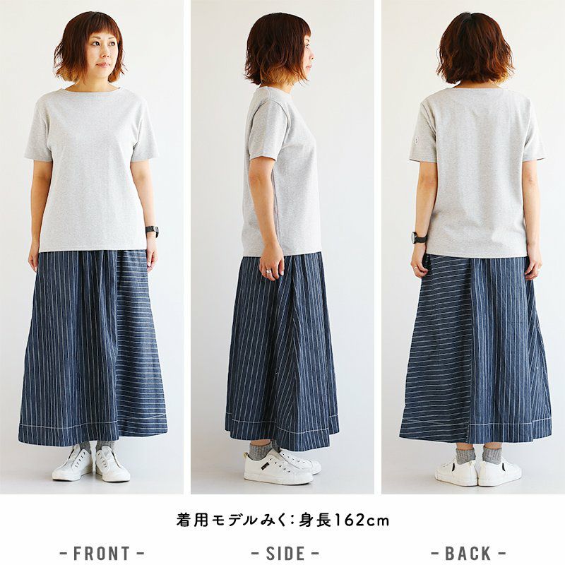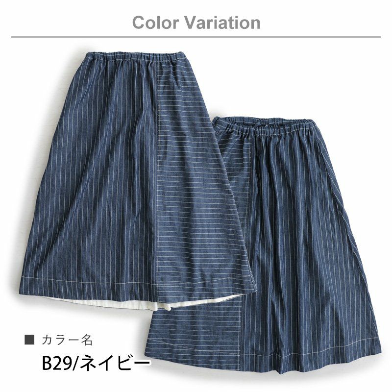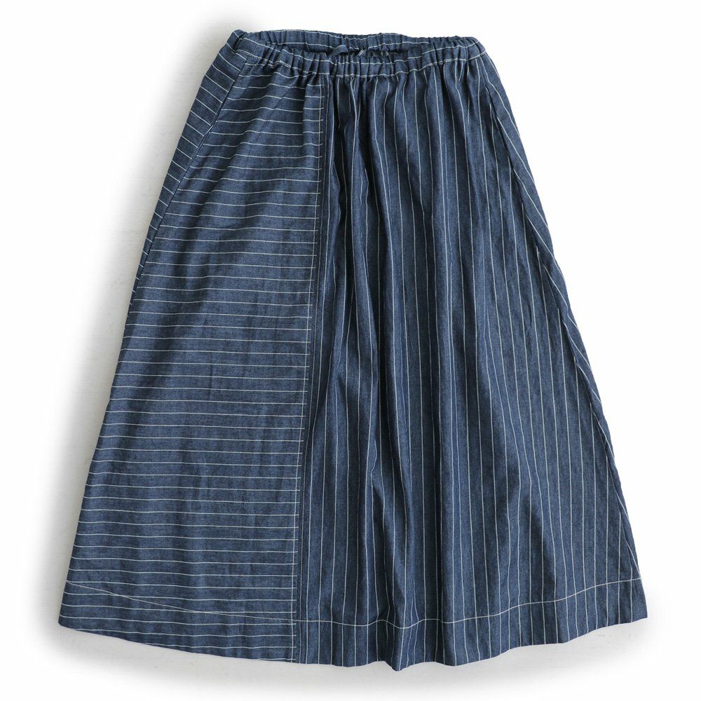 ヘビロテ間違いなしなのに、無いから作りました。 (ブルート) BLUETO スカート 夏 ロング丈 フレアシルエット ウエスト ゴム 裾異素材切り替え 「ウォバッシュ風 インディゴ ストライプ」
