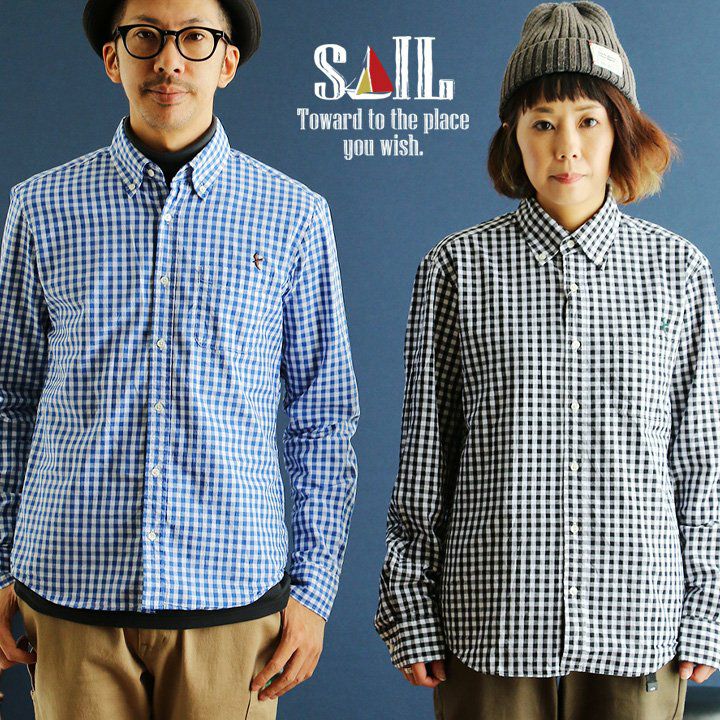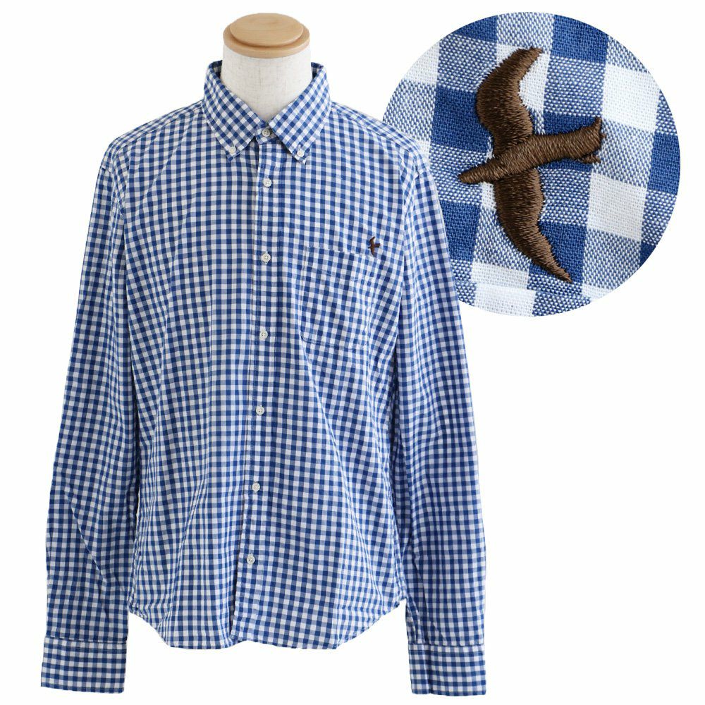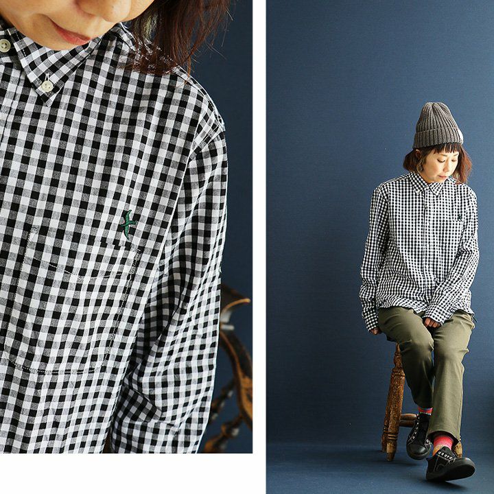 着るだけで「こなし上手」。アイロン要らずで「楽々」。 シャツ ボタンダウン 長袖 日本製 メンズ レディース アイロン要らず ギンガムチェックシャツ ワンポイント刺繍 つばめ 綿100% 長袖シャツ トップス 着痩せ オフィス 仕事 おしゃれ 大人カジュアル パティ SAIL セイル