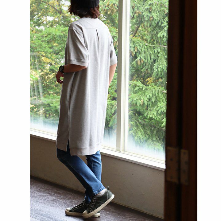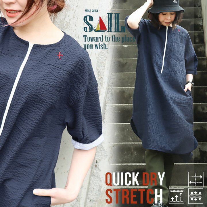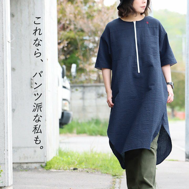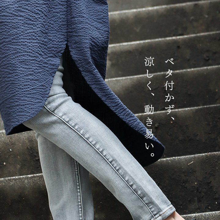 「サラっ」「スルっ」「ストン」で、「着膨れない」ビッグT。 【メール便50】 着痩せ tシャツ レディース 夏 涼しい 伸びる シアサッカー 半袖 ワイド ロング丈 ドライ すっきり 軽い 速乾 冷感 洗える ポケット 二の腕 お尻 体系 カバー プルオーバー ユニセックス 大人 カジュアル パティ Mr.Lumberjack ミスターランバージャック