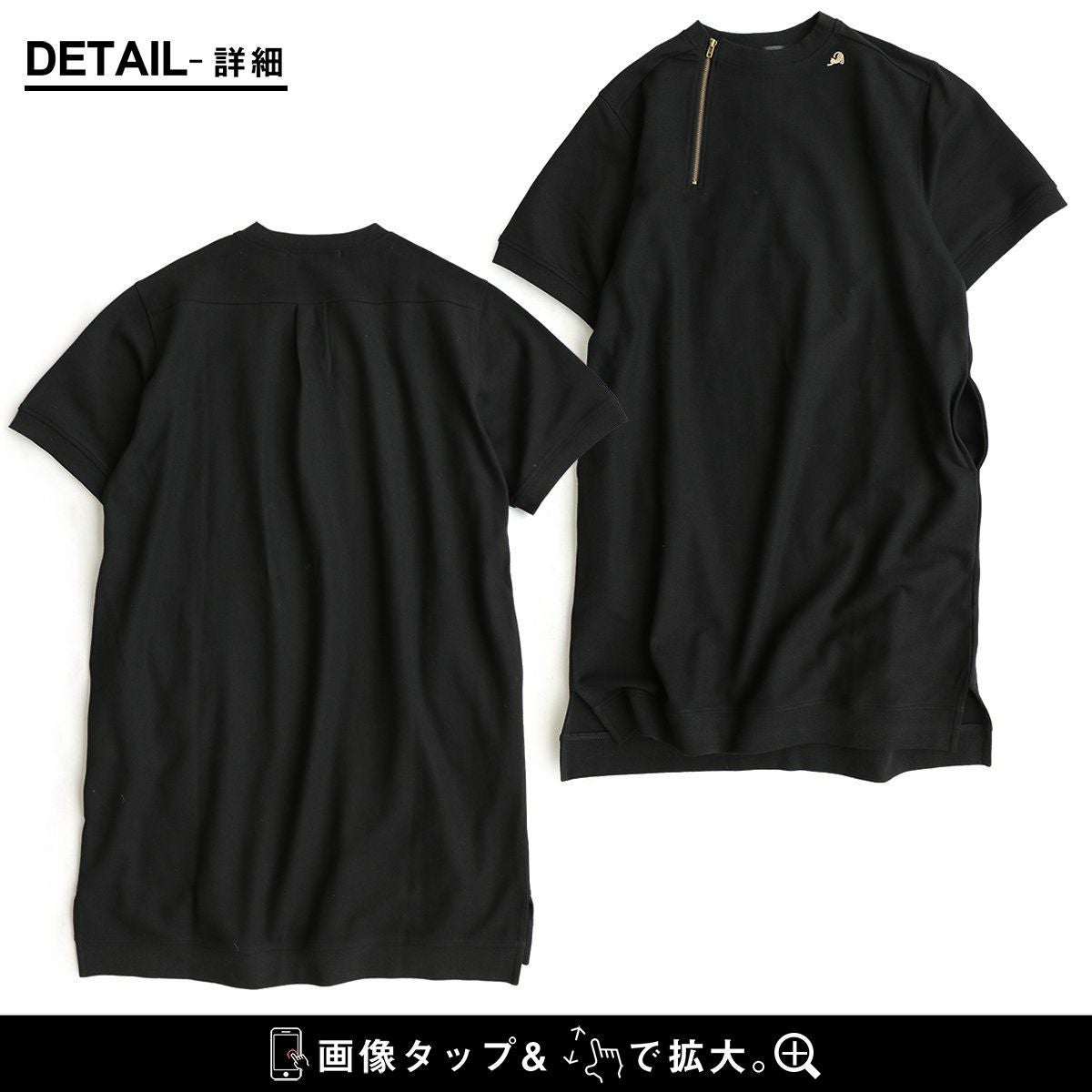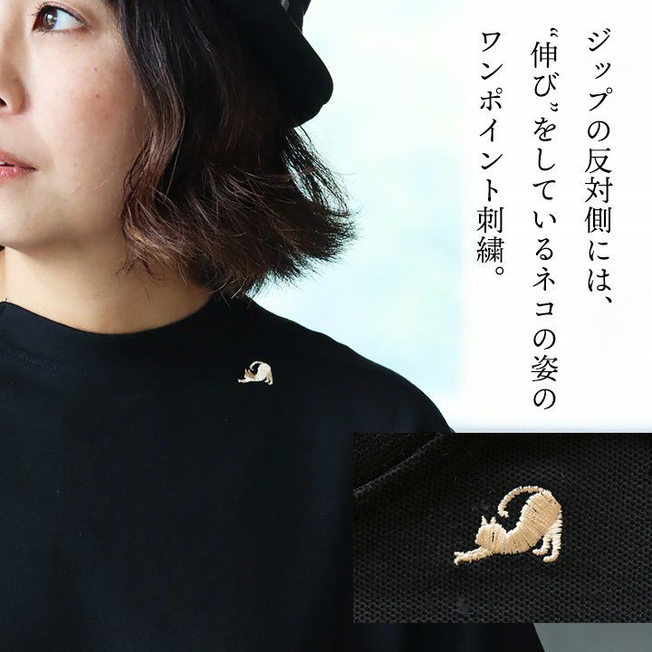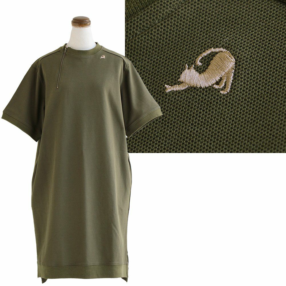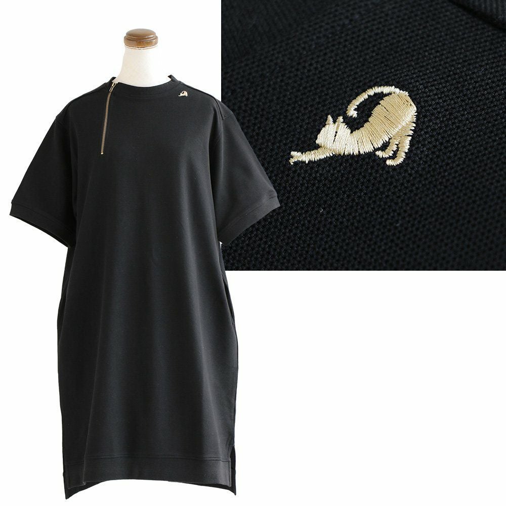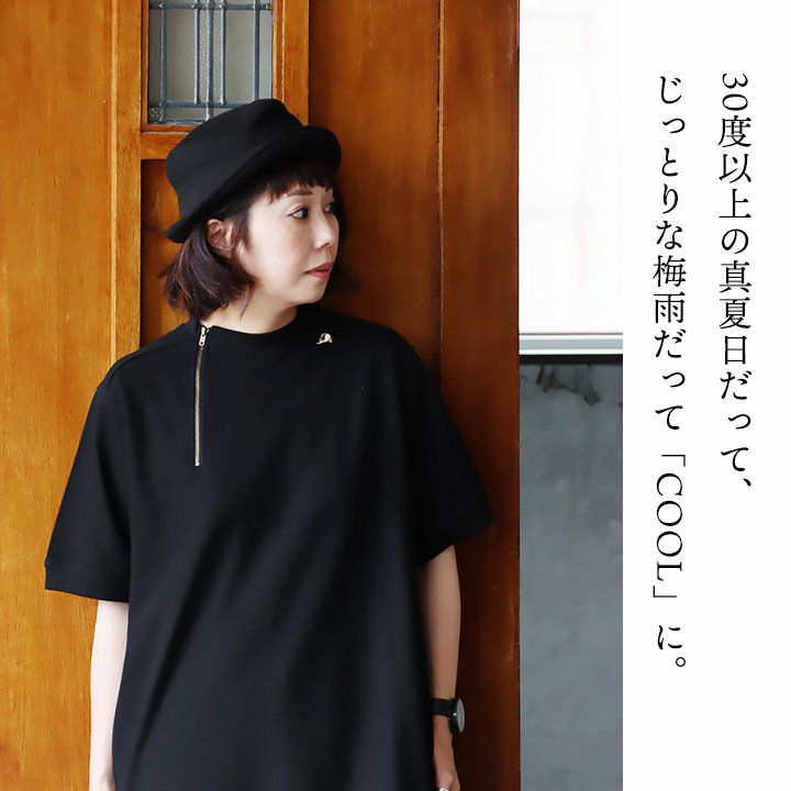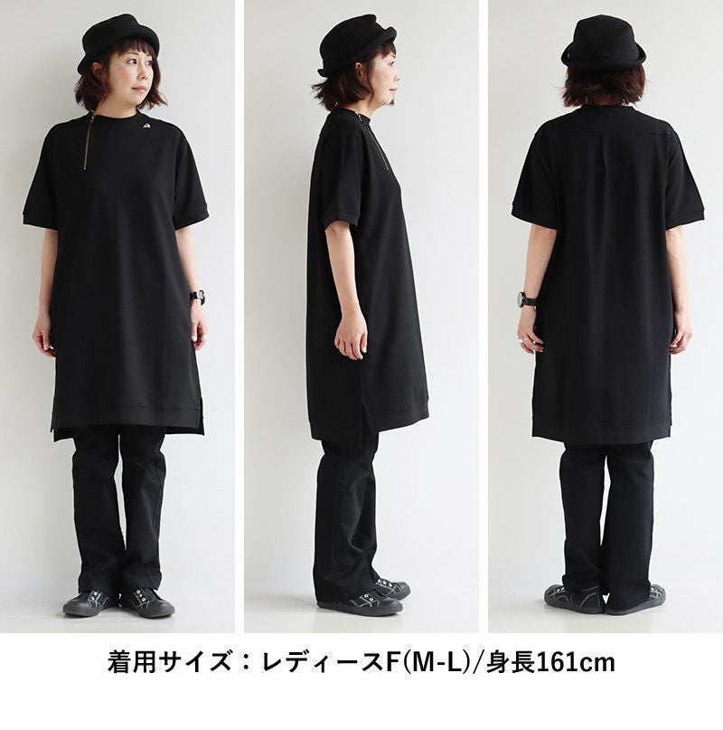 汗をかいてもベタつかず、サラっと「COOL」に。 ワンピ ワンピース 半袖 クルーネック 斜め ジップ 涼しい 夏 鹿の子 軽量 軽い 通気性 ドライ 速乾 かっこいい 紫外線対策 UV対策 ねこ 刺繍 リブ すっきり 着痩せ レディース ALISTAIR アリステア