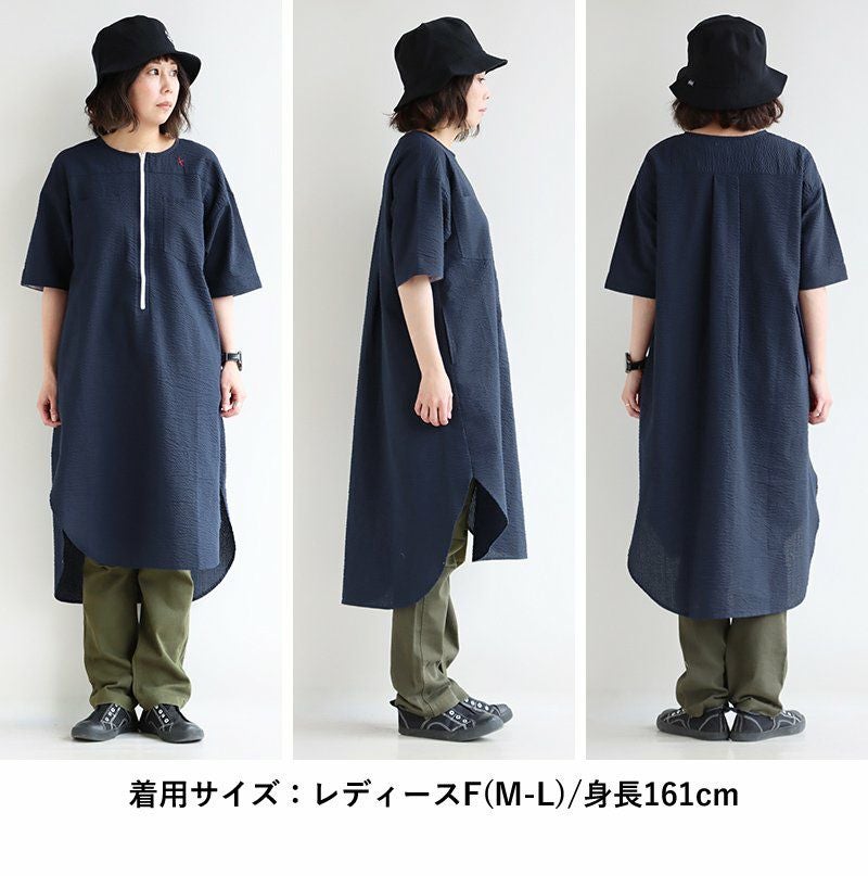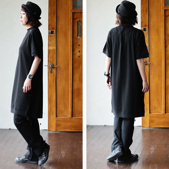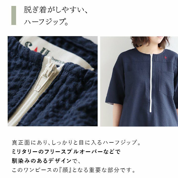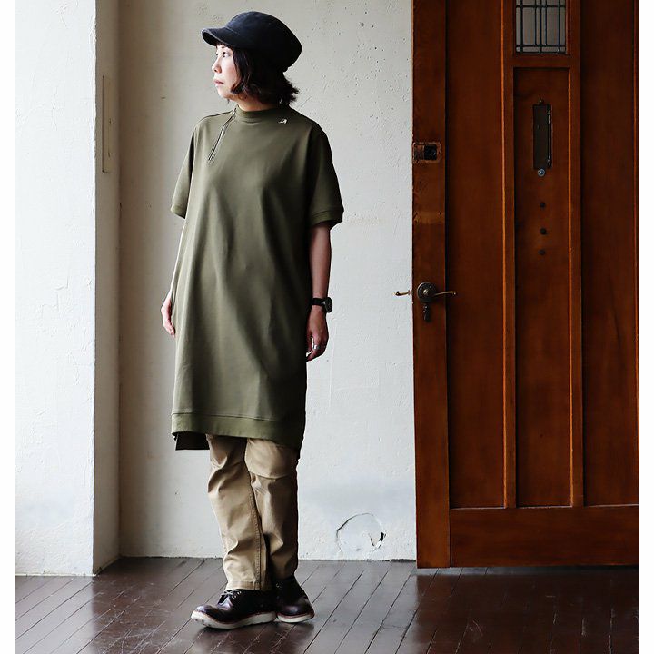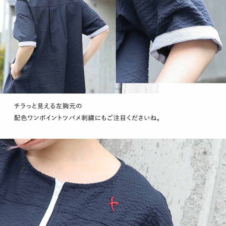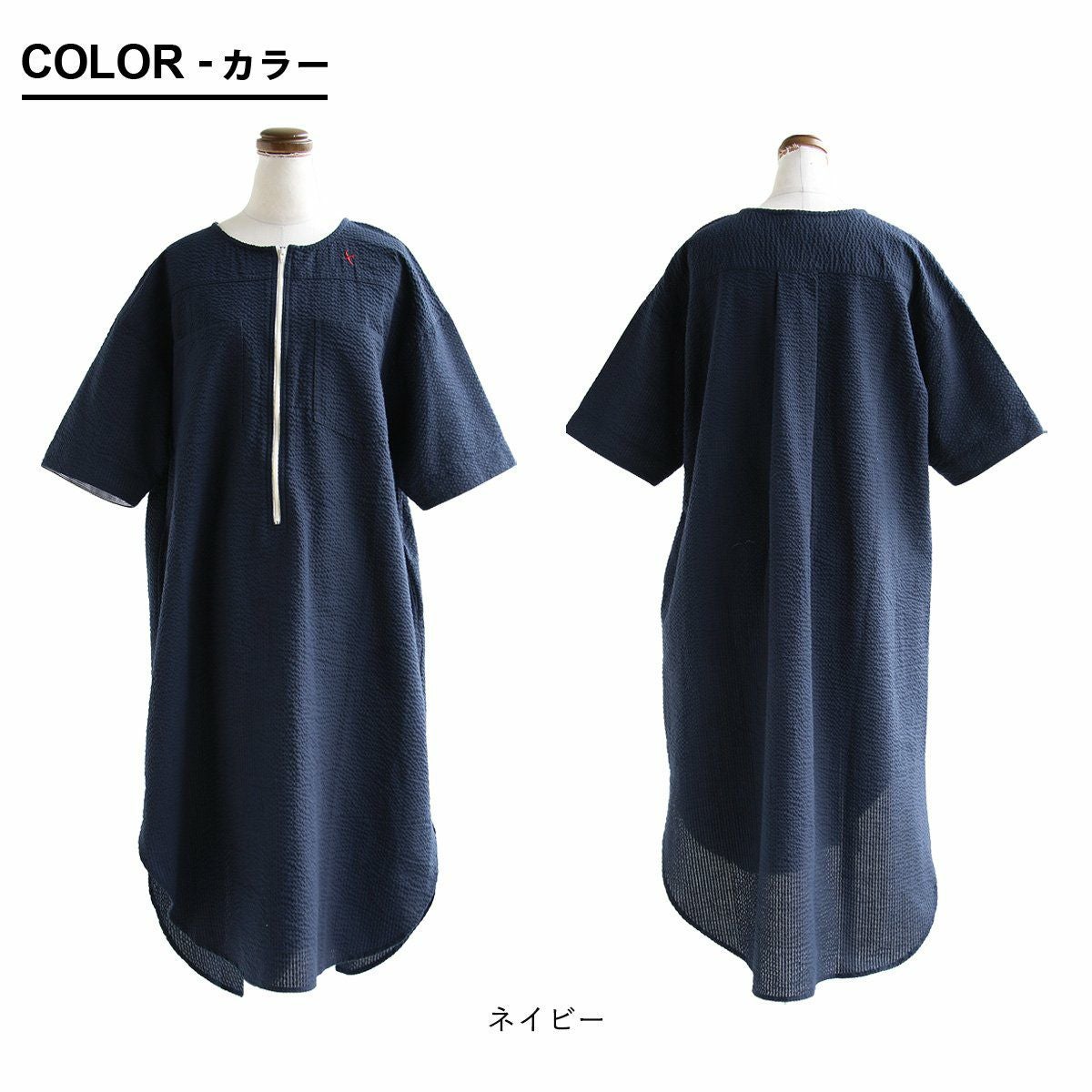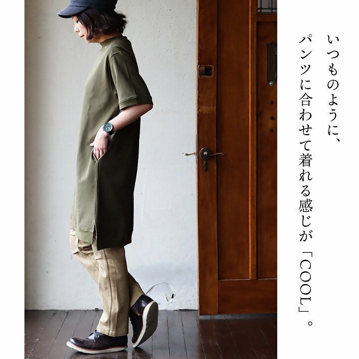 汗をかいてもベタつかず、サラっと「COOL」に。 ワンピ ワンピース 半袖 クルーネック 斜め ジップ 涼しい 夏 鹿の子 軽量 軽い 通気性 ドライ 速乾 かっこいい 紫外線対策 UV対策 ねこ 刺繍 リブ すっきり 着痩せ レディース ALISTAIR アリステア