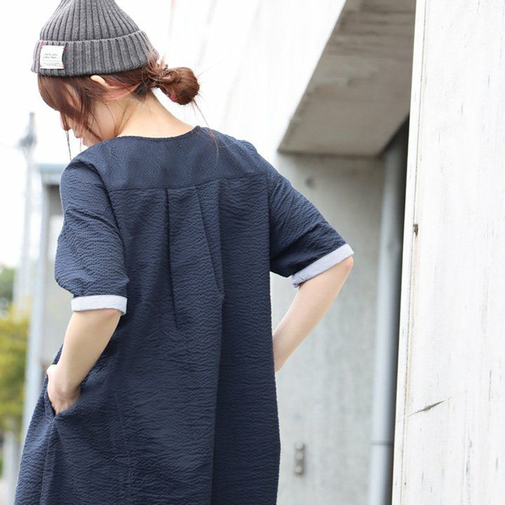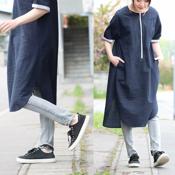 「あれ?痩せた?」っていうくらい、スッキリ涼しい。 【メール便50】 着痩せ ワンピース 五分袖 レディース 夏 涼しい ストレッチ シアサッカー 冷感 uvカット すっきり ワイド 細見え ひざ下丈 ロング丈 サイドスリット ポケット ワンピ 大人 カジュアル パティ Souple スプル